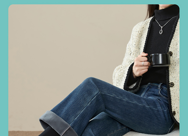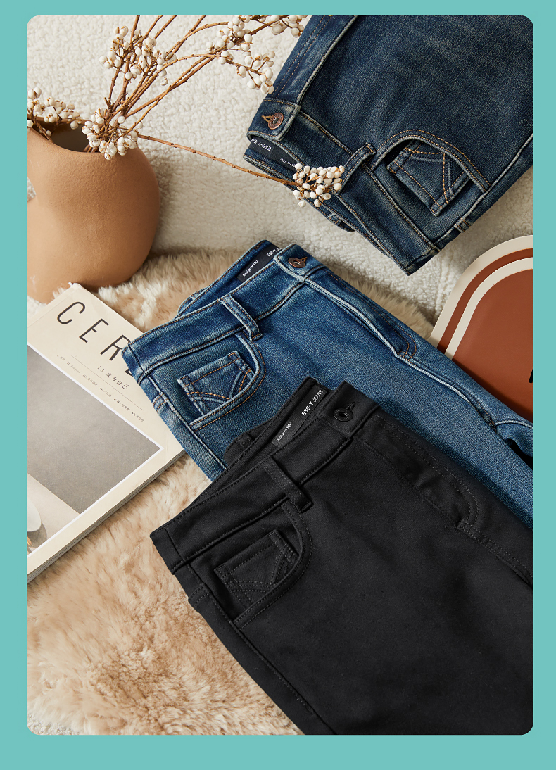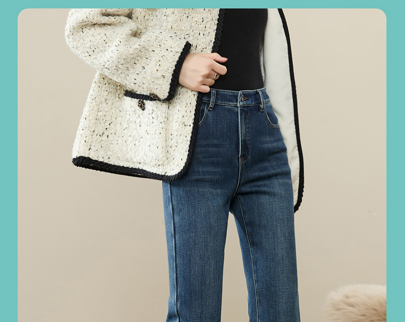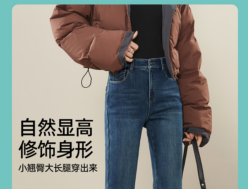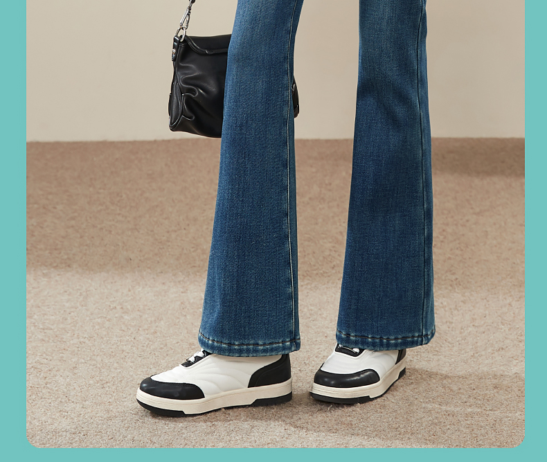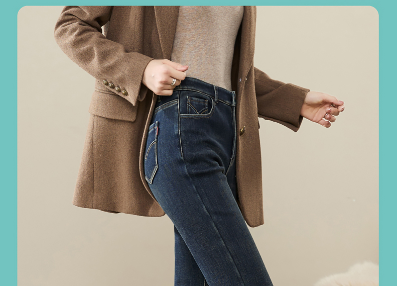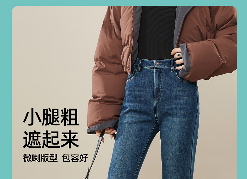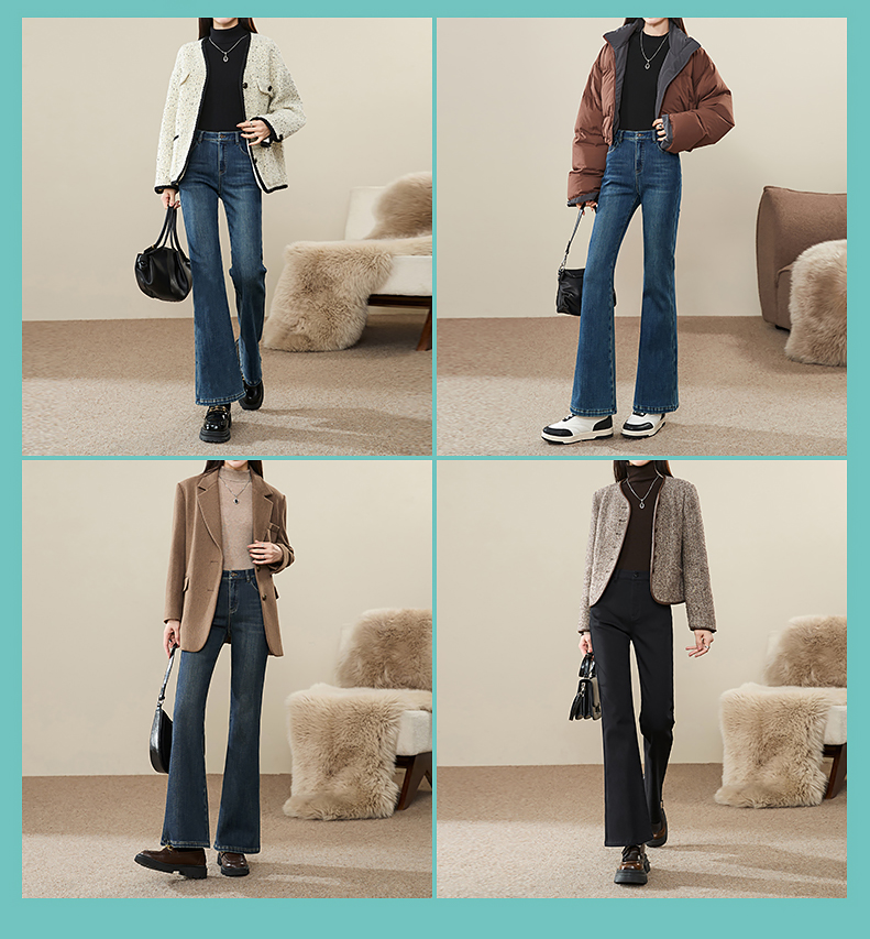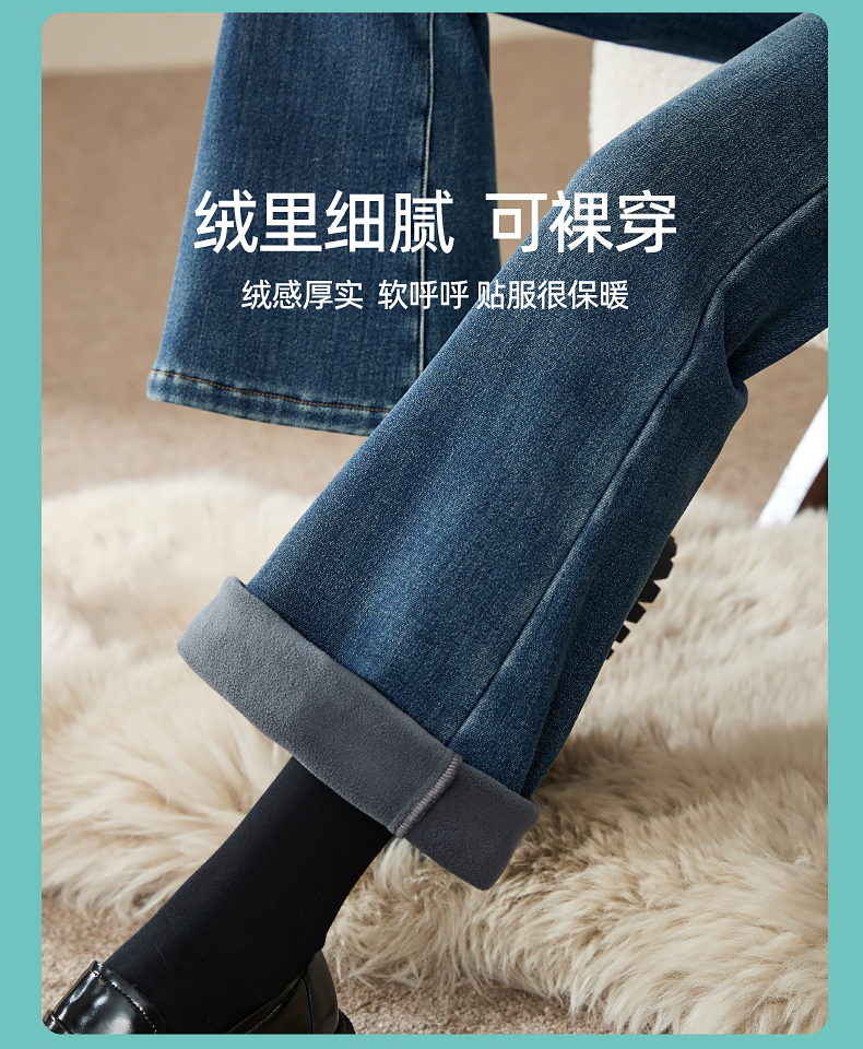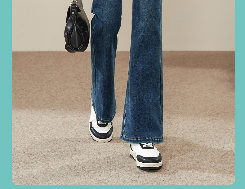 逸阳2024冬季新款加厚奥利绒绒喇叭牛仔裤修身弹力显瘦显高1702