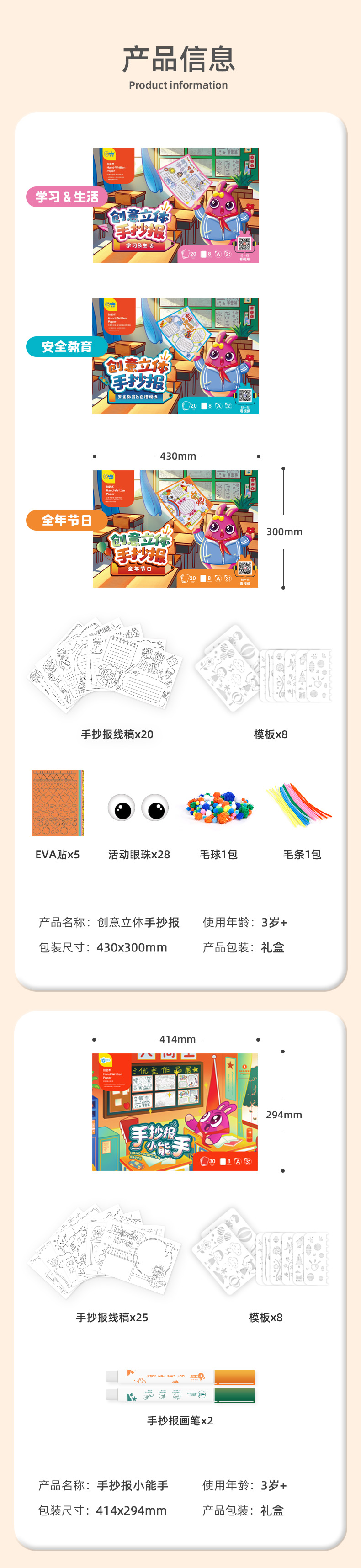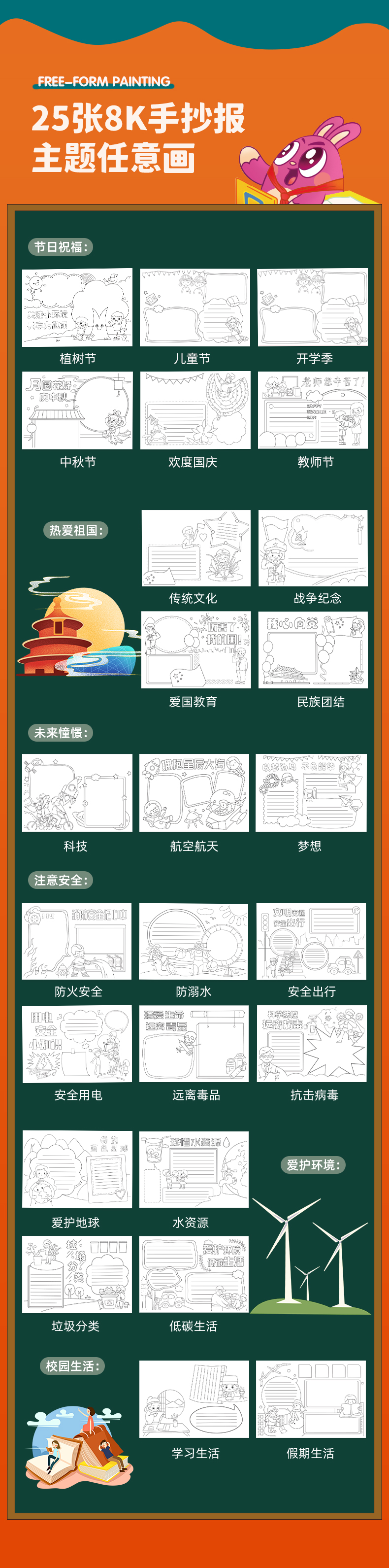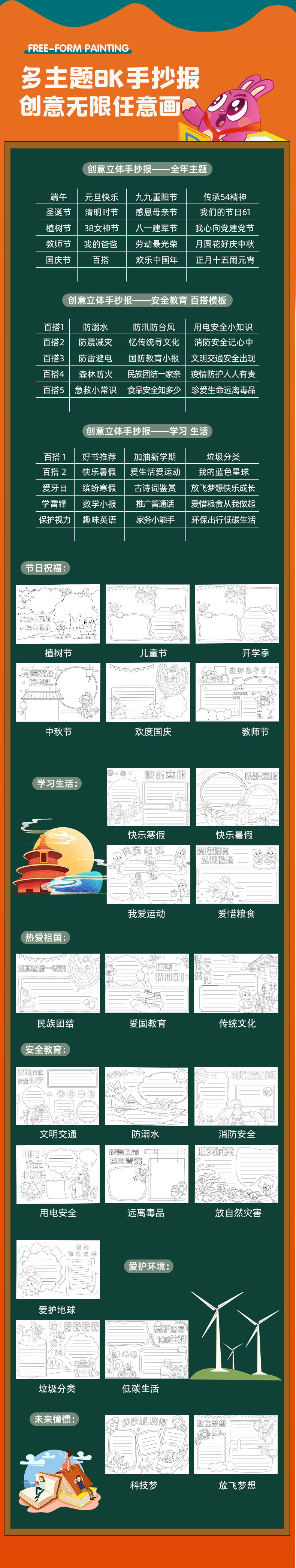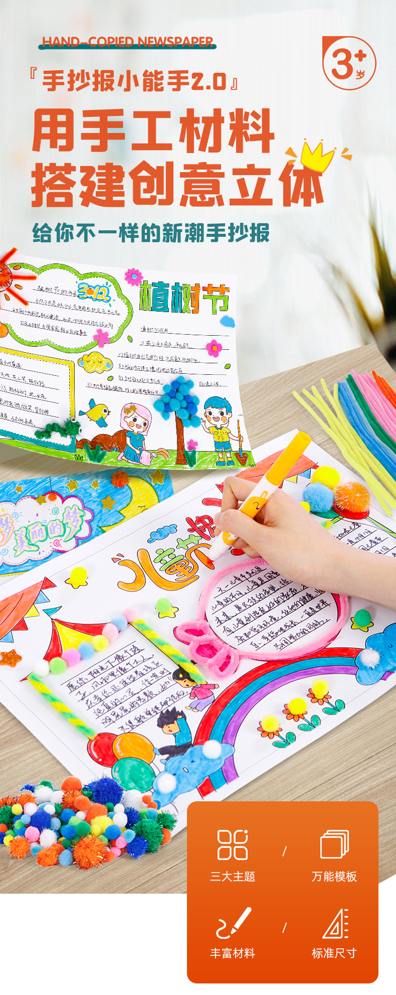 【朱丹推荐 全年主题 自由搭配模板】GWIZ顽学校园立体手抄报模板小学素材儿童diy手工自由搭配模板