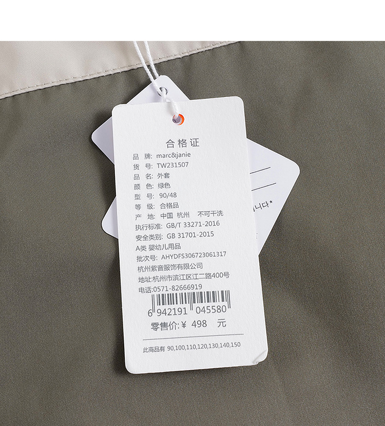 【三防】马克珍妮秋装新款 男童户外风撞色夹克外套231507