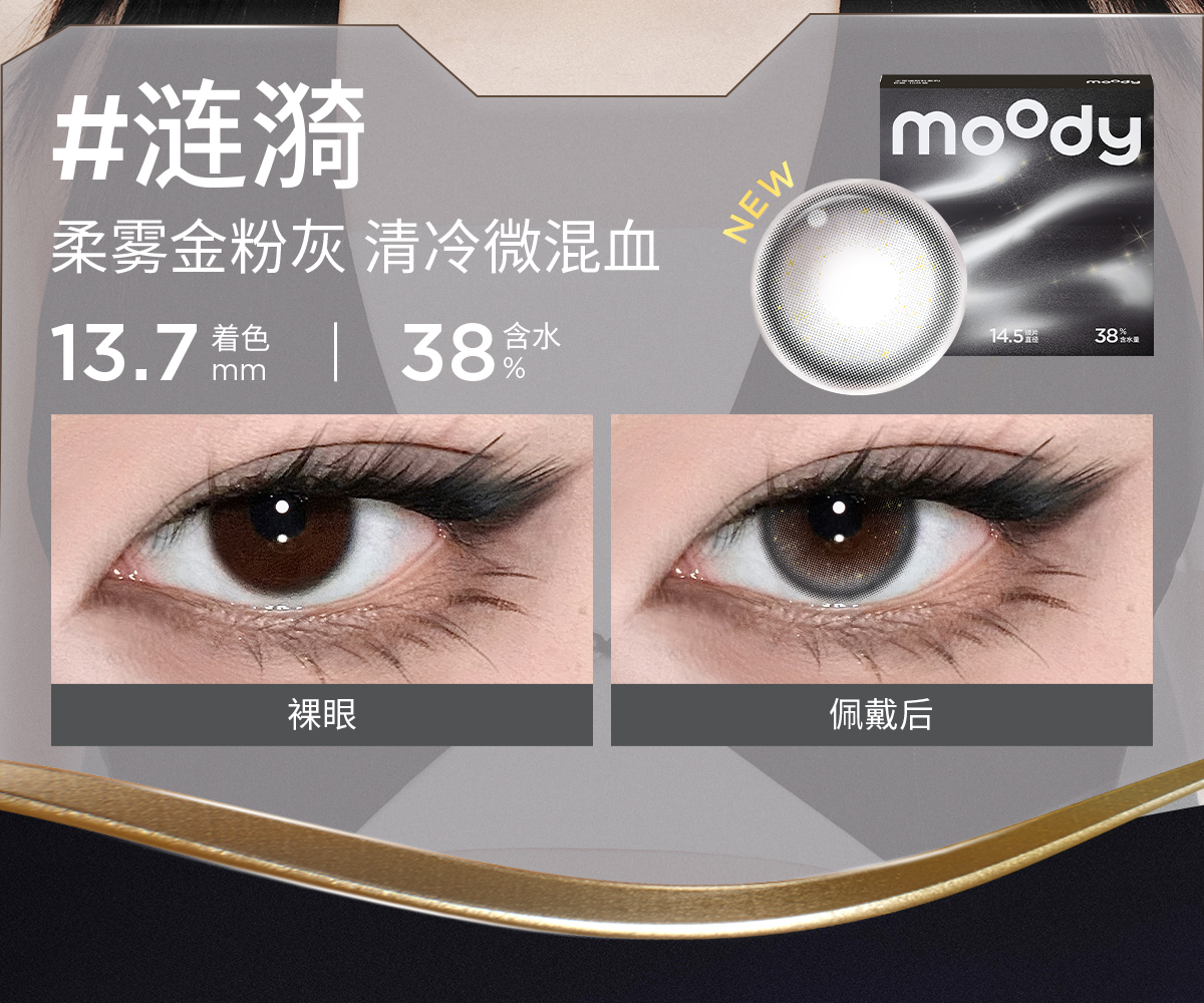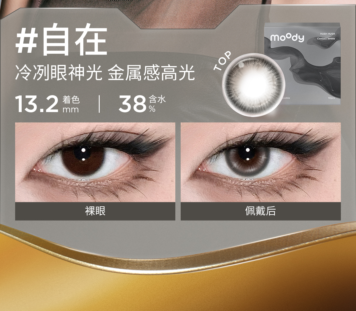moody硅水凝胶美瞳日抛mini2片彩色隐形眼镜