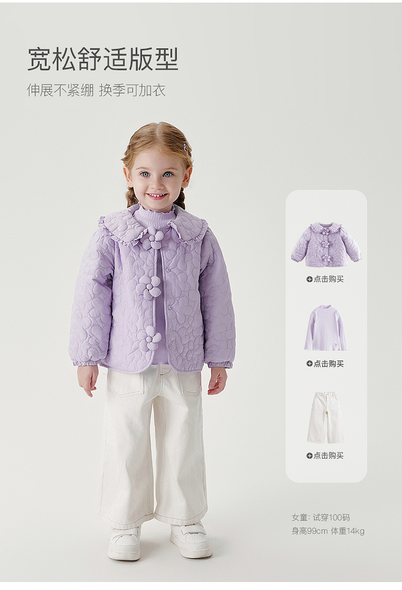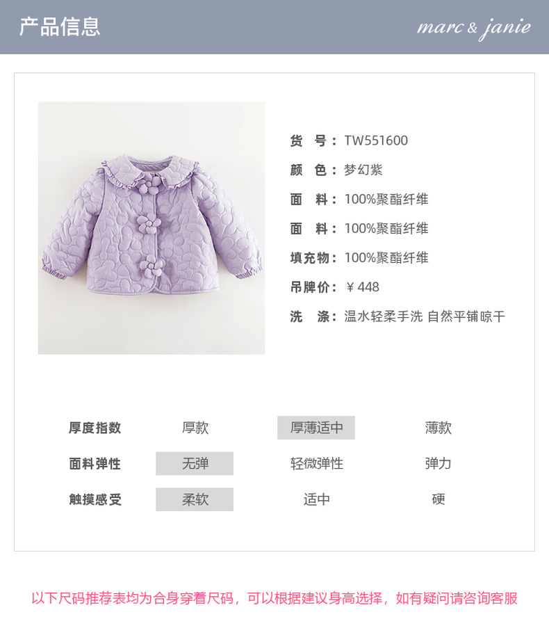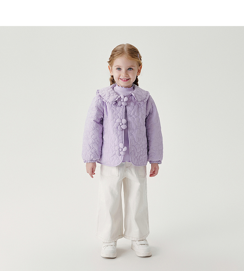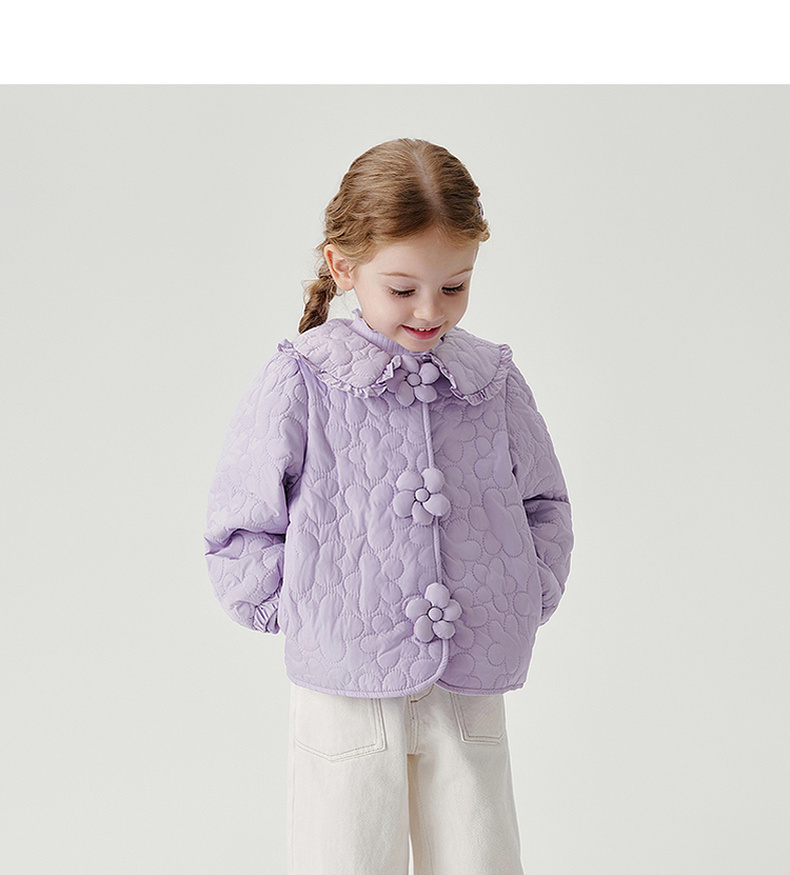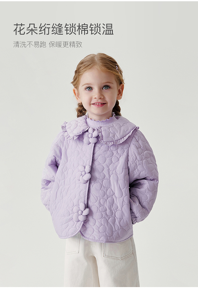 马克珍妮女童花朵绗棉翻领外套2025年秋装新款551600