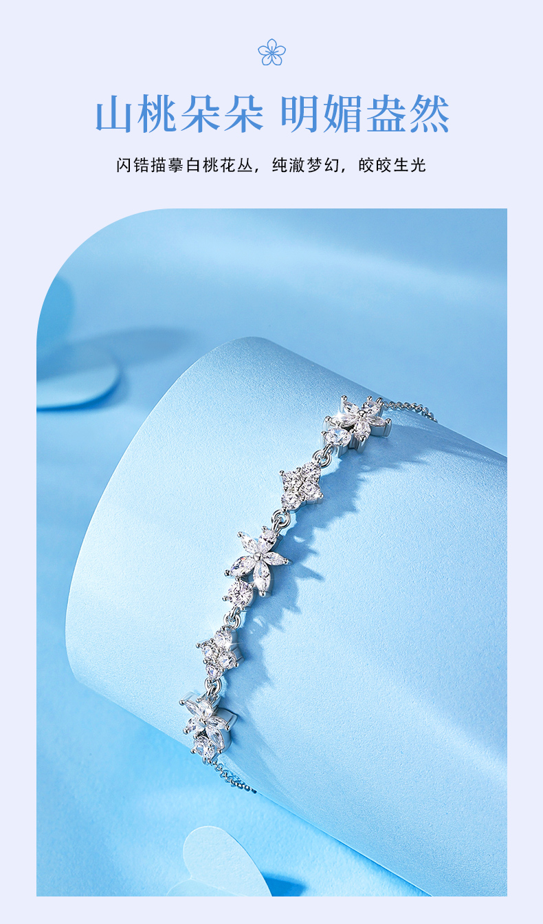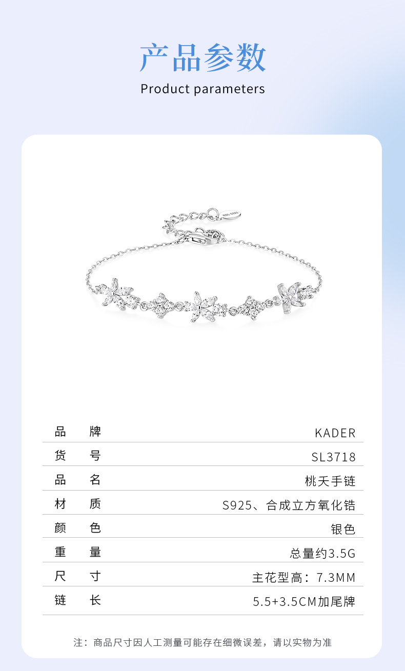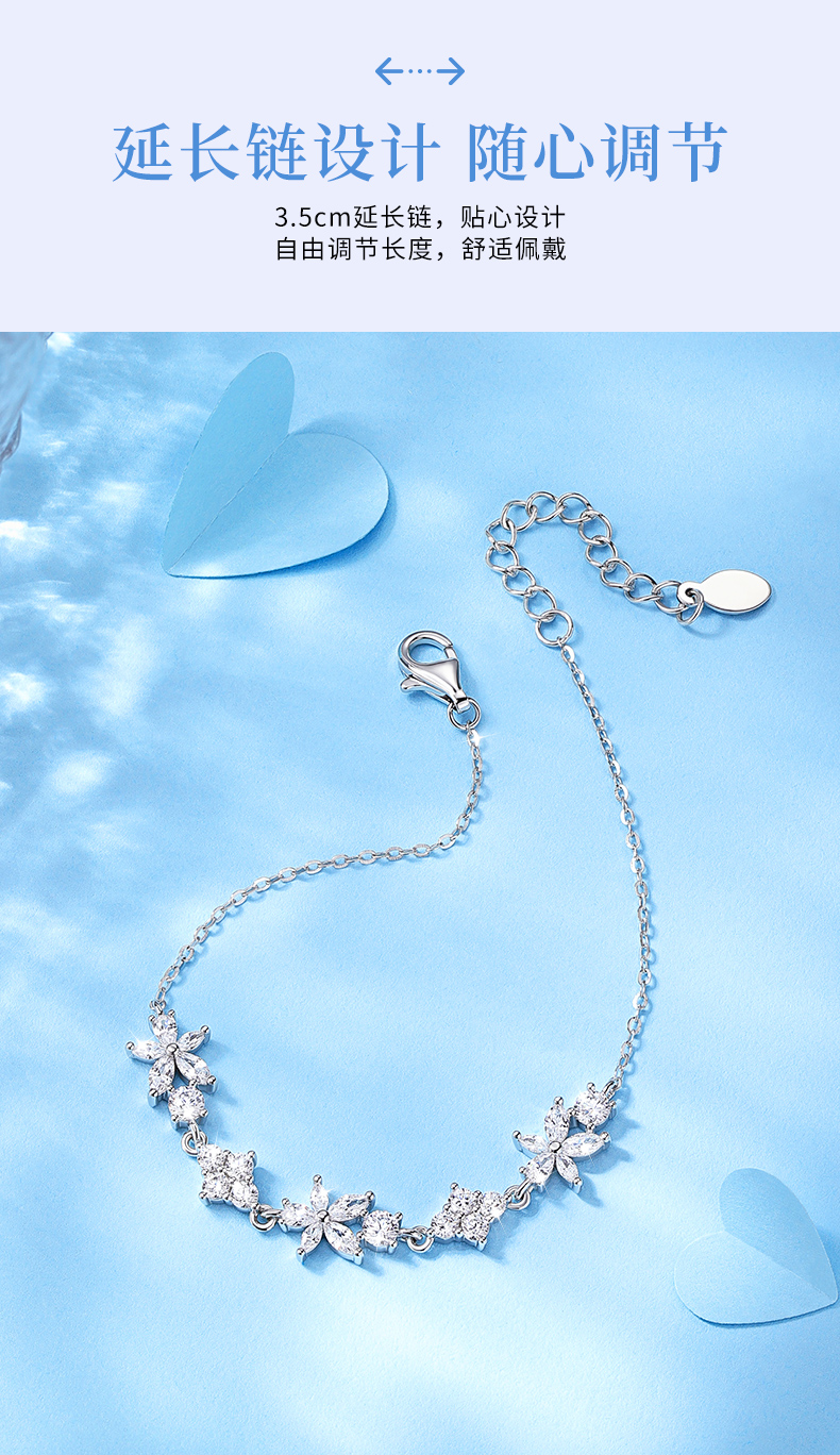 卡蒂罗/KADER 卡蒂罗KADER 漫漫桃花手链 经典满镶闪钻设计幸运紫藤花精致典雅闪耀吸睛可调节拼接链 甜美日常通勤百搭 925银 手链 女款 银色 礼盒