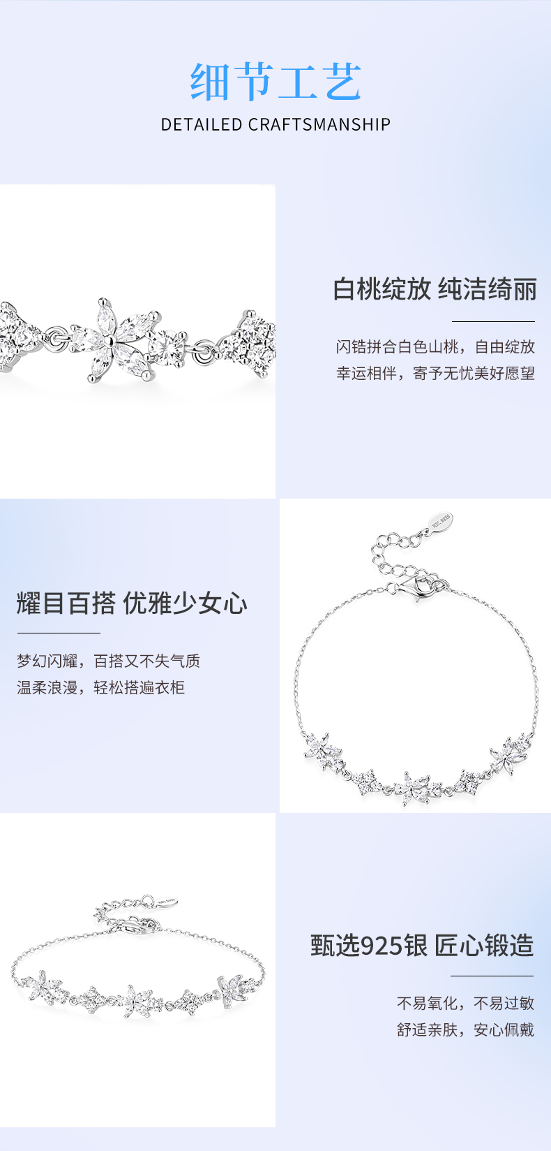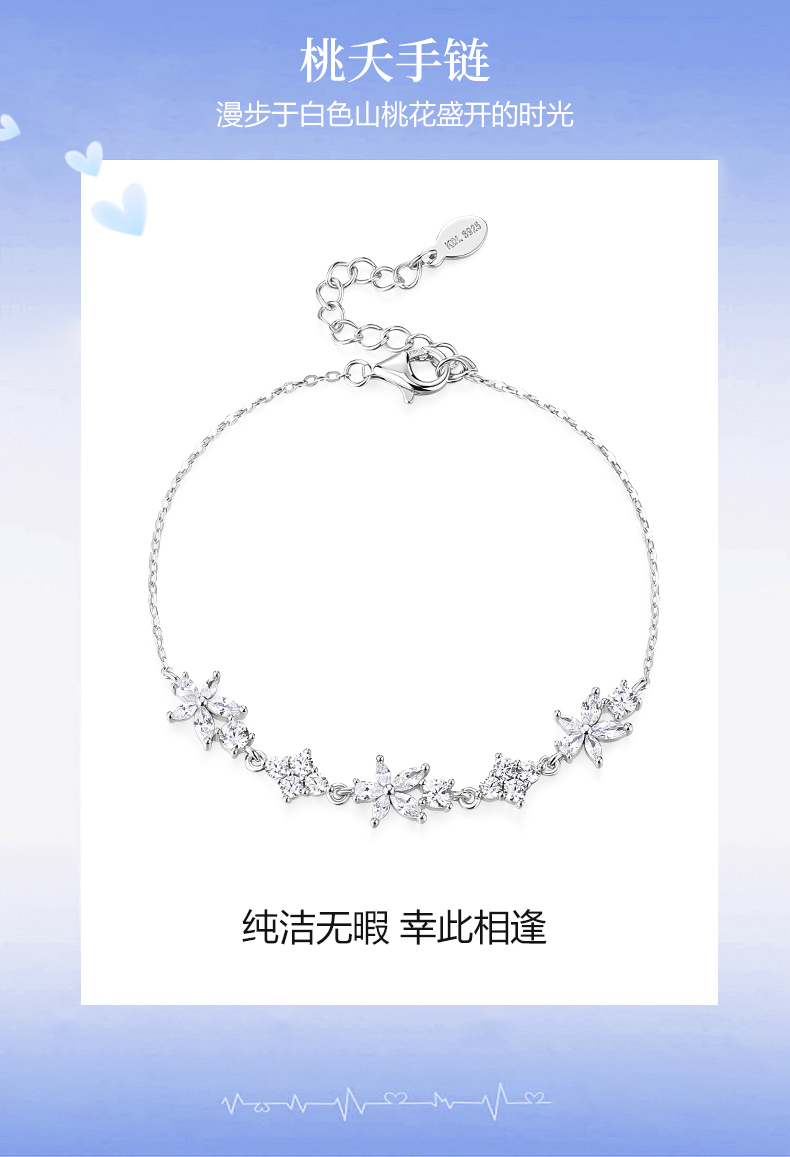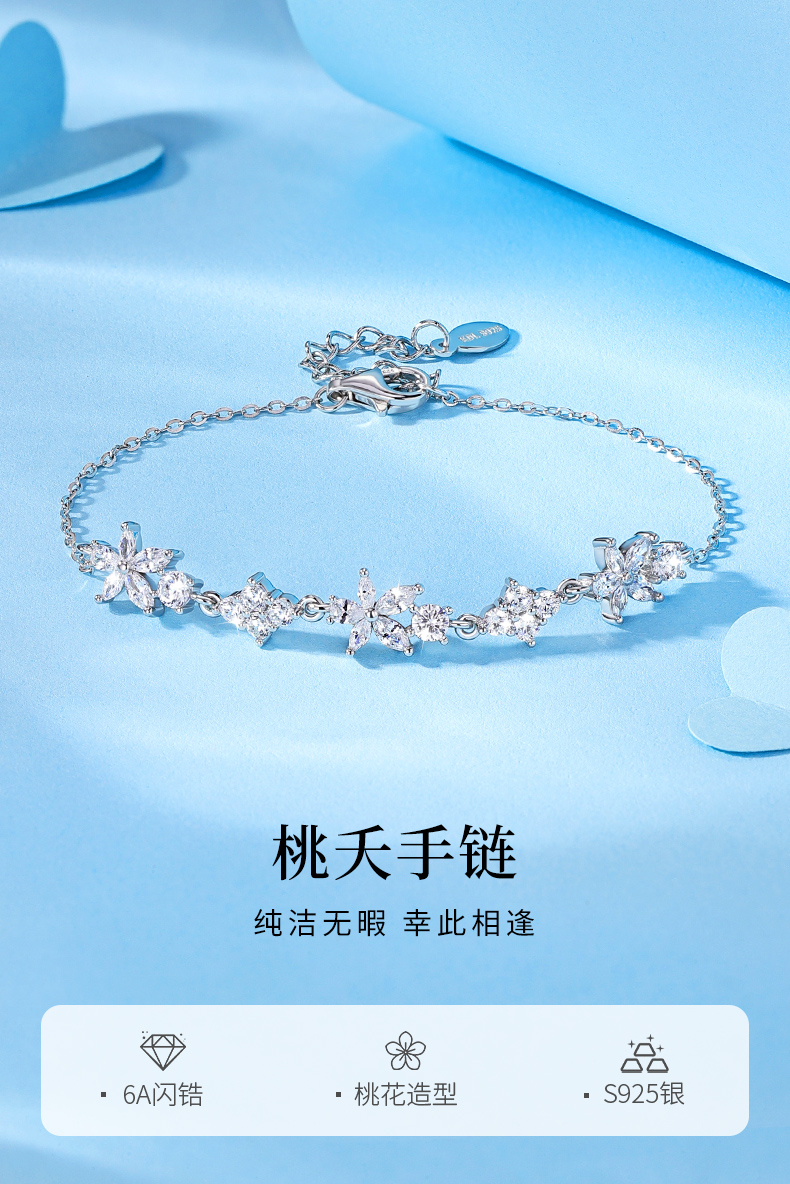 卡蒂罗/KADER 卡蒂罗KADER 漫漫桃花手链 经典满镶闪钻设计幸运紫藤花精致典雅闪耀吸睛可调节拼接链 甜美日常通勤百搭 925银 手链 女款 银色 礼盒