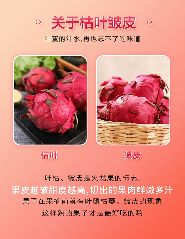 3、火龙果因自然生长,大小不均和个人觉得不好吃不在售后范围!