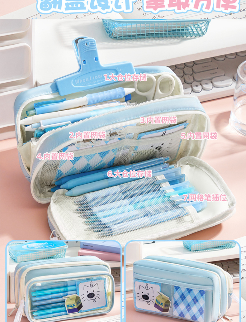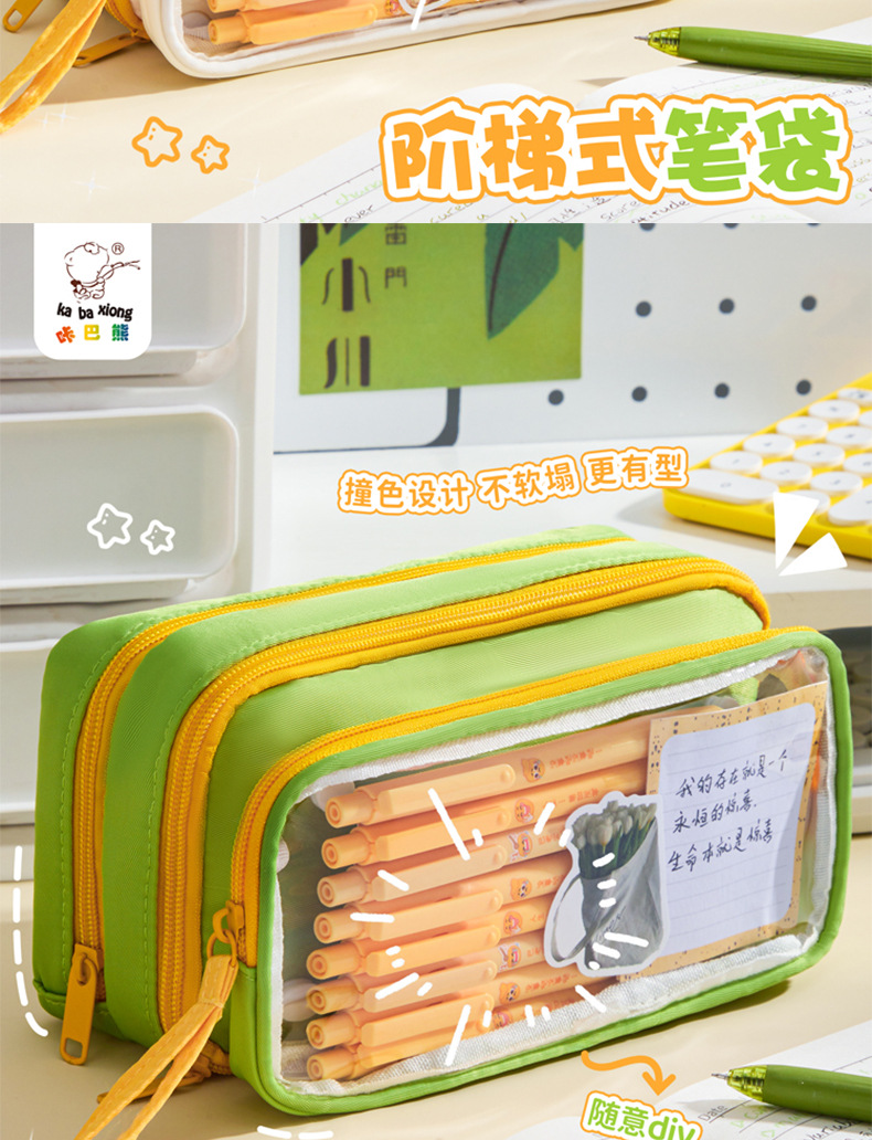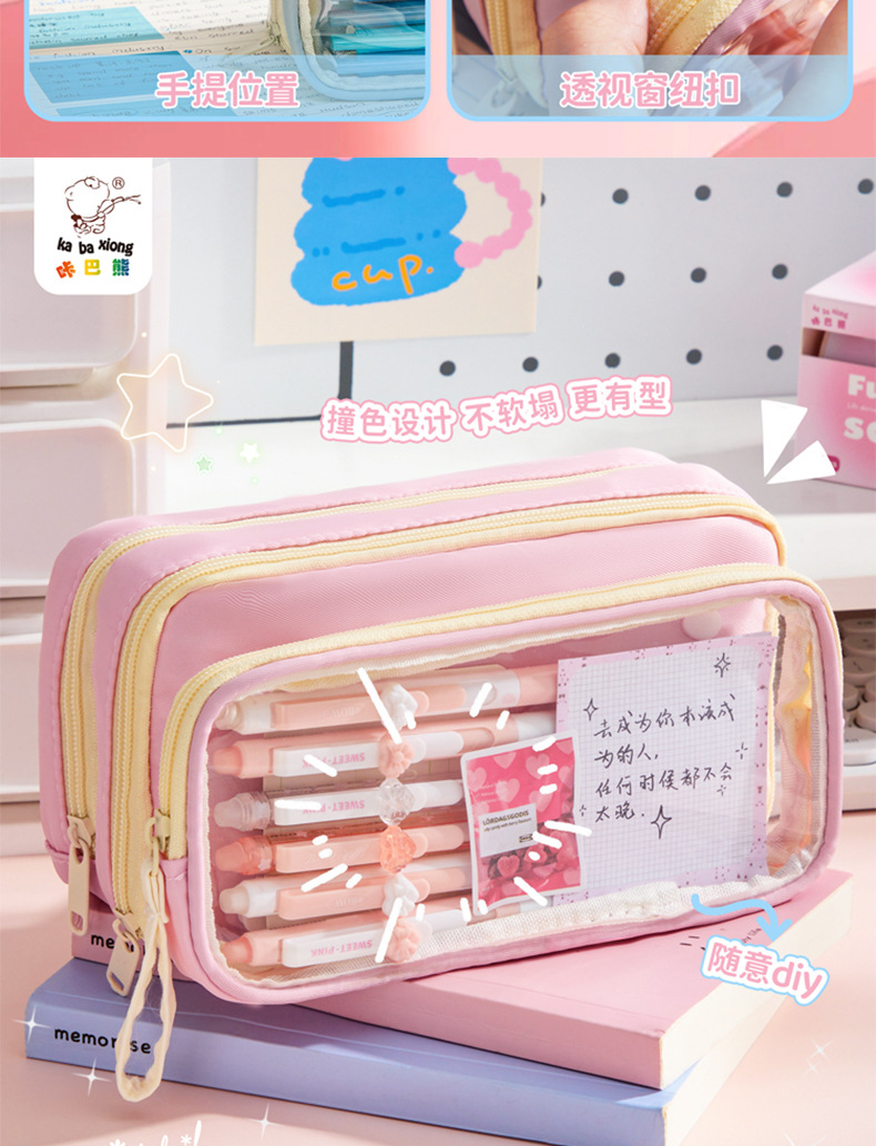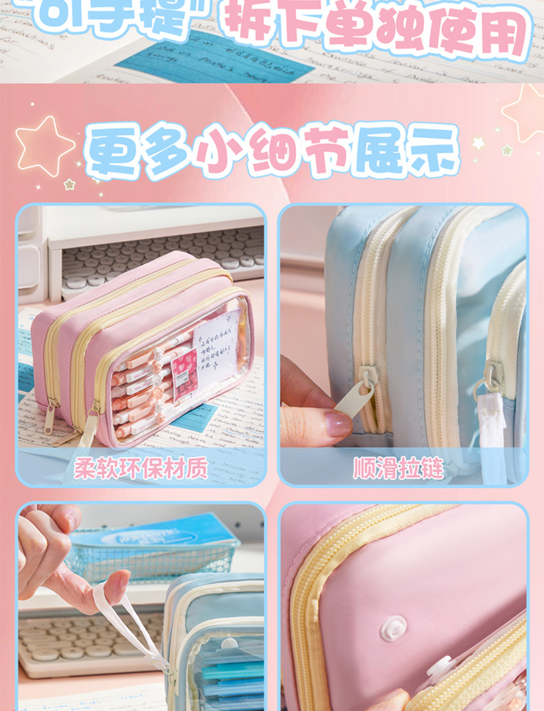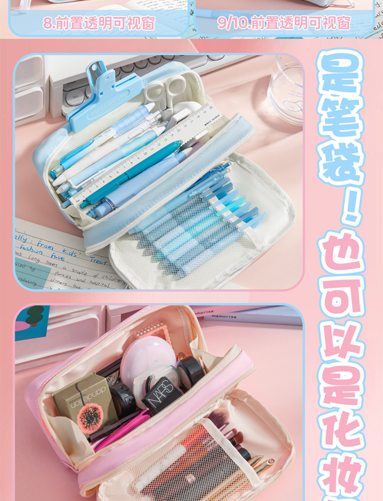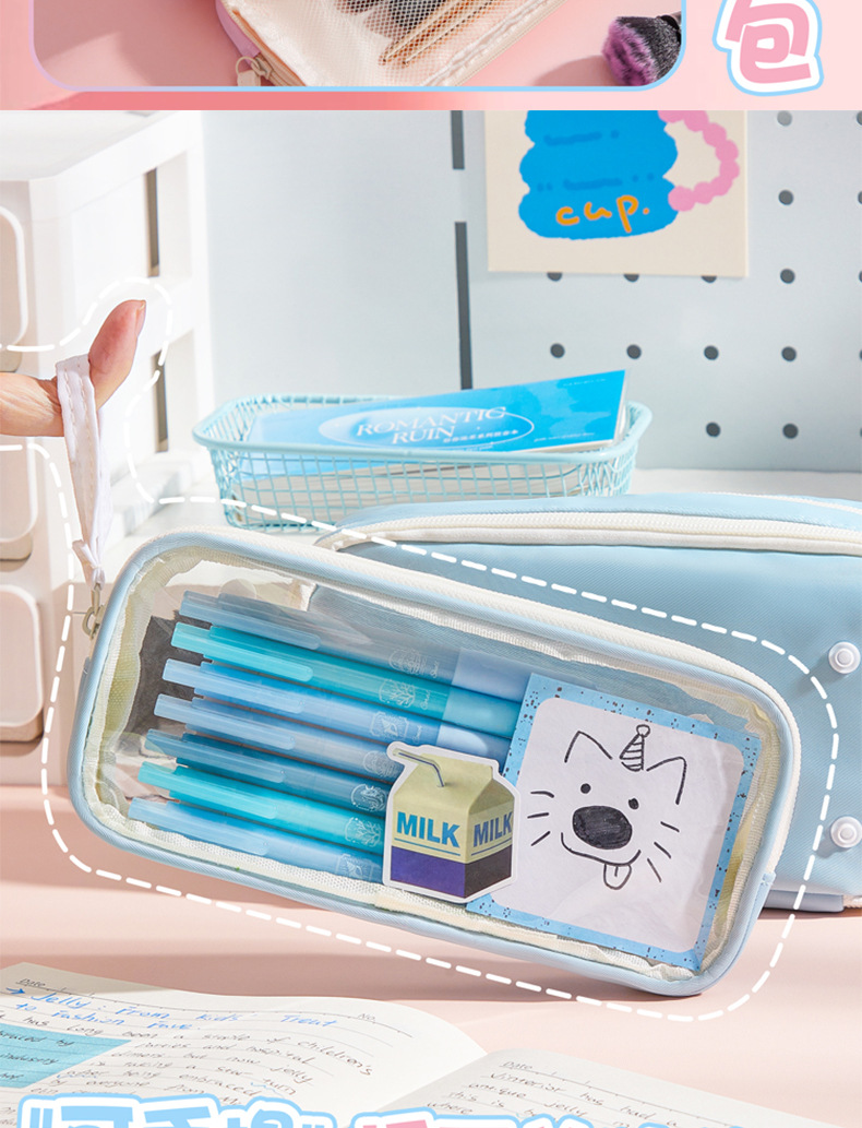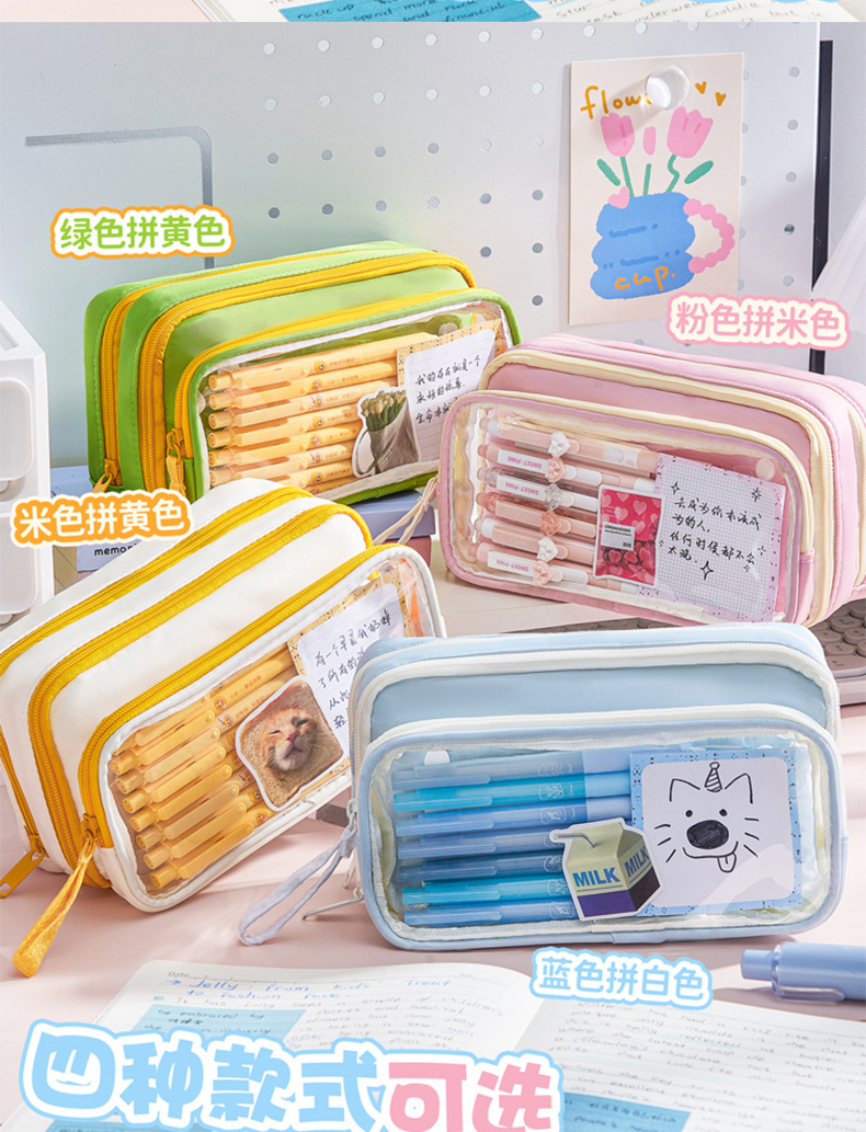 【可拆卸笔袋 文具一目了然】可透视大容量笔袋 简约韩版多功能初中小学生收纳袋 多层区分大开口袋