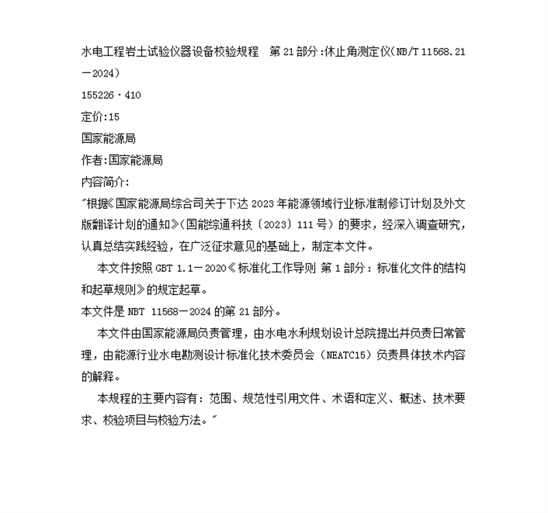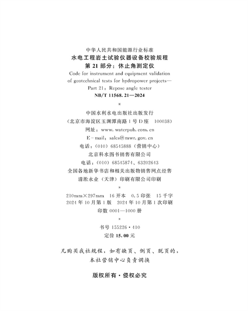 水电工程岩土试验仪器设备校验规程 第21部分:休止角测定仪(NB/T 11568.21 —2024)