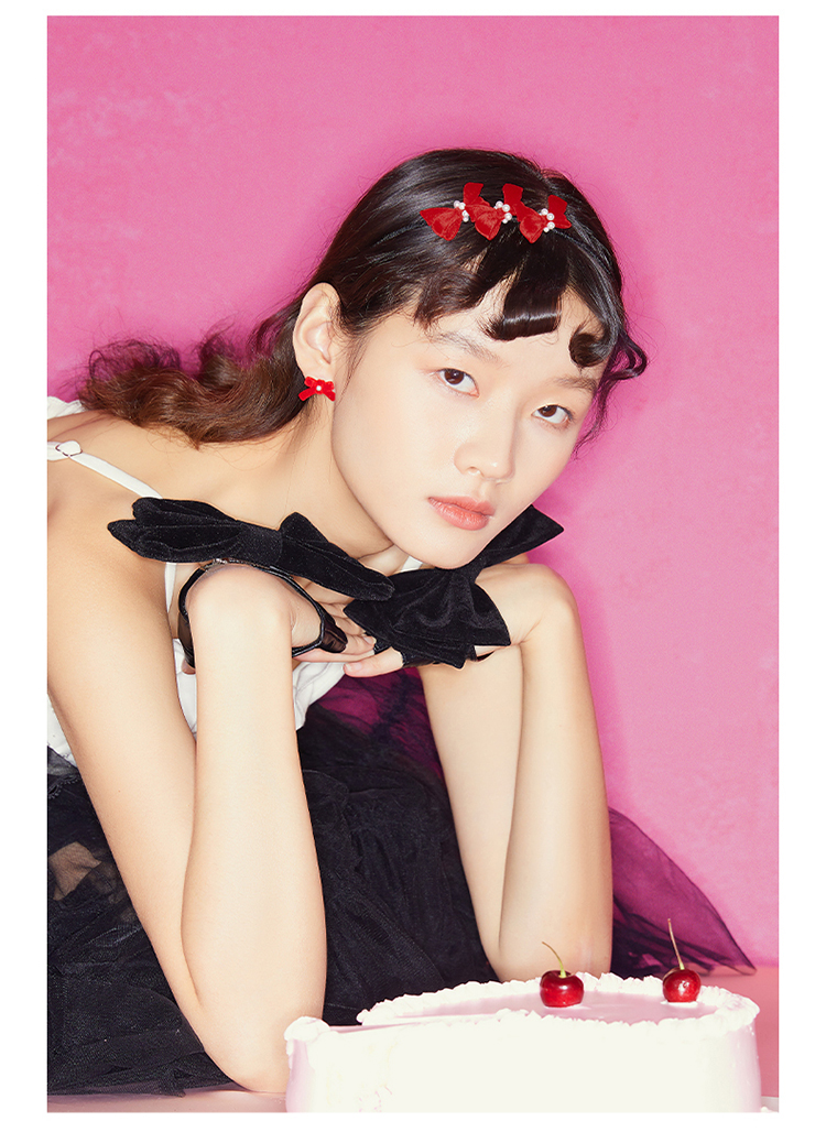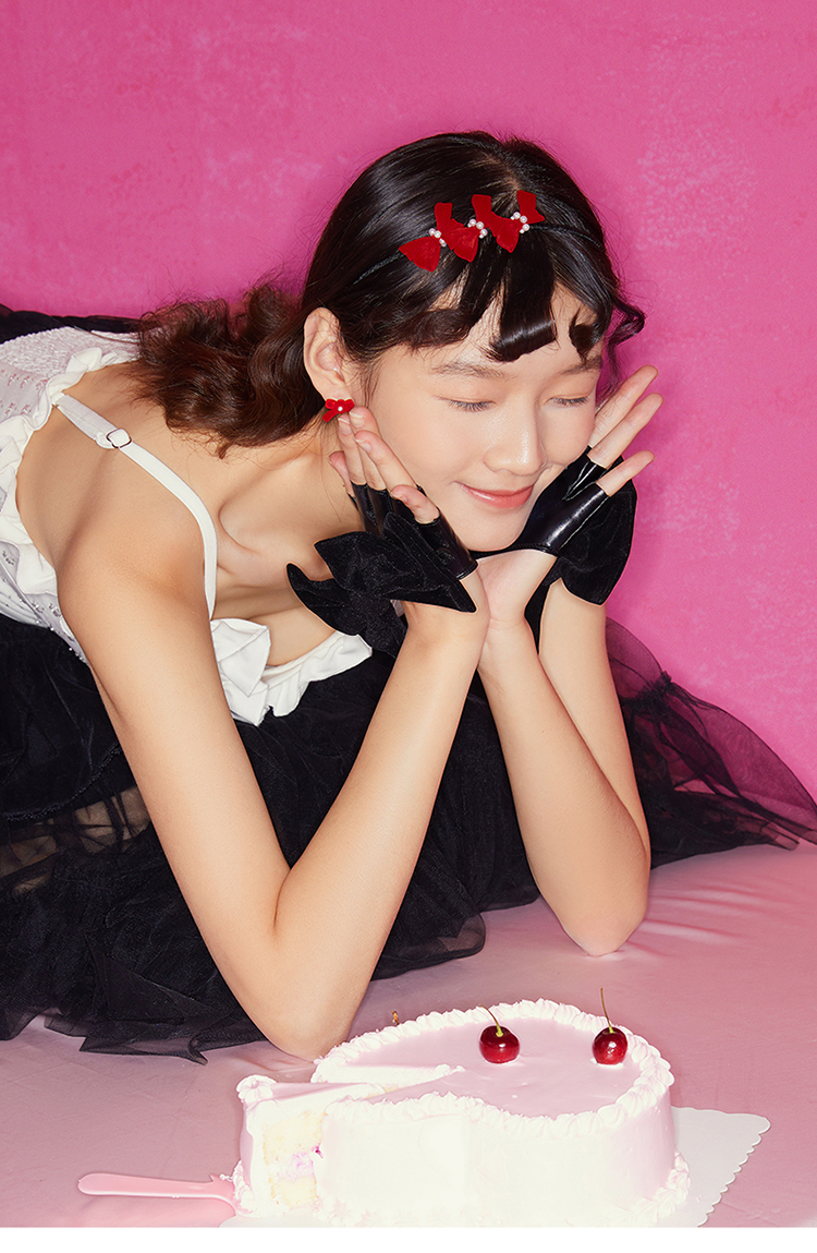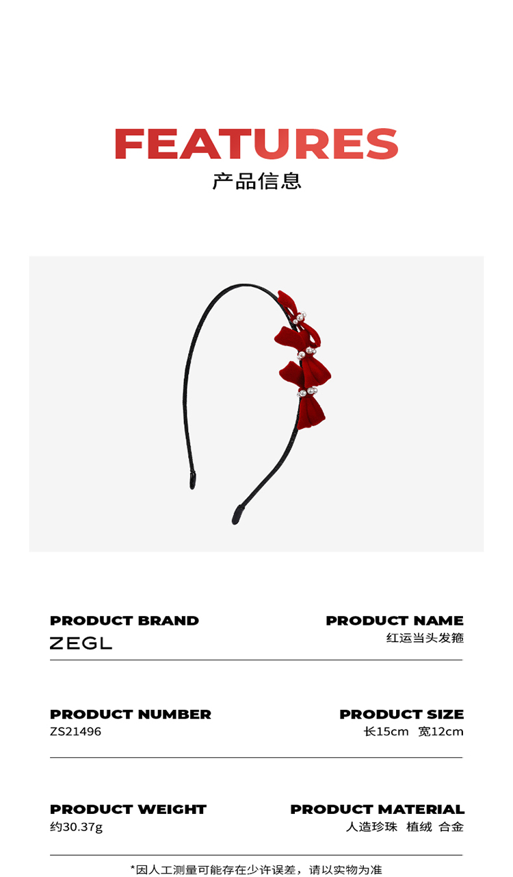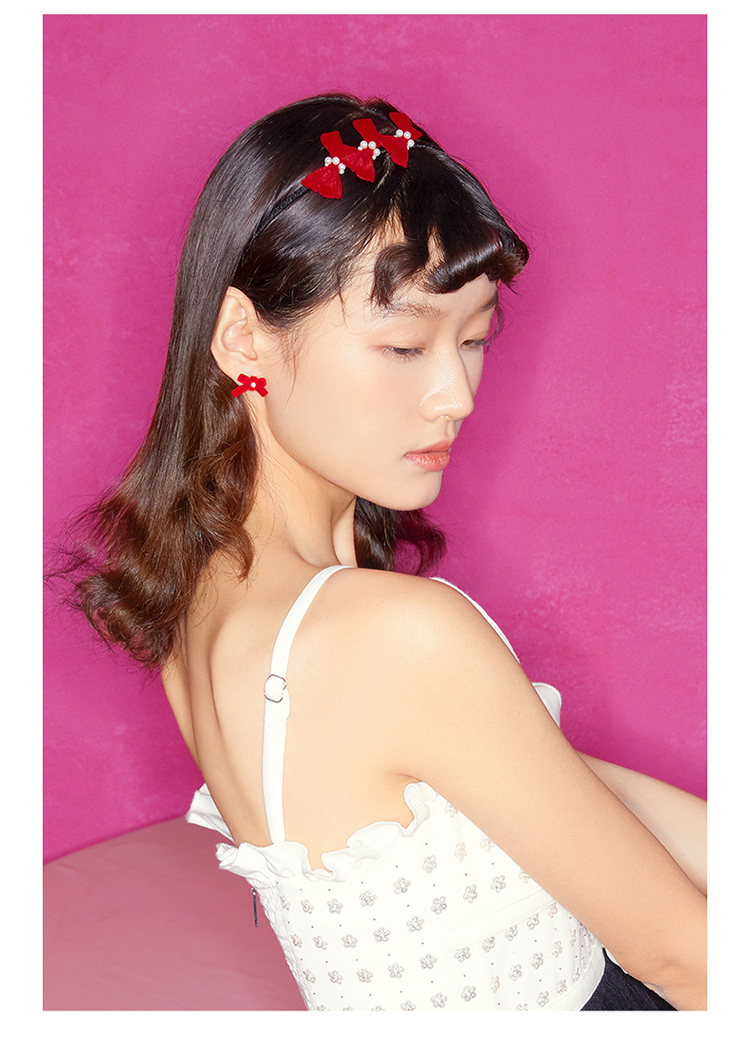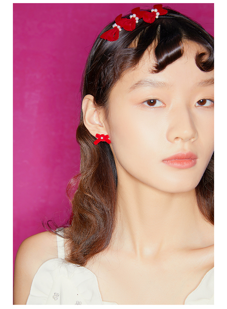 ZEGL设计师新年系列红色发箍女秋冬爱心耳环耳钉925银针耳饰套装