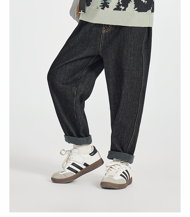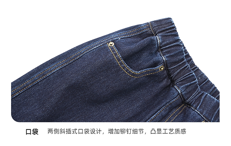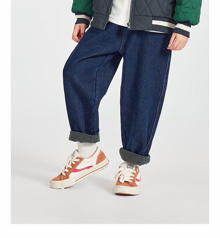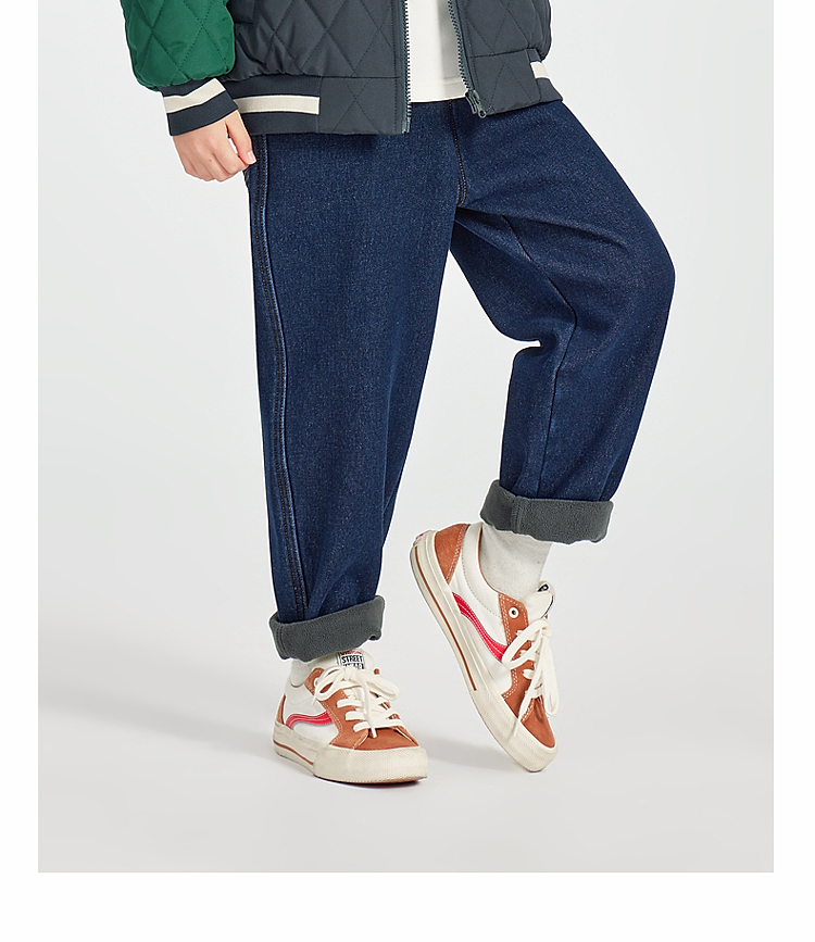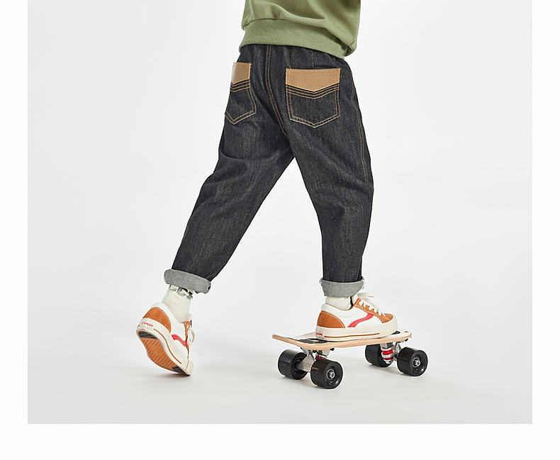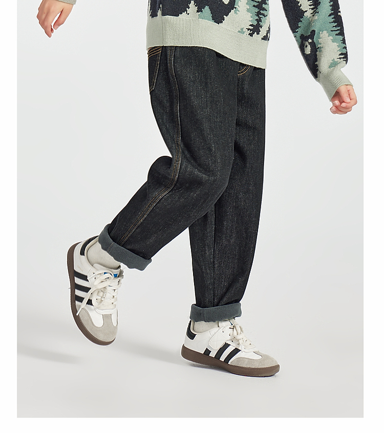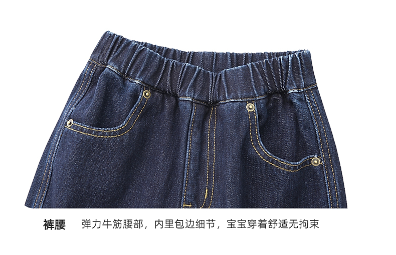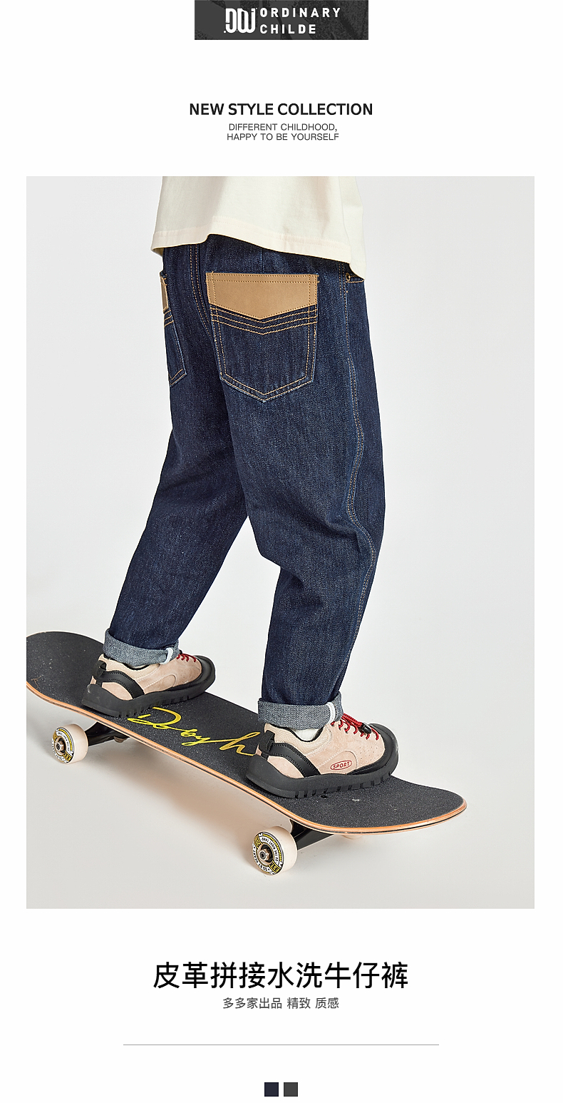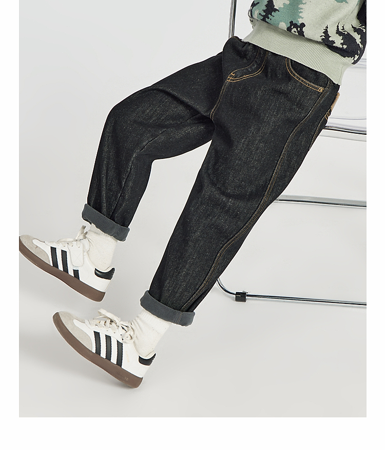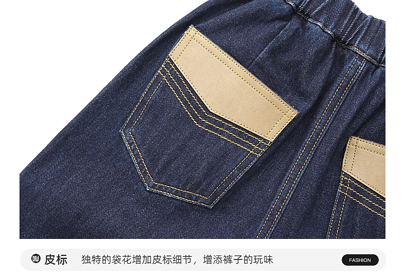 【团购价59.9】多多家男童加绒牛仔裤秋冬装儿童裤子2024新款中大童皮革拼接长裤9906