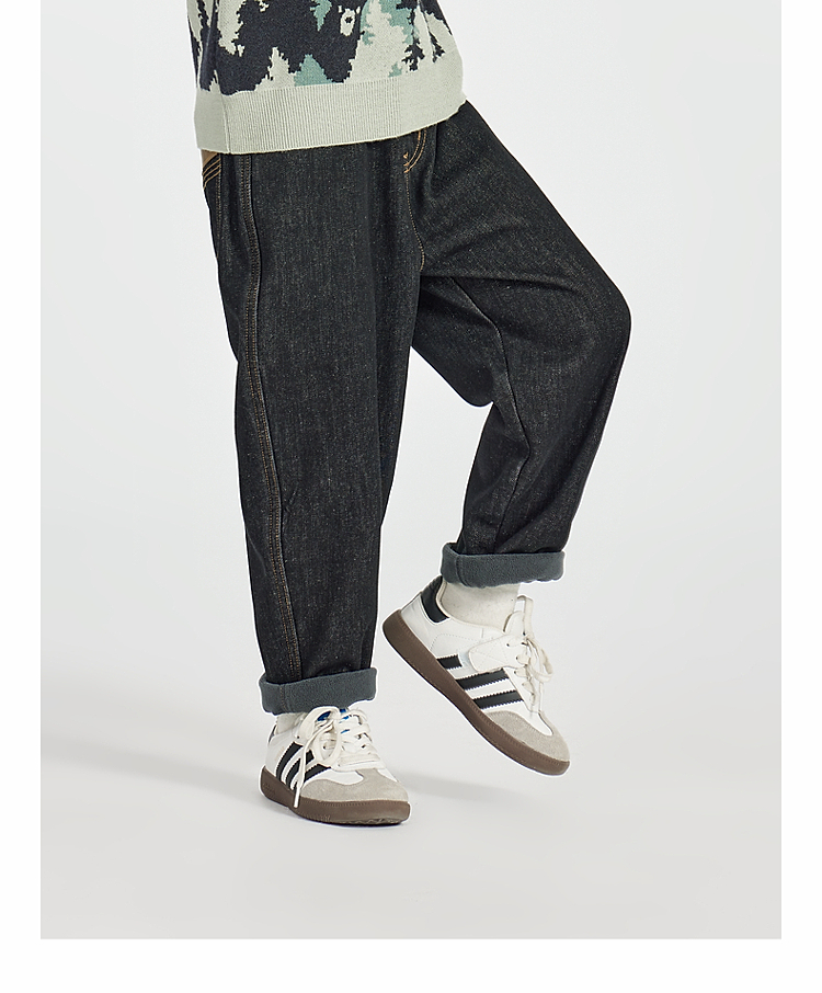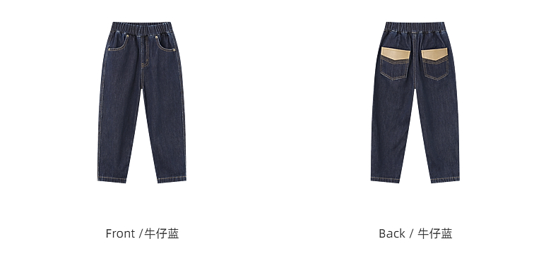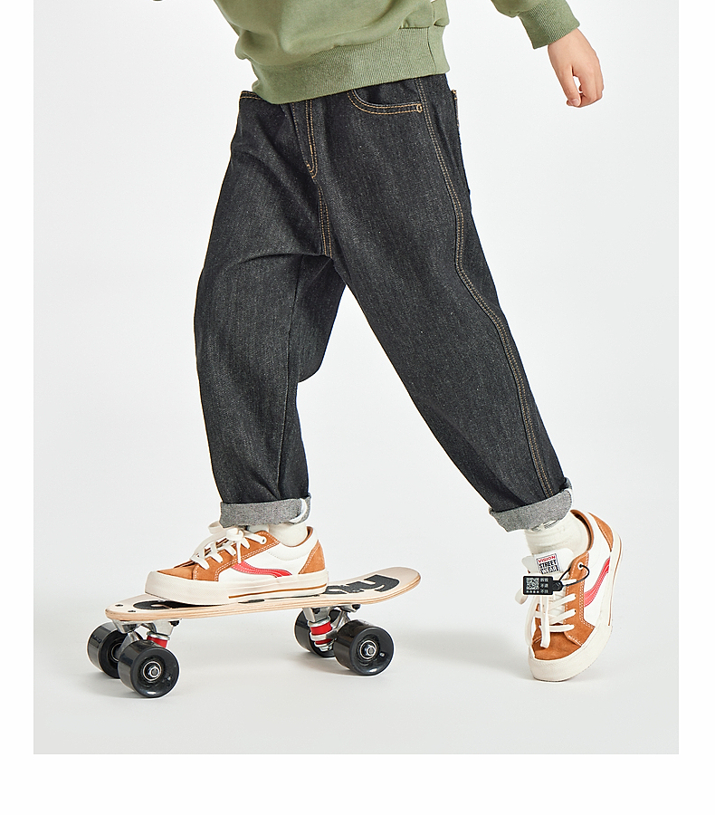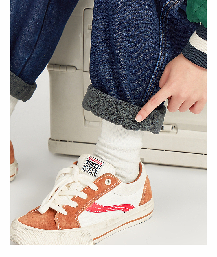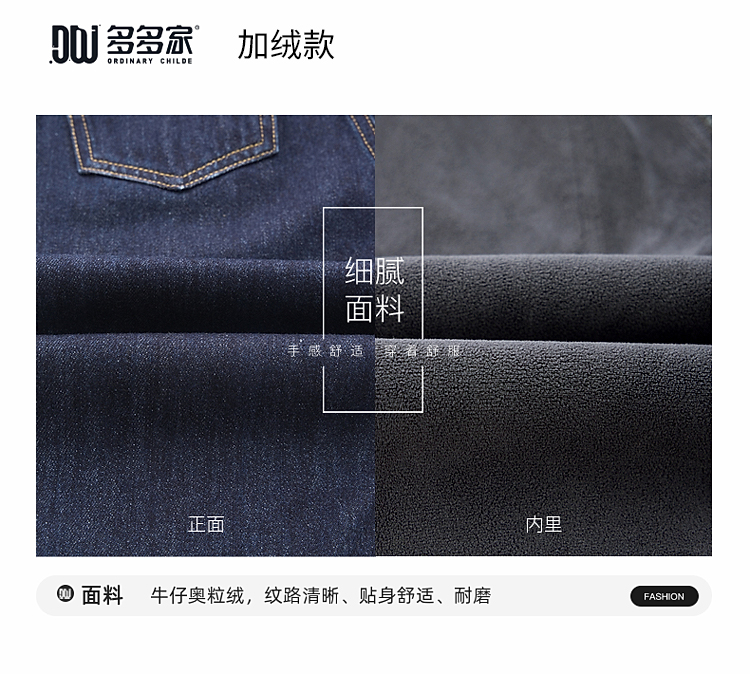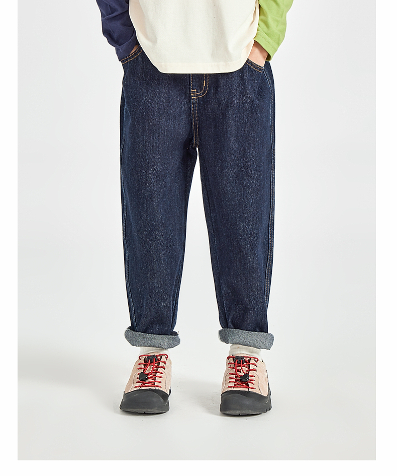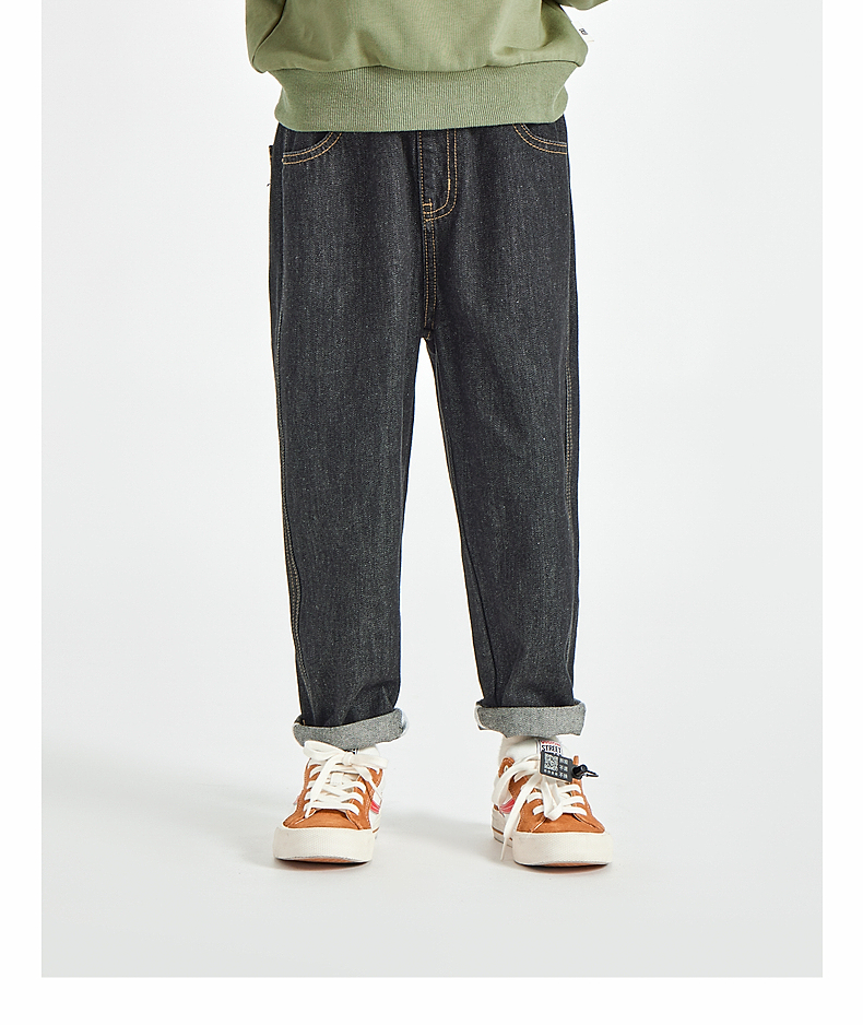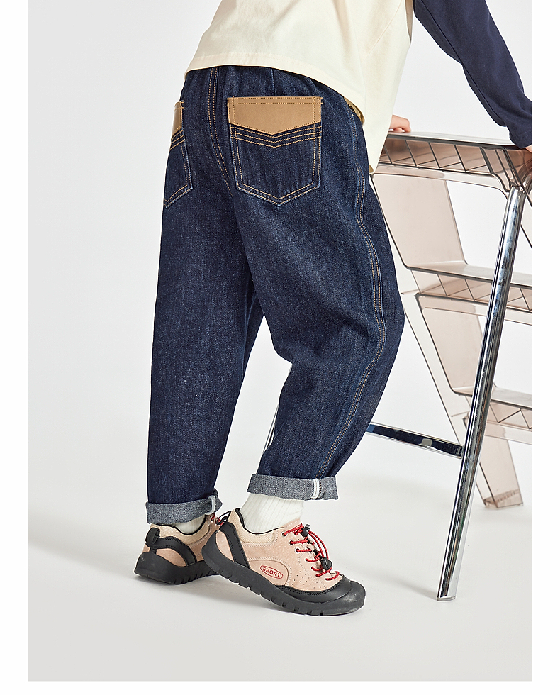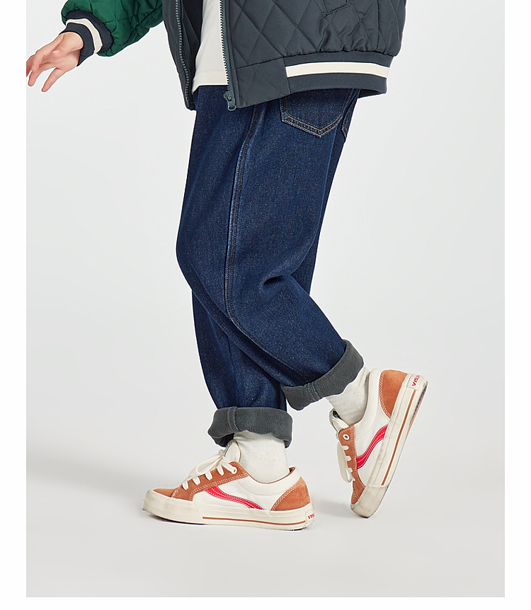 【团购价59.9】多多家男童加绒牛仔裤秋冬装儿童裤子2024新款中大童皮革拼接长裤9906