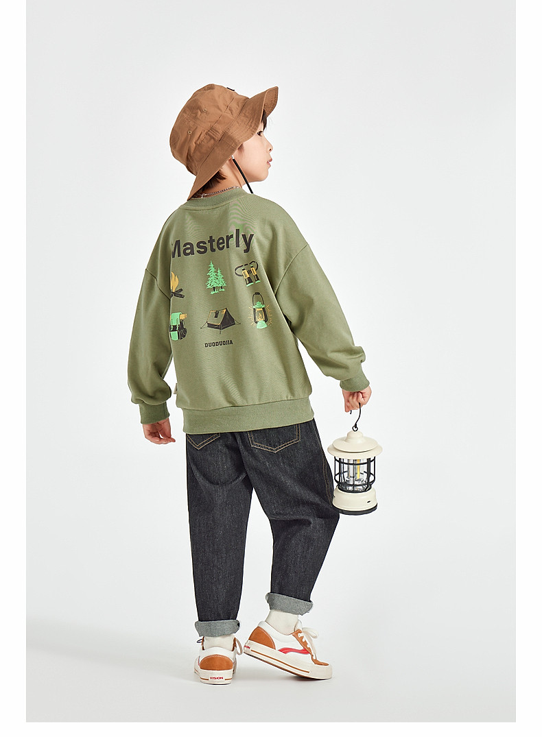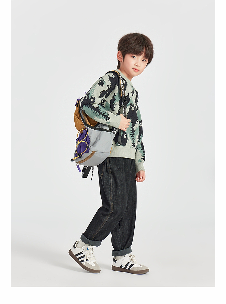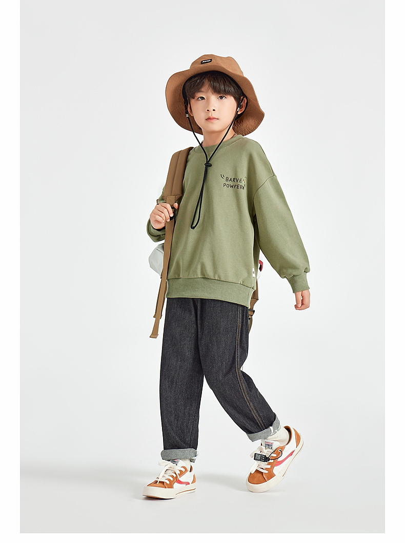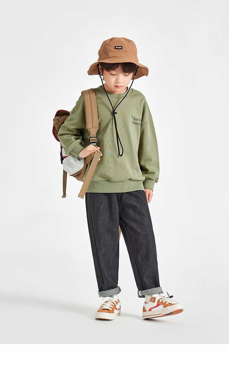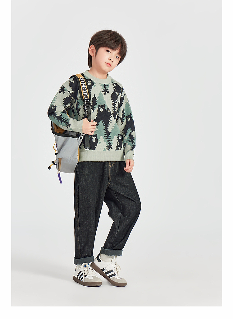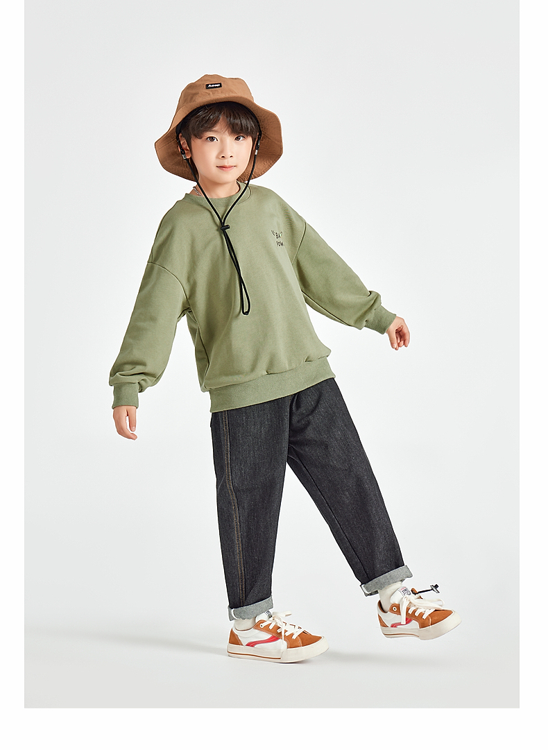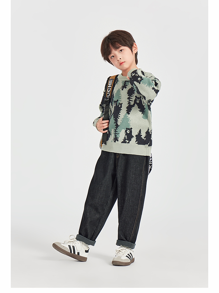 【团购价59.9】多多家男童加绒牛仔裤秋冬装儿童裤子2024新款中大童皮革拼接长裤9906