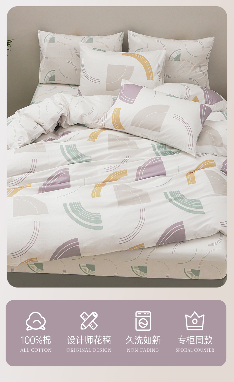2025年春夏新品雅芳婷精梳全棉四件套ins风几何图案纯棉被套套件