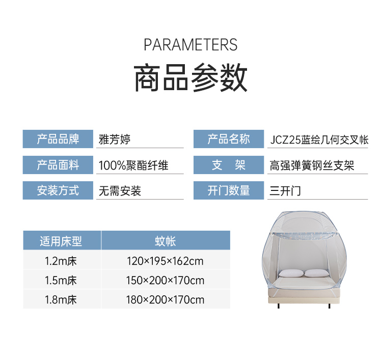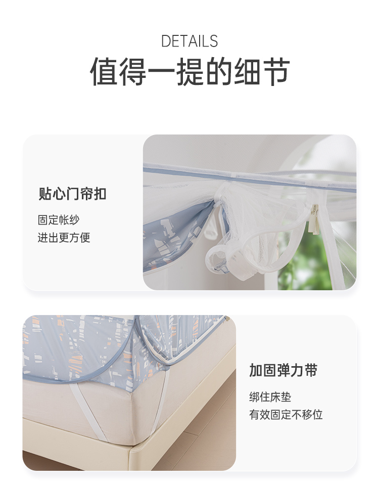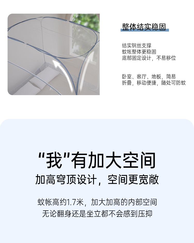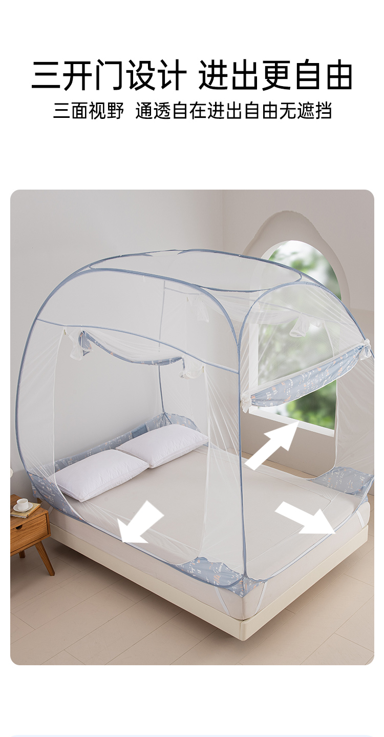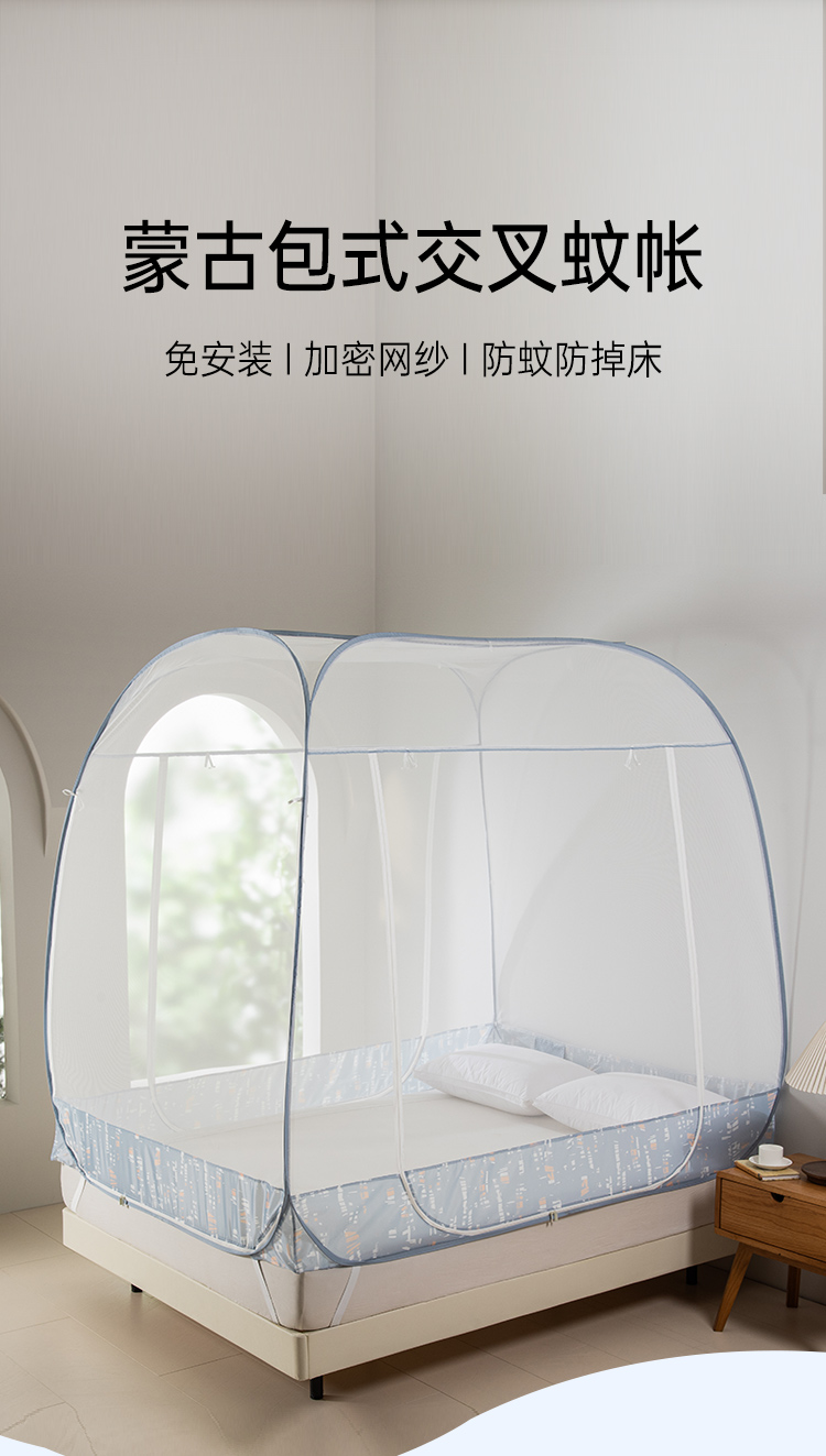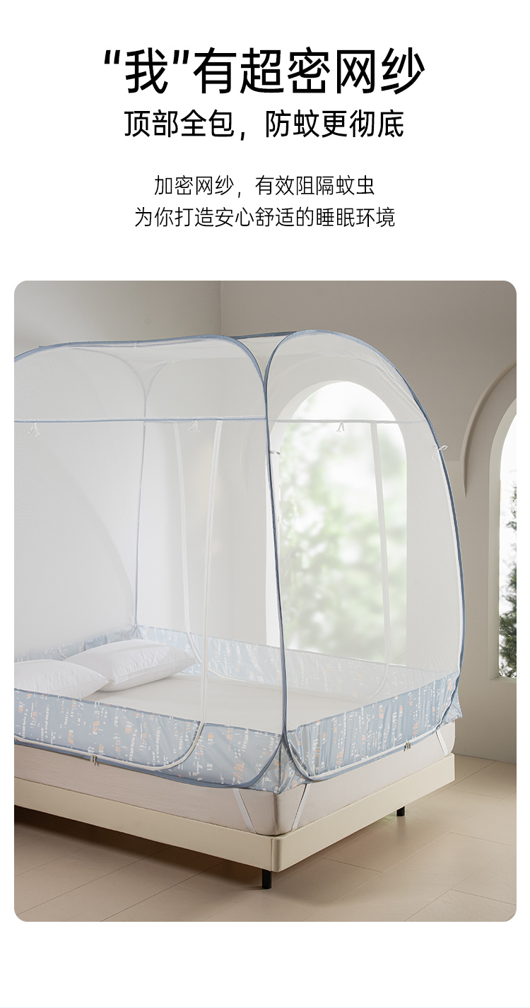2025年春夏新品雅芳婷免安装蒙古包蚊帐家用卧室儿童防摔折叠纹帐