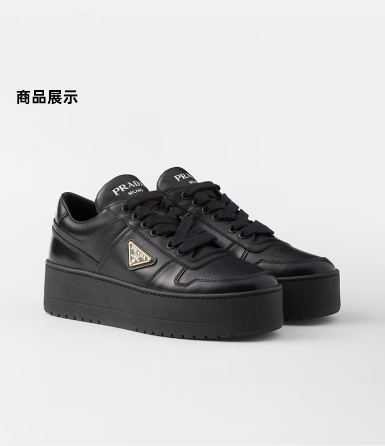 PRADA 普拉达 男士 Downtown Bold 珐琅金属三角形徽标皮革休闲运动鞋 黑色 1E792M 3LPF F0002
