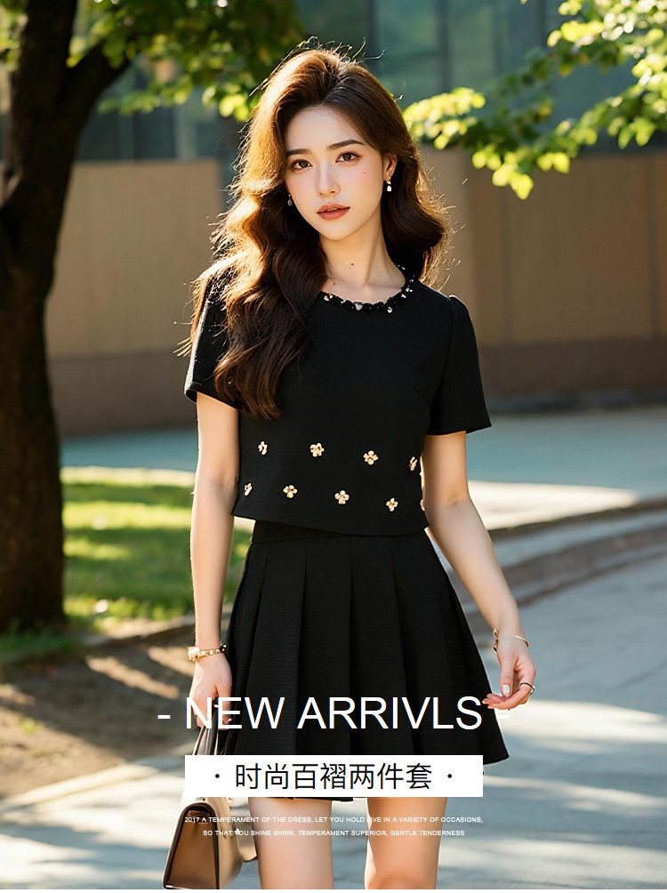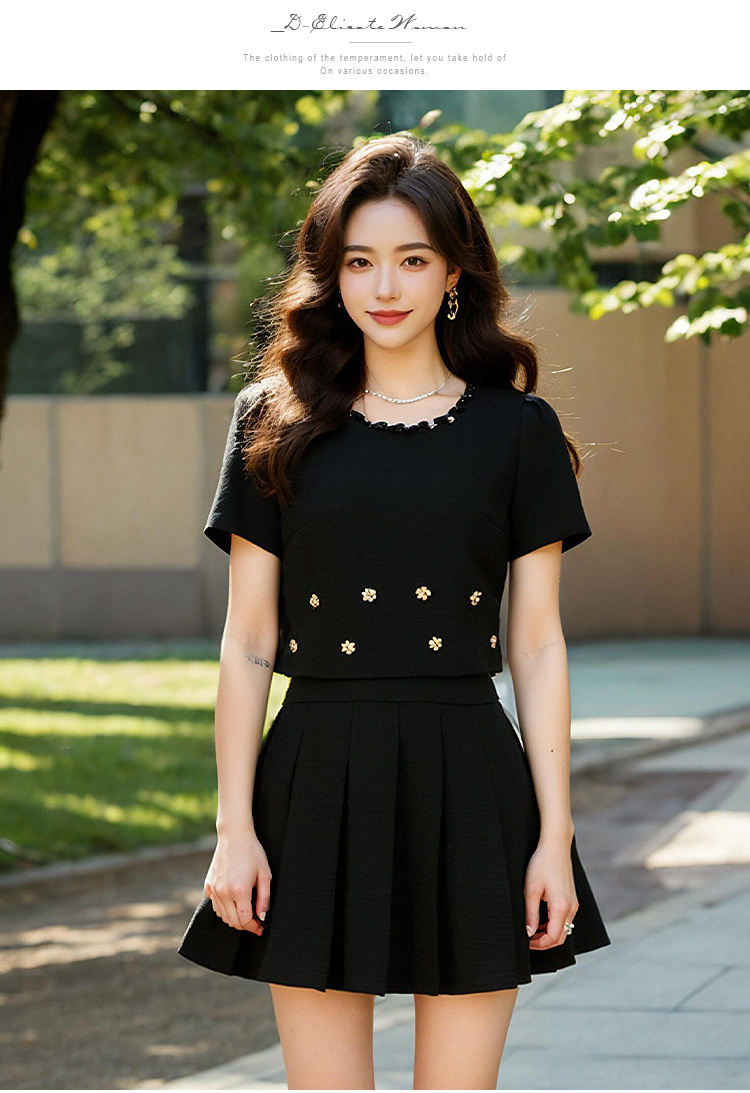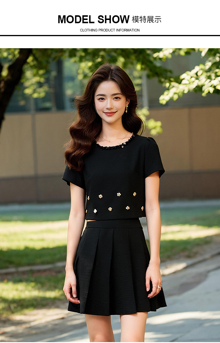 奢姿大码女装2025夏季花朵立体装饰松紧两件套胖妹妹小香风套装9952958324