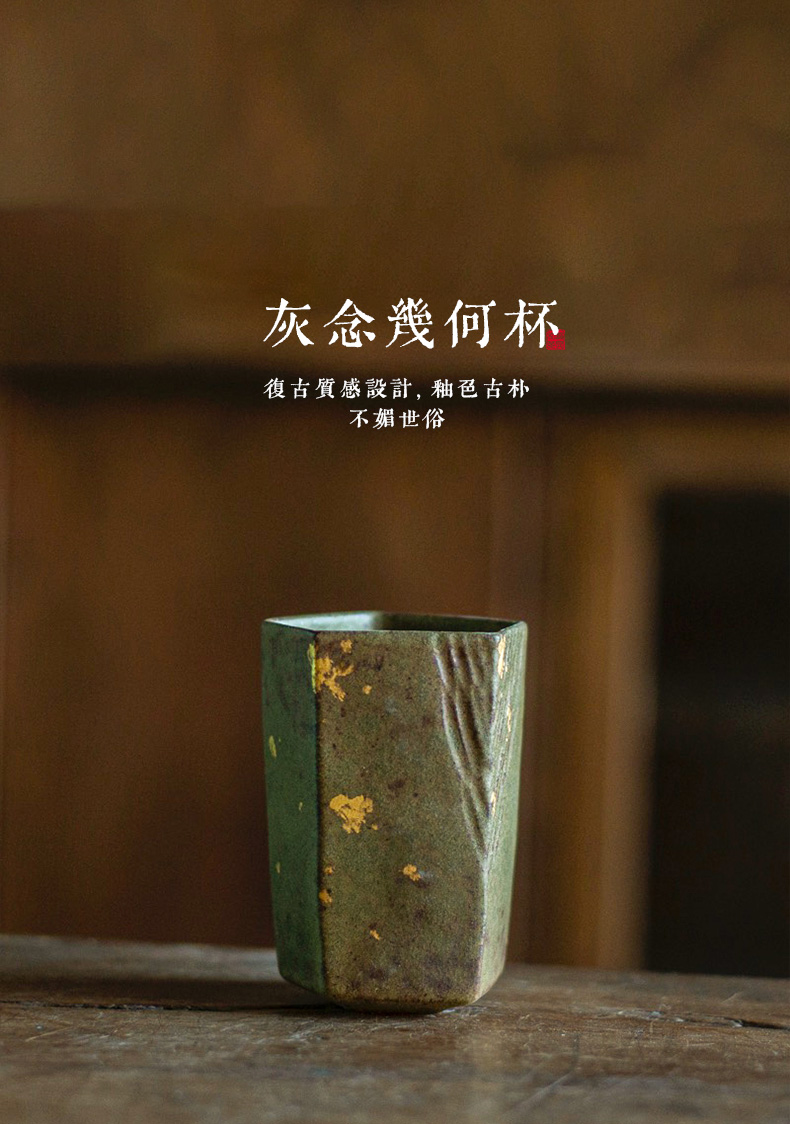 灰念几何杯/小/点金 青苔带金高款杯主人杯单杯个人专用泡茶杯创意茶杯
