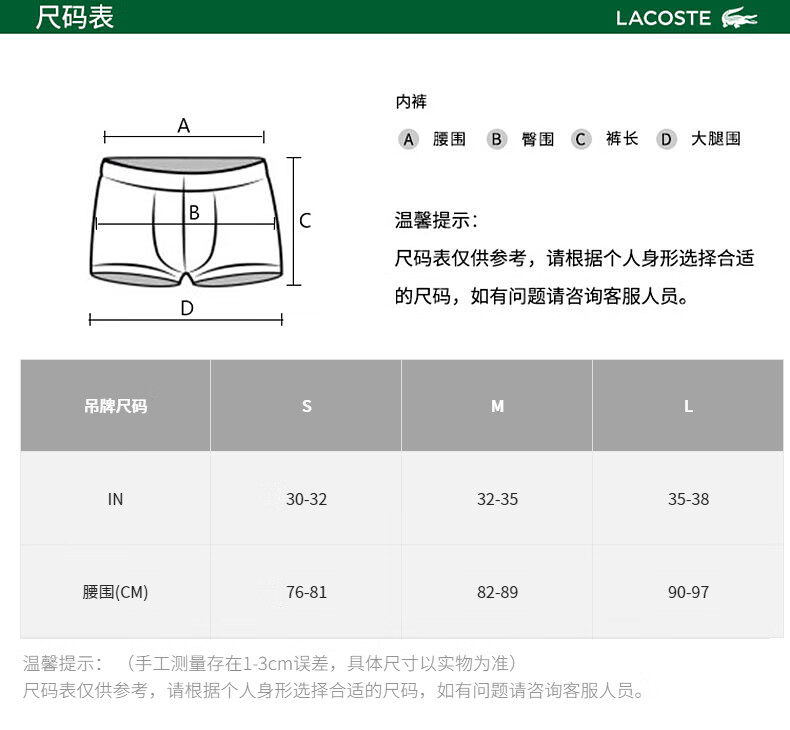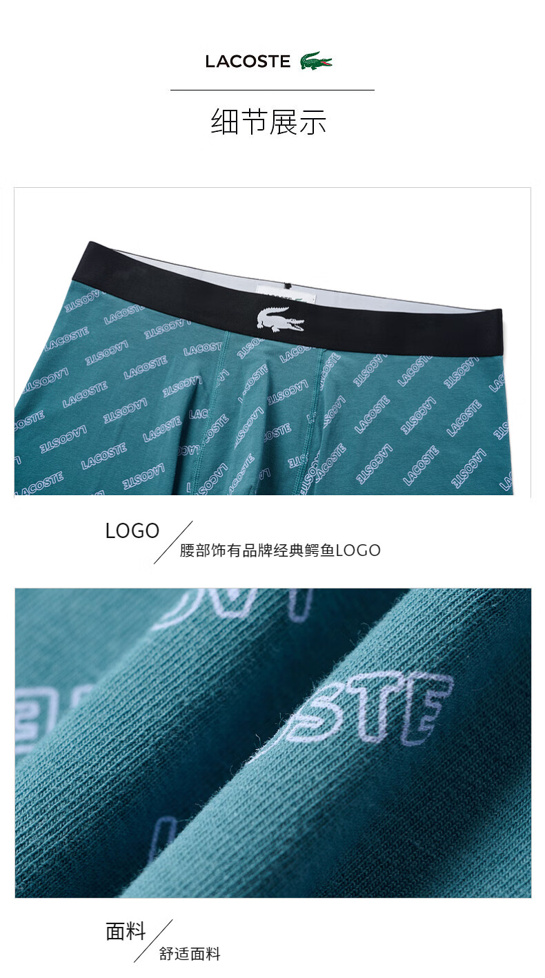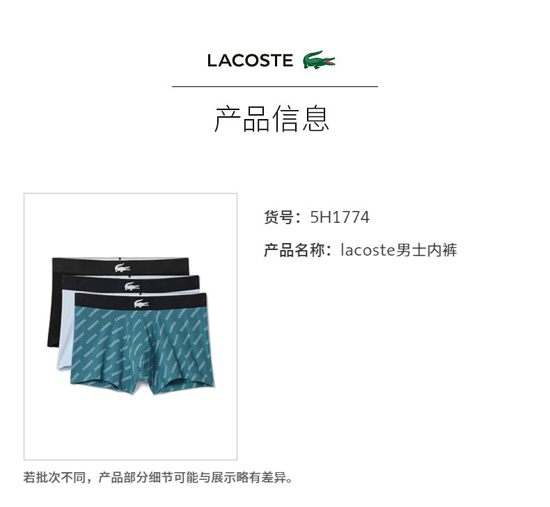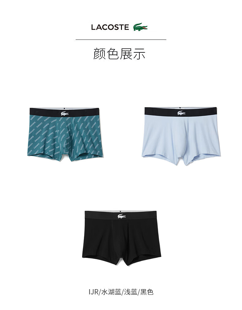 Lacoste法国鳄鱼男装新款舒适3条装平角内裤5H1774-10