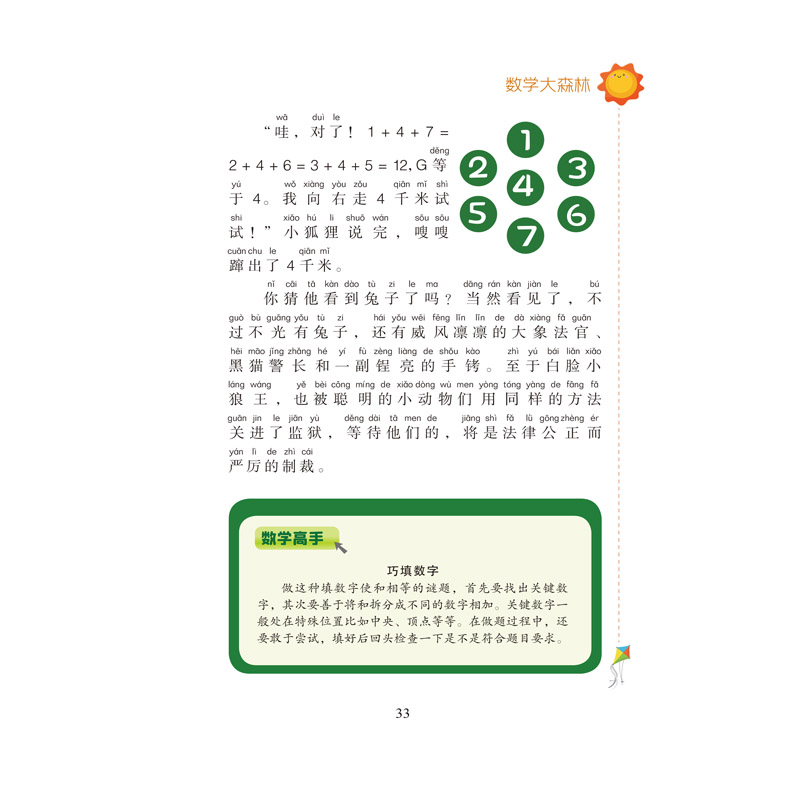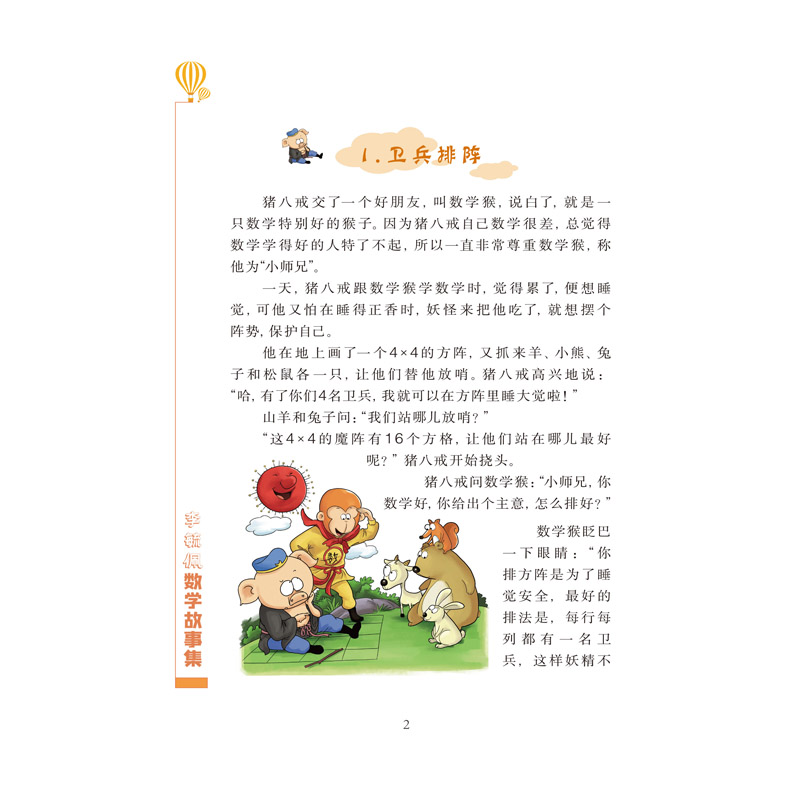 本册精选了李毓佩教授创作的3个中短篇数学童话:《数学大森林》《智人国历险记》和《数学怪物猪八猴》。并针对小学1、2、3年级小读者的数学知识掌握情况及思维能力水平,对故事中涉及的数学知识点进行归纳总结,且附有趣味测试供小读者练手。全书配有彩色插图,并注有拼音。