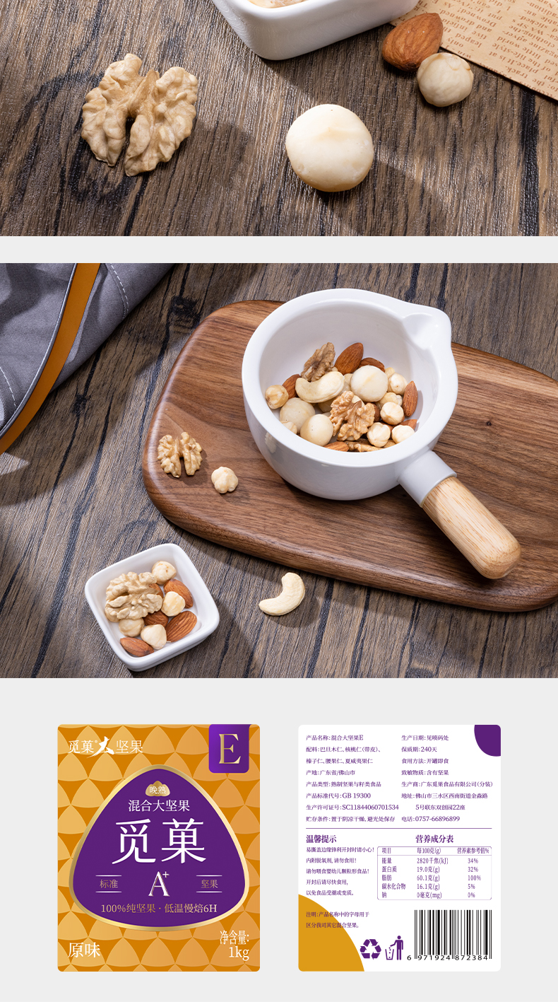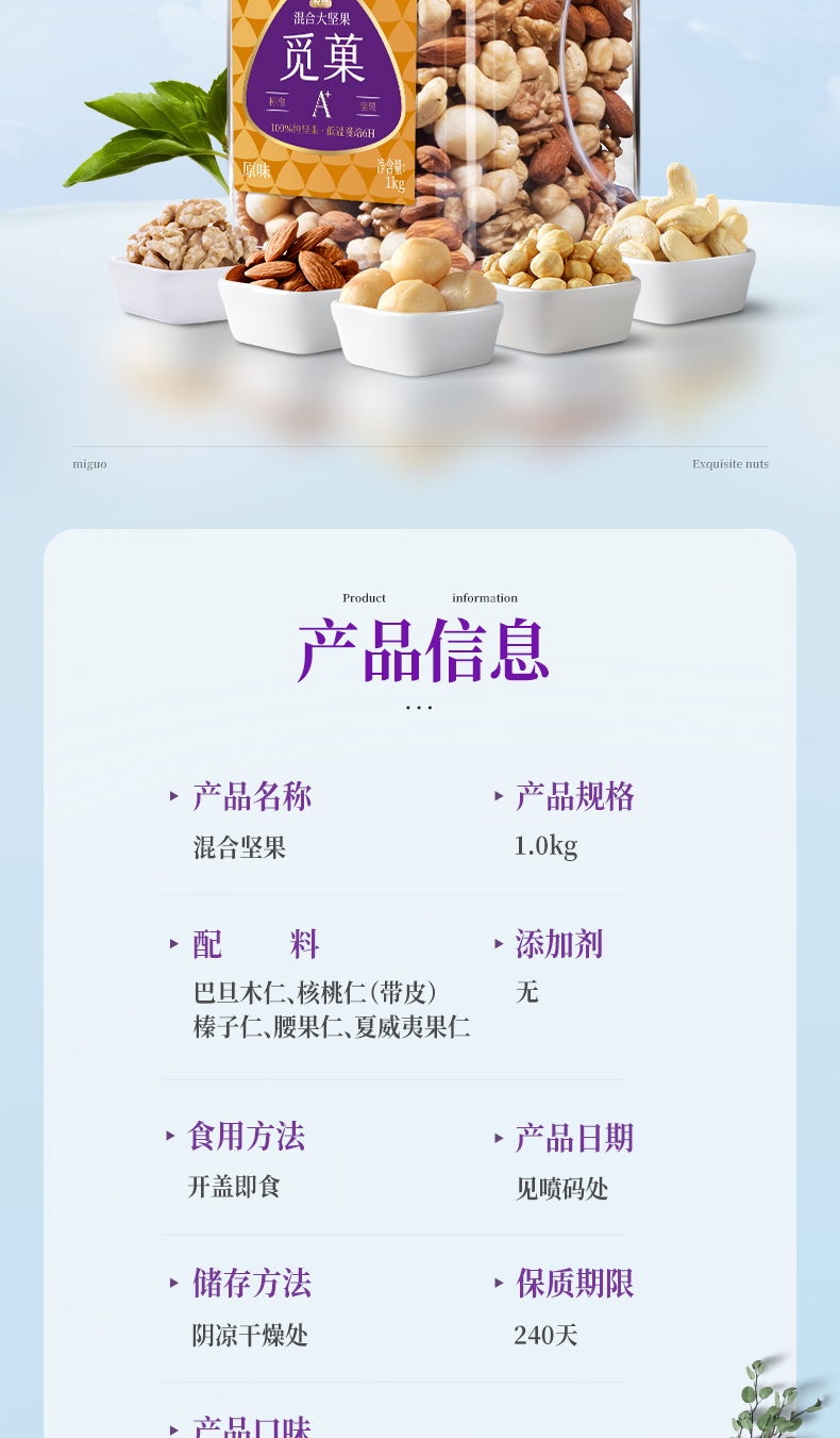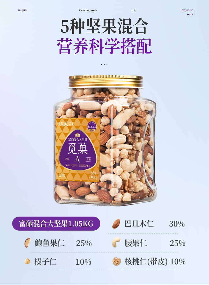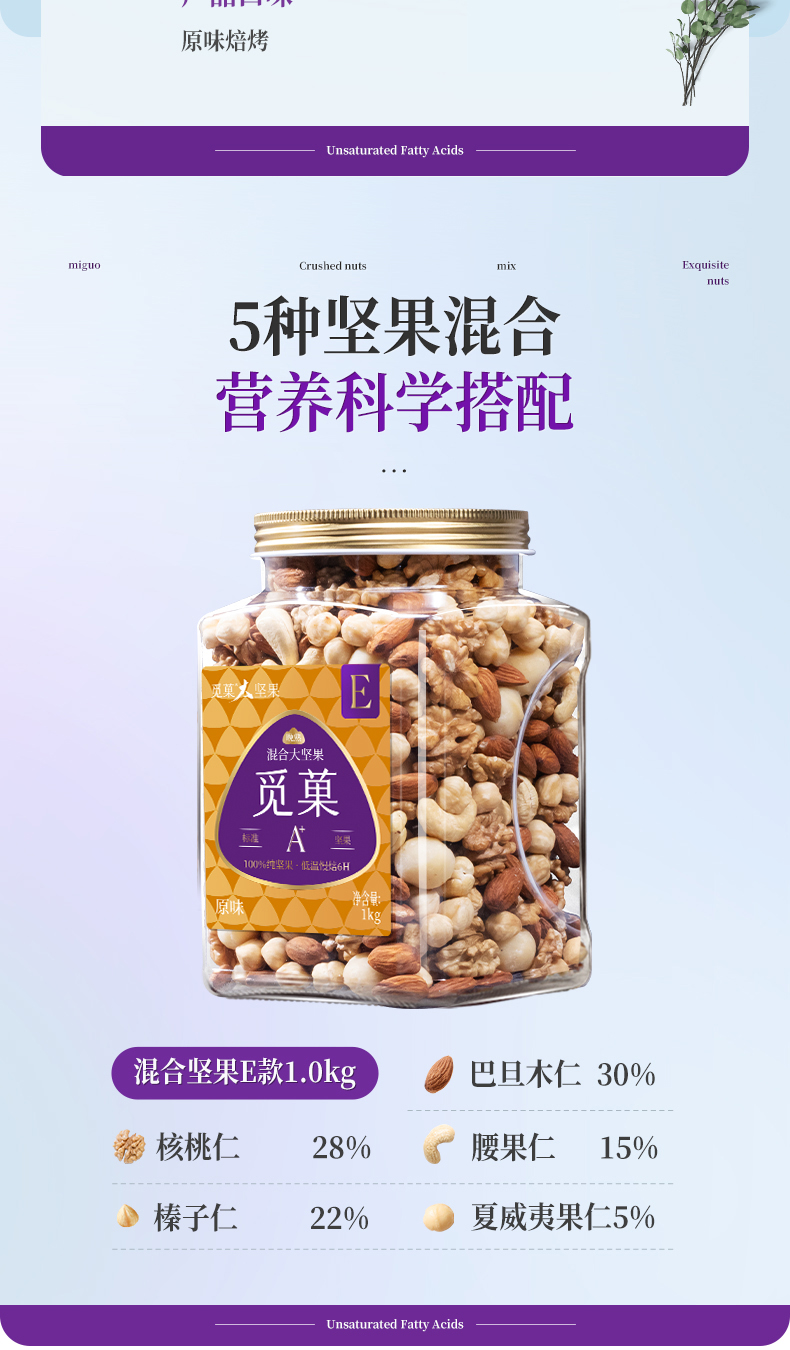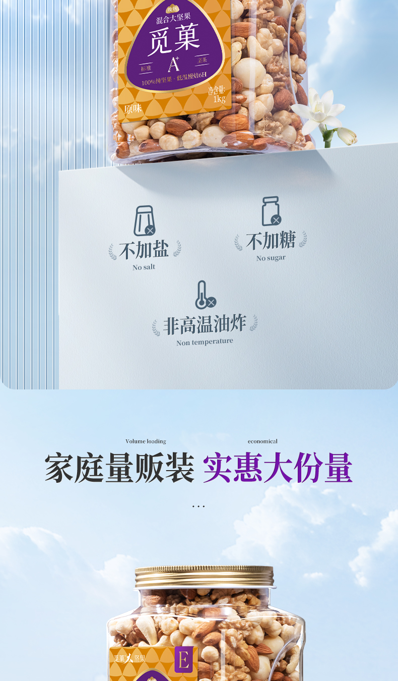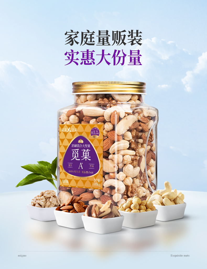 【云优选】觅菓旗舰款量贩装混合纯坚果大颗粒大坚果E款1kg(拆封后不支持7天无理由退货,介意慎拍!)