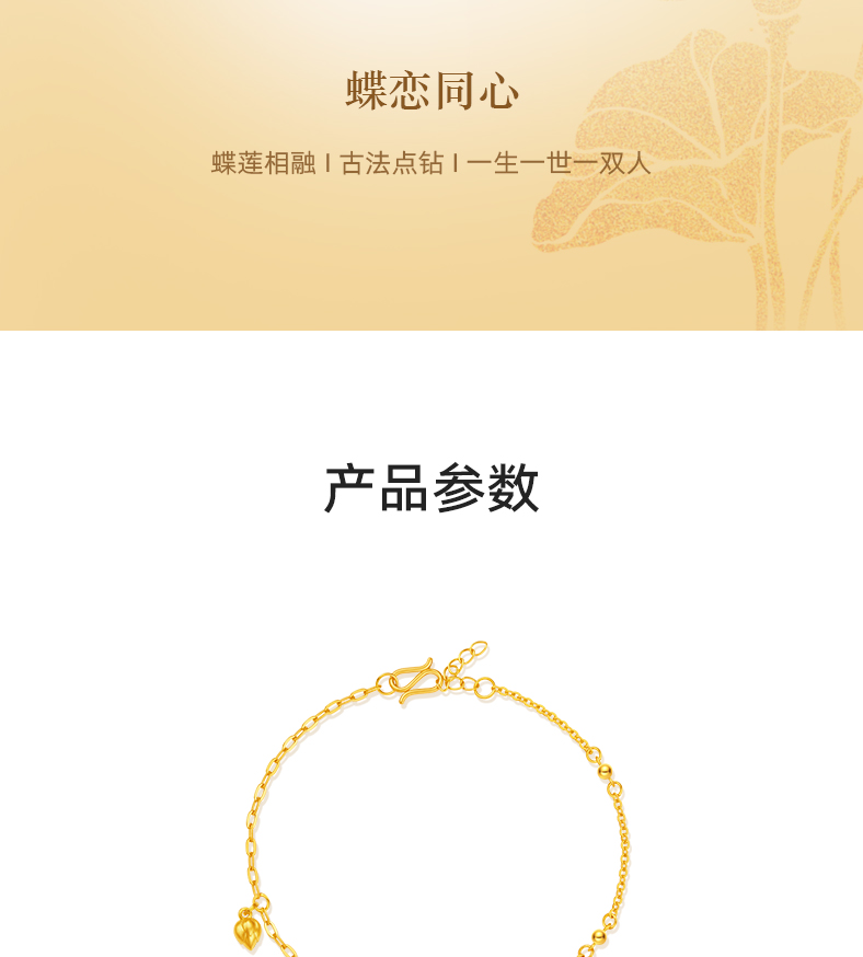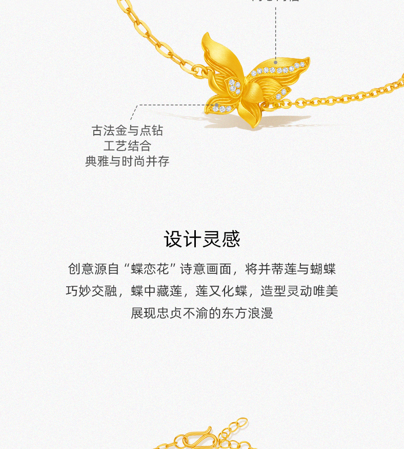 【预售】「美好金」蝶恋同心古法点钻黄金足金蝴蝶手链