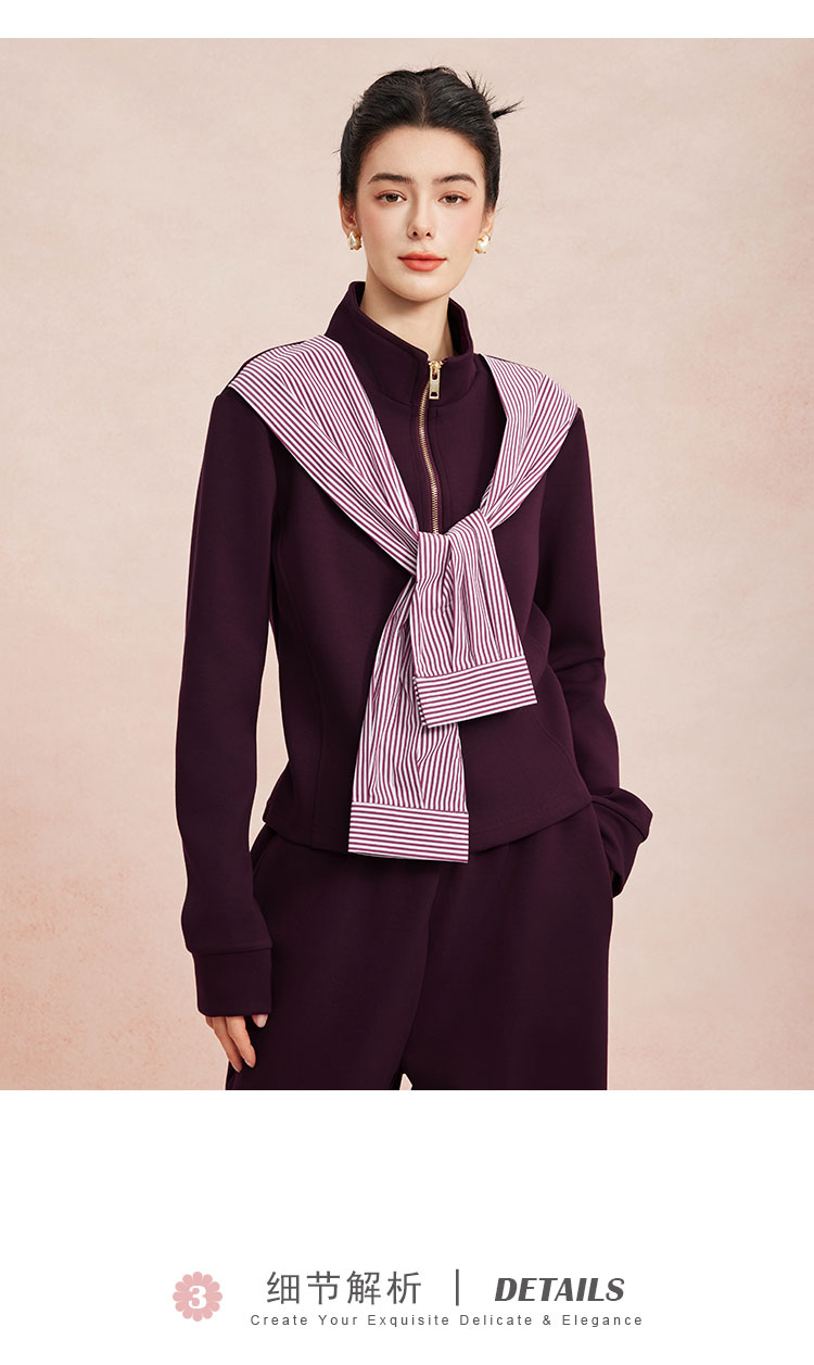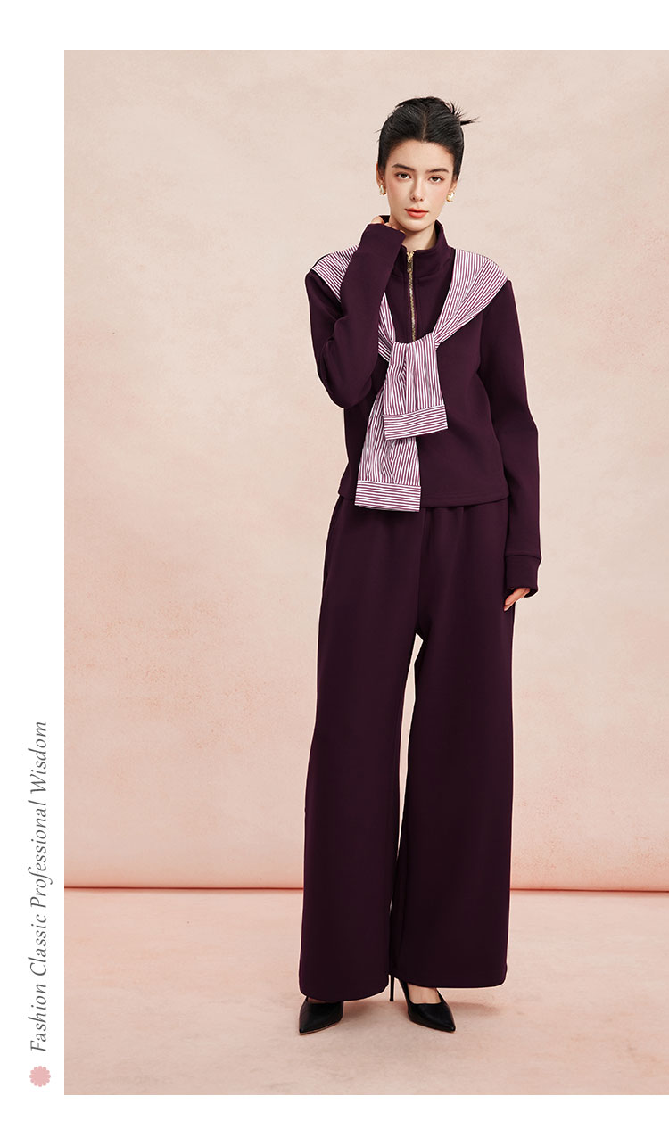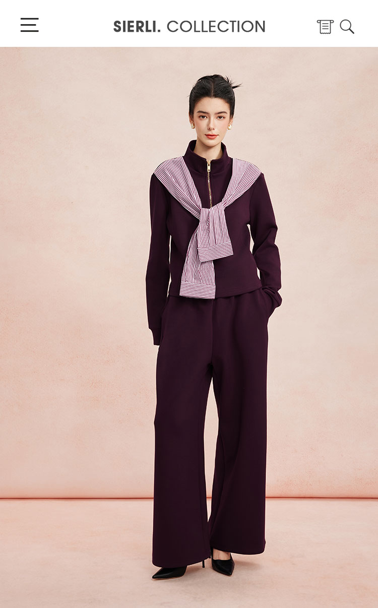RE101斯尔丽26新款休闲时尚舒适好穿套装拉链上衣+直腿裤套装