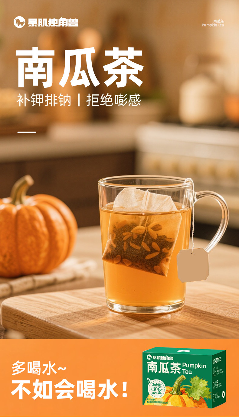 暴肌独角兽南瓜茶消消茶韩女同款控水补钾排钠袋泡茶免煮独立包装