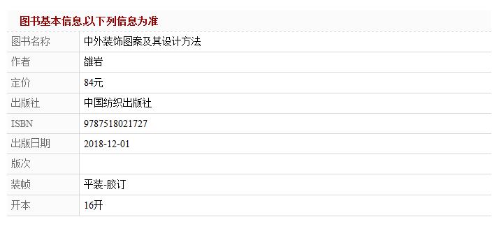 正版包邮 中外装饰图案及其设计方法 9787518021727 中国纺织出版 商品缩略图0