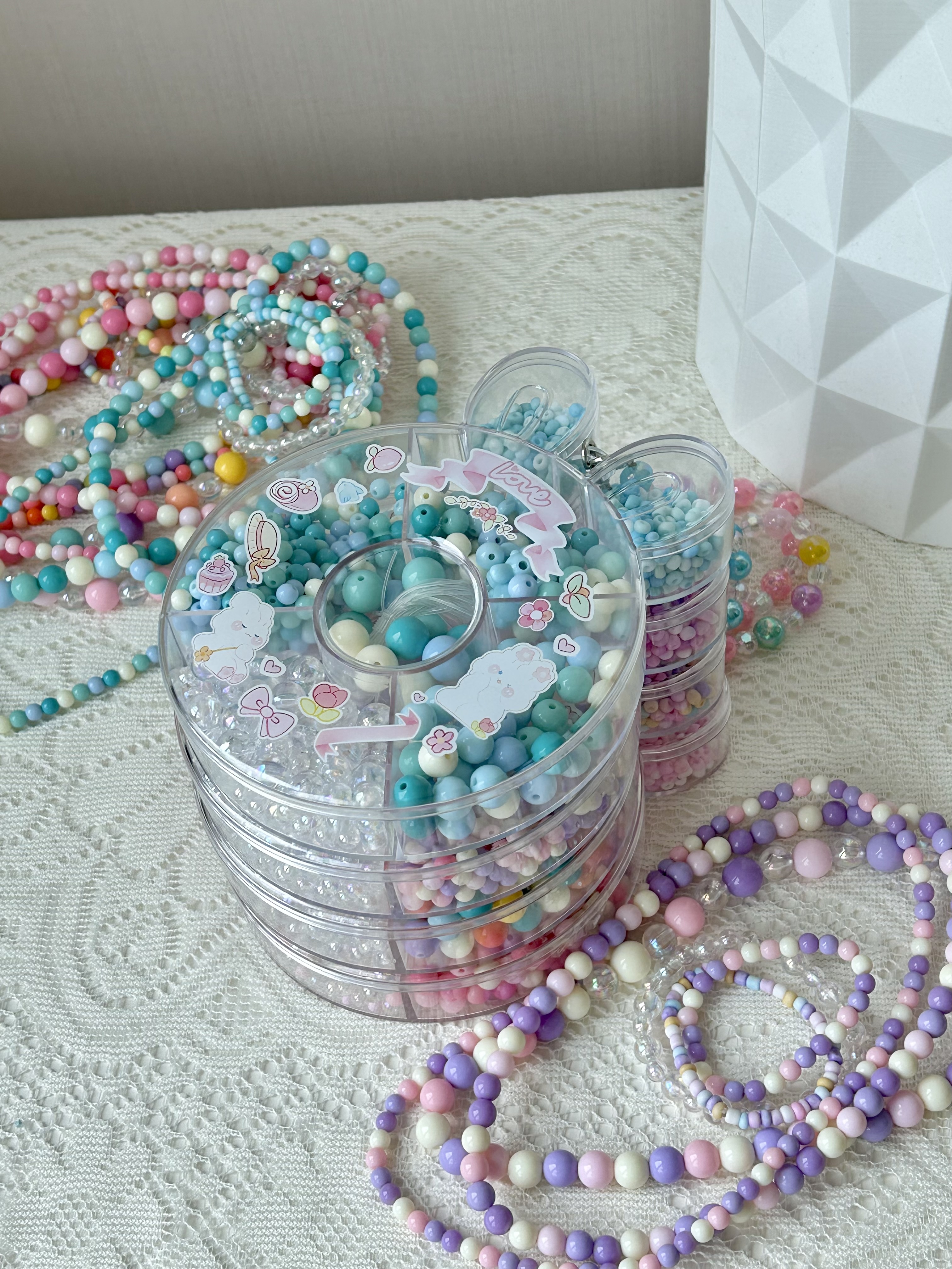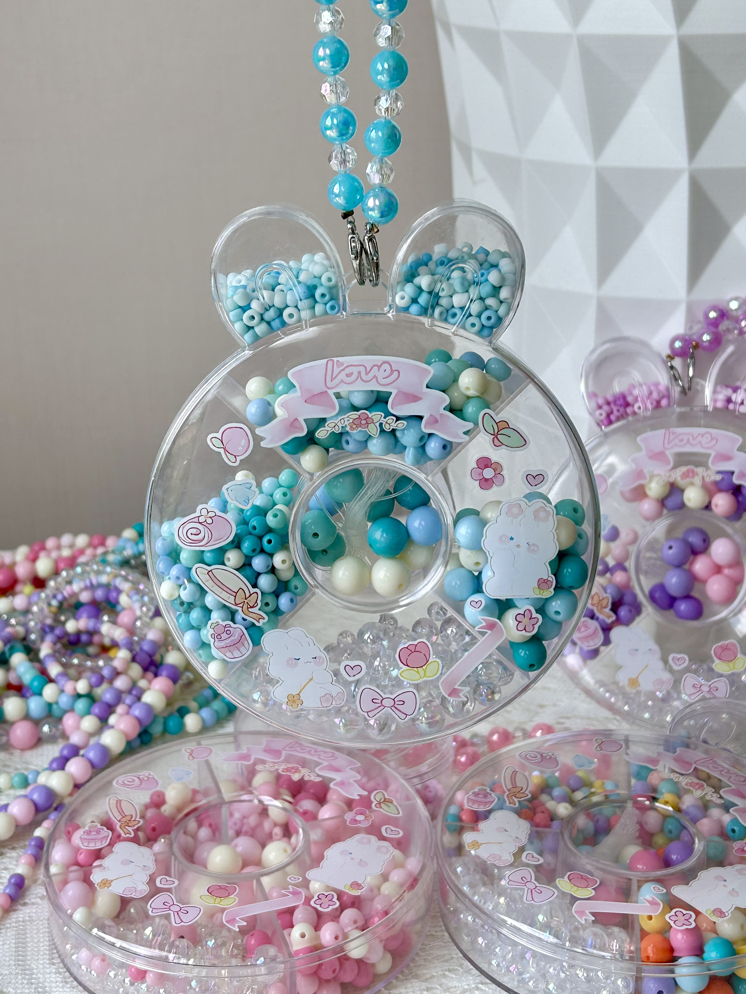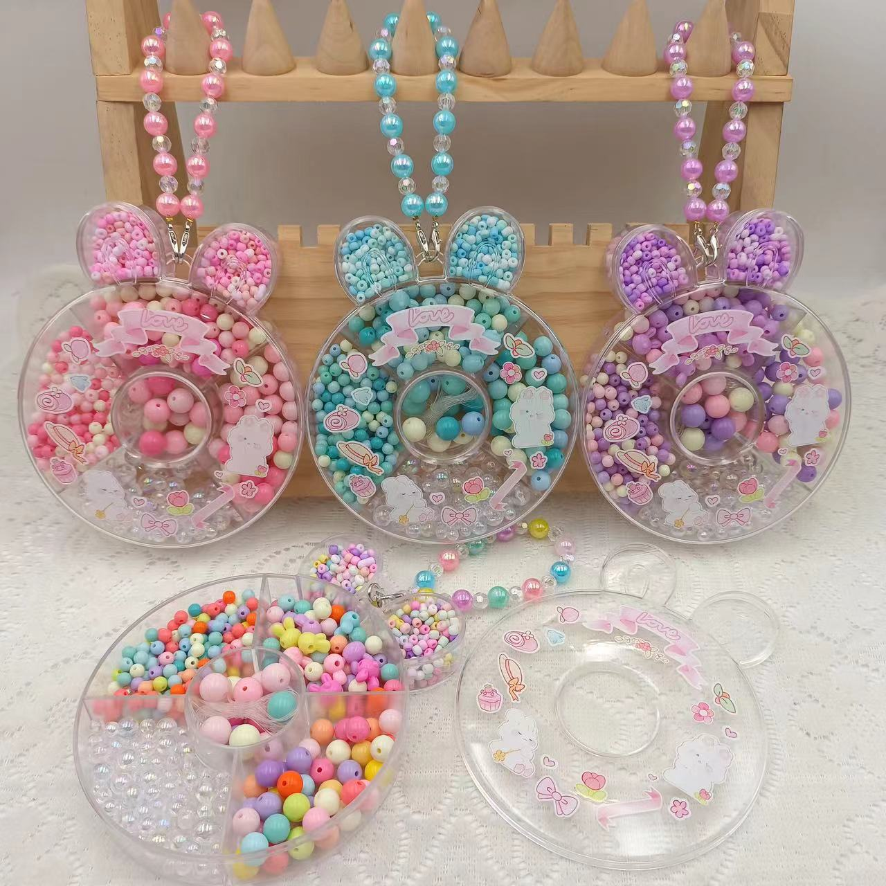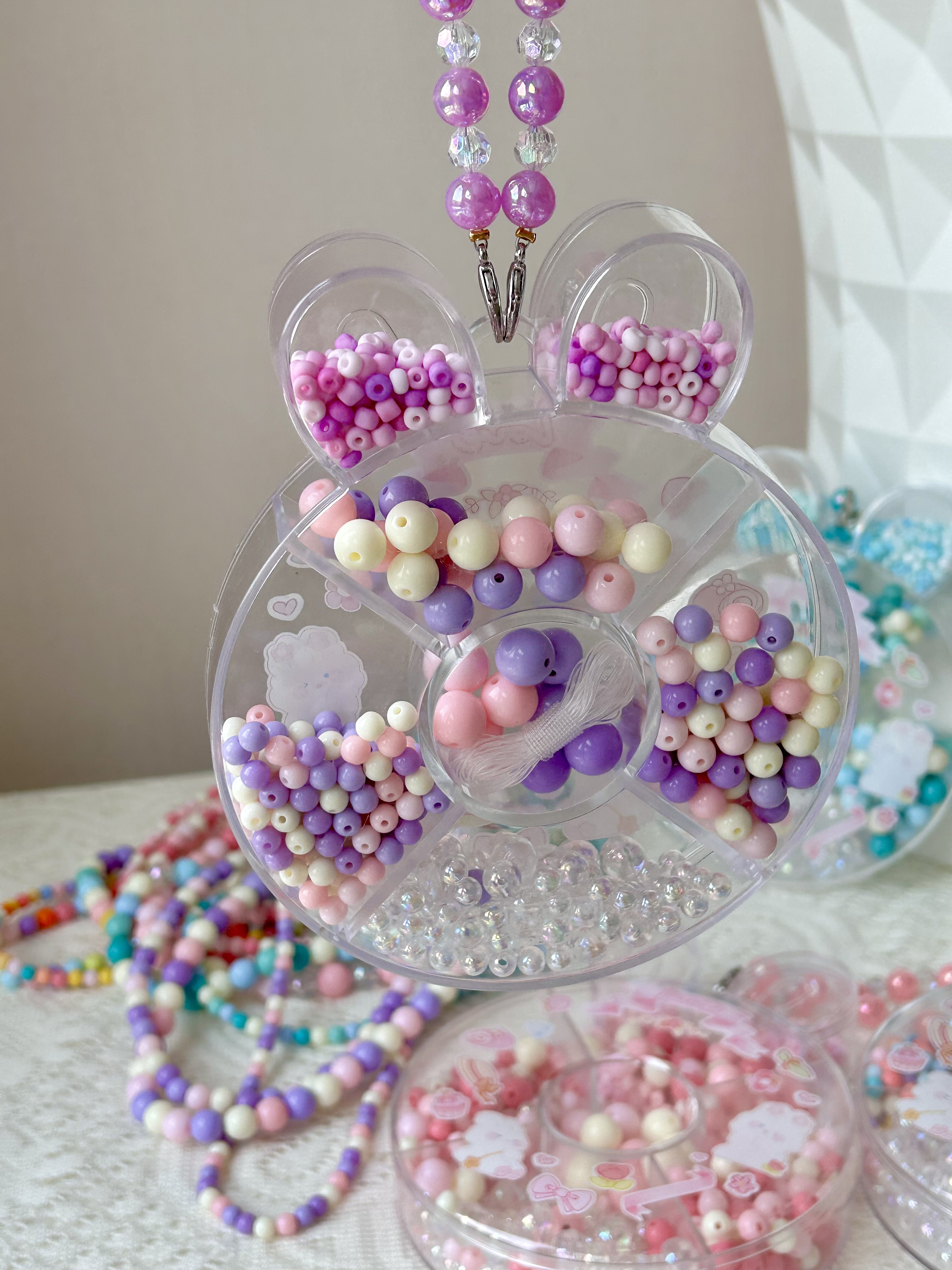 ✅附赠小兔子收纳盒 每种大小形状不同的珠珠 妥帖地安置在自己的区域里 方便拿取、分类! 串完以后还可以用来盛放小物件 从小养成收纳的好习惯 小兔子形状特别可爱🐇 还有手提带,当小包包也不错~