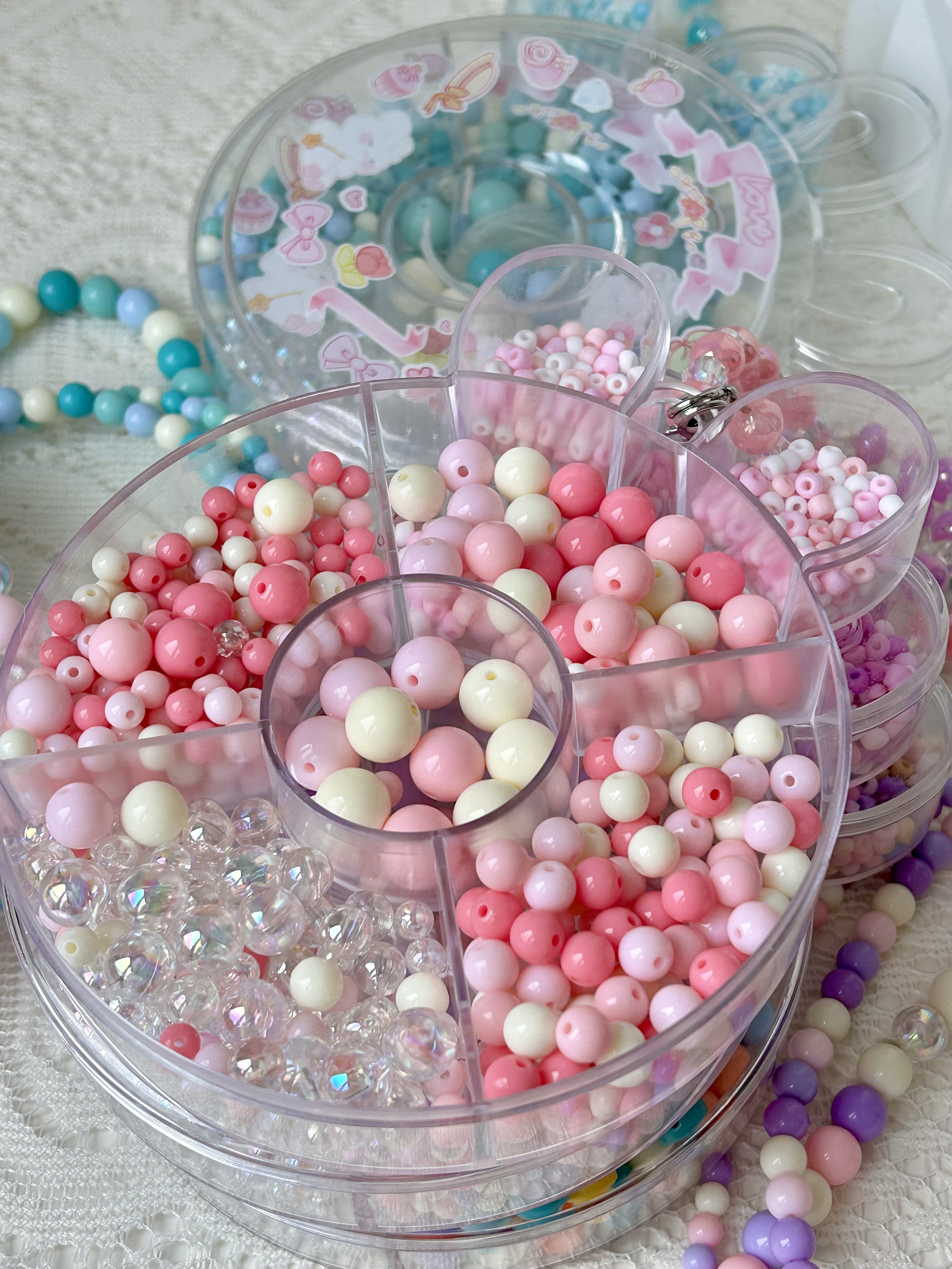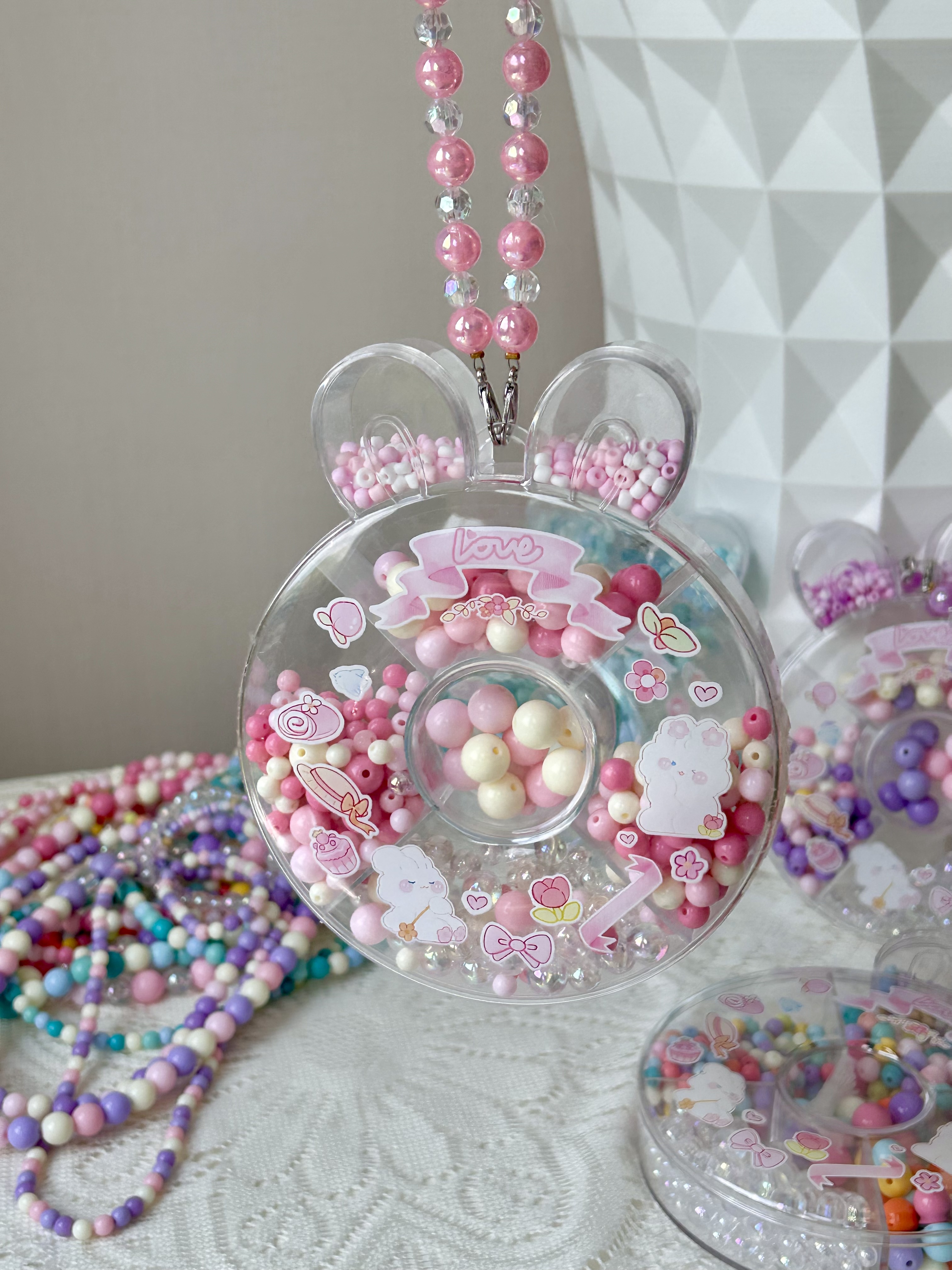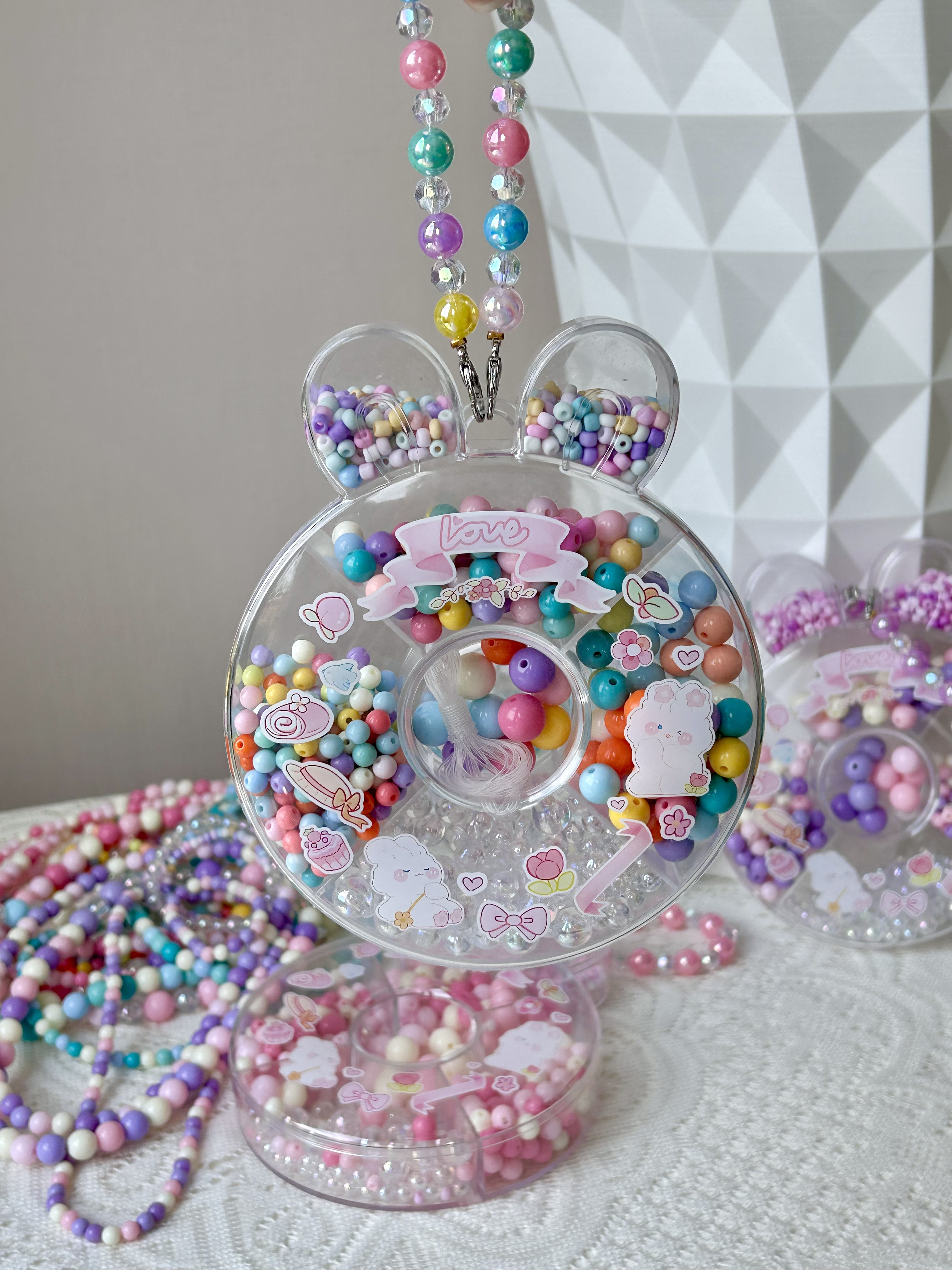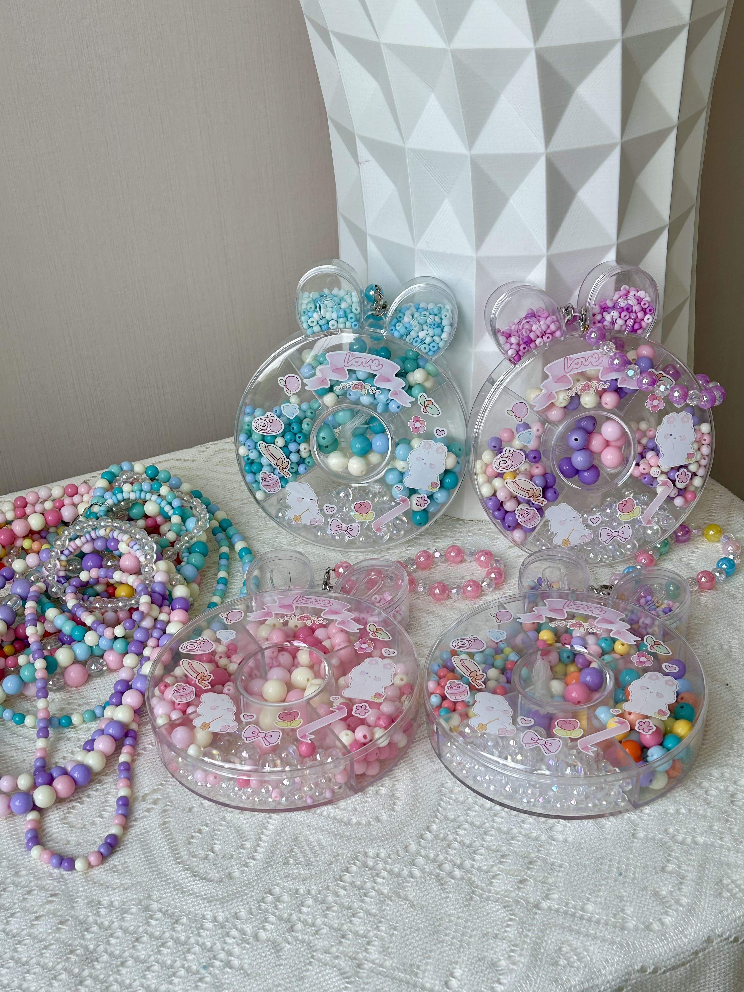✅附赠小兔子收纳盒 每种大小形状不同的珠珠 妥帖地安置在自己的区域里 方便拿取、分类! 串完以后还可以用来盛放小物件 从小养成收纳的好习惯 小兔子形状特别可爱🐇 还有手提带,当小包包也不错~