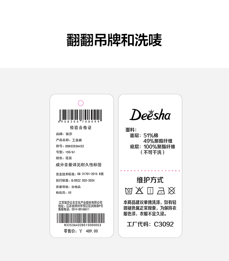 笛莎Deesha青少年女童裤子2025秋季女童时尚工装卫裤