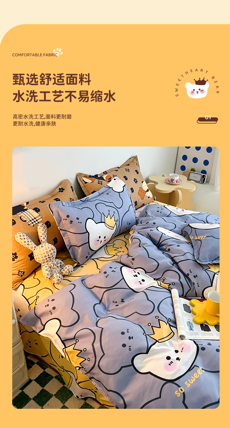 秋季【床单四件套被套】单人学生宿舍三件套 磨毛单件被罩卡通床上用品