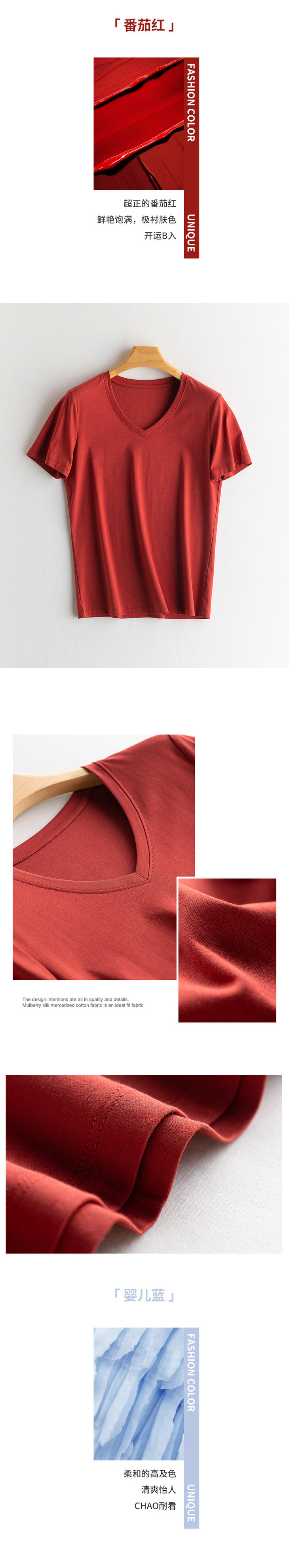 桑蚕丝丝光棉短袖T恤男女款圆领V领简约修身显瘦时尚百搭 轻奢品质