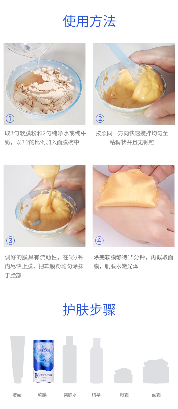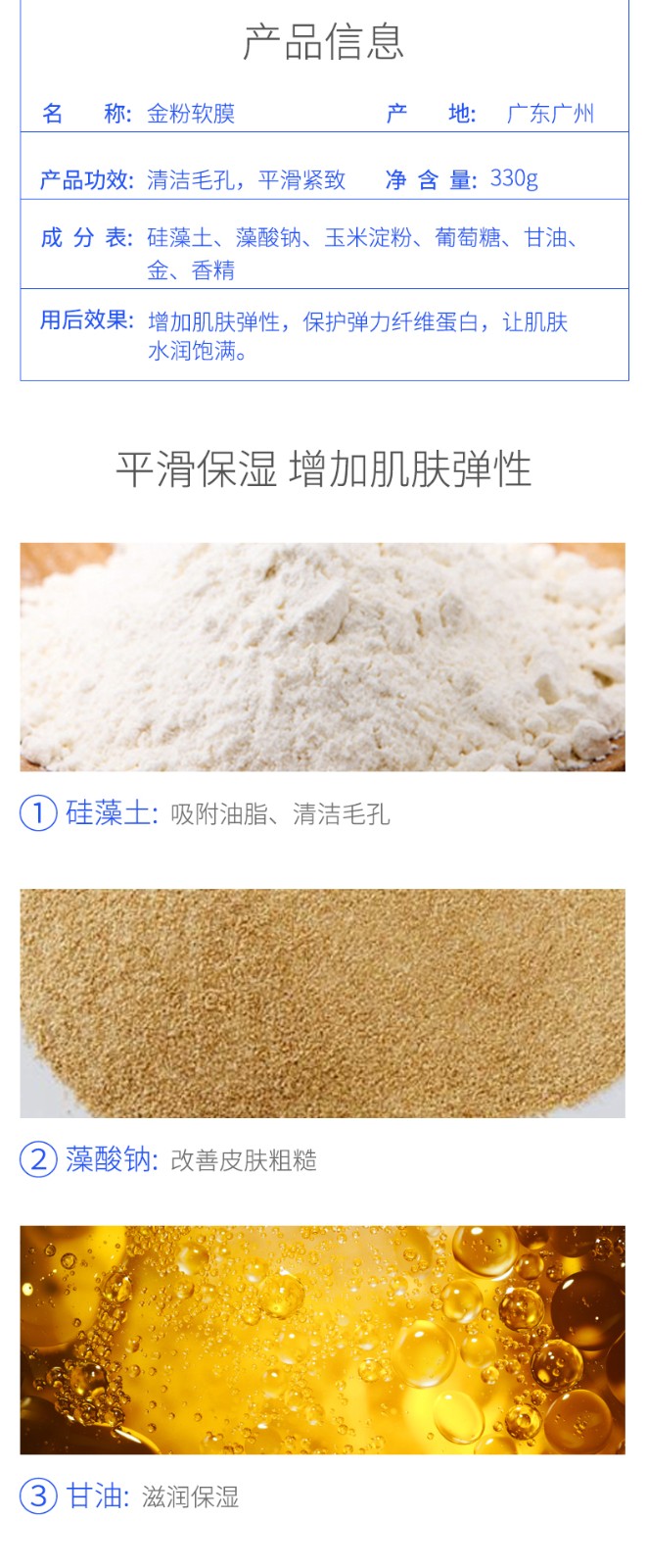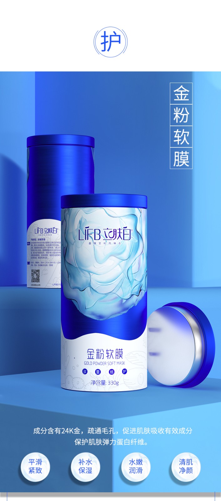 立肤白(LIFB)软膜粉面膜 金粉珍珠面膜粉美容院 补水保湿 疏通毛孔 平衡控油 提亮肤色 提拉紧致