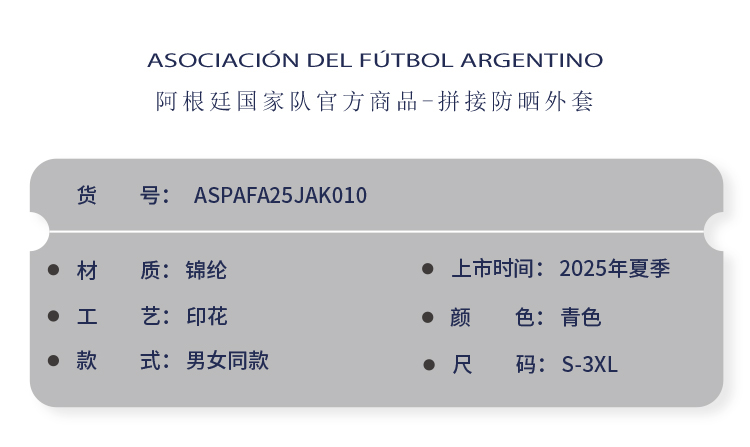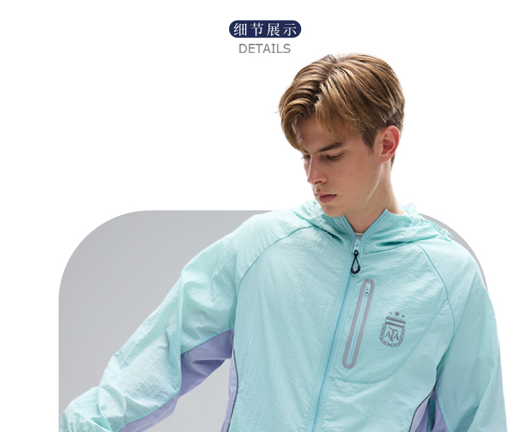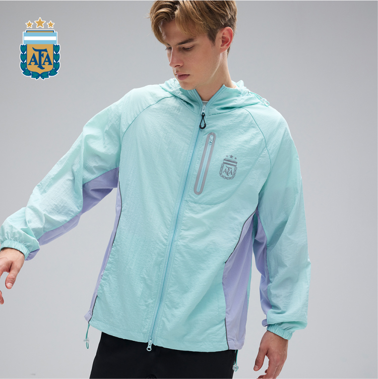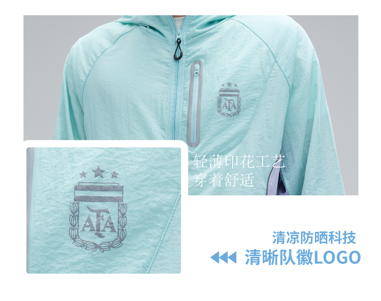 【官方正版】阿根廷国家队 | 青色拼接防晒连帽外套夏日清凉外搭