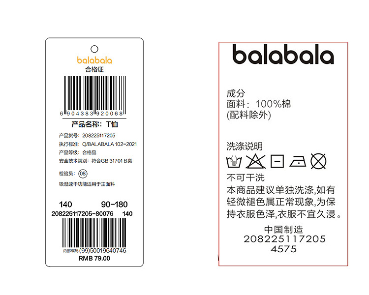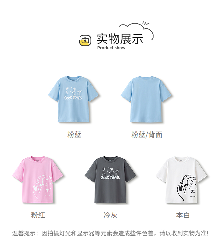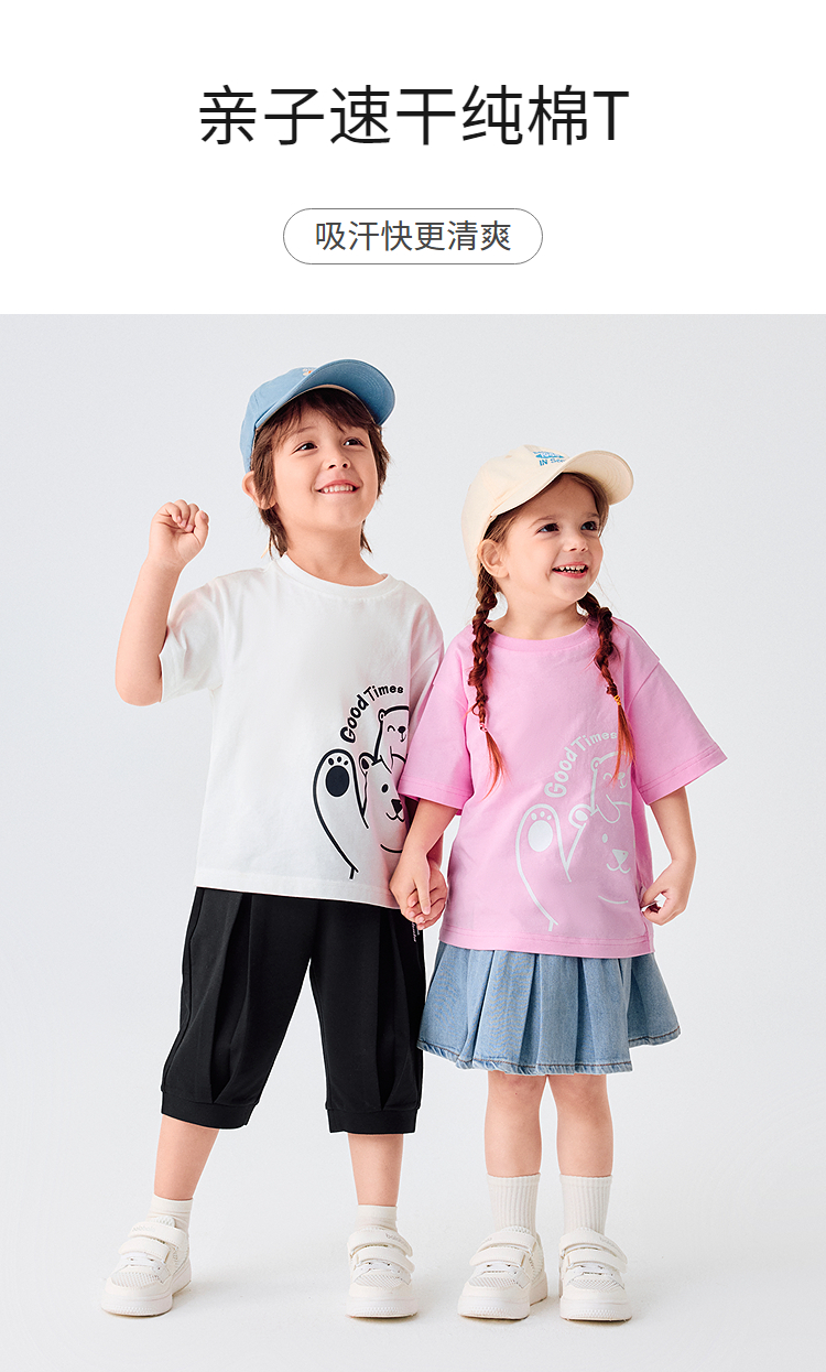 巴拉巴拉儿童短袖T恤男童女童上衣宝宝童装2025款速干夏装亲子款