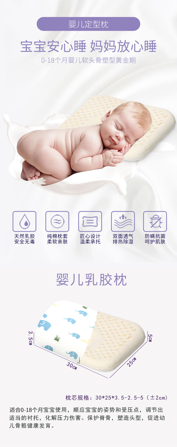 【授权商品】Uoolatex犹拉缇天然乳胶婴儿定型枕泰国宝宝护头部0-1.5周岁U7