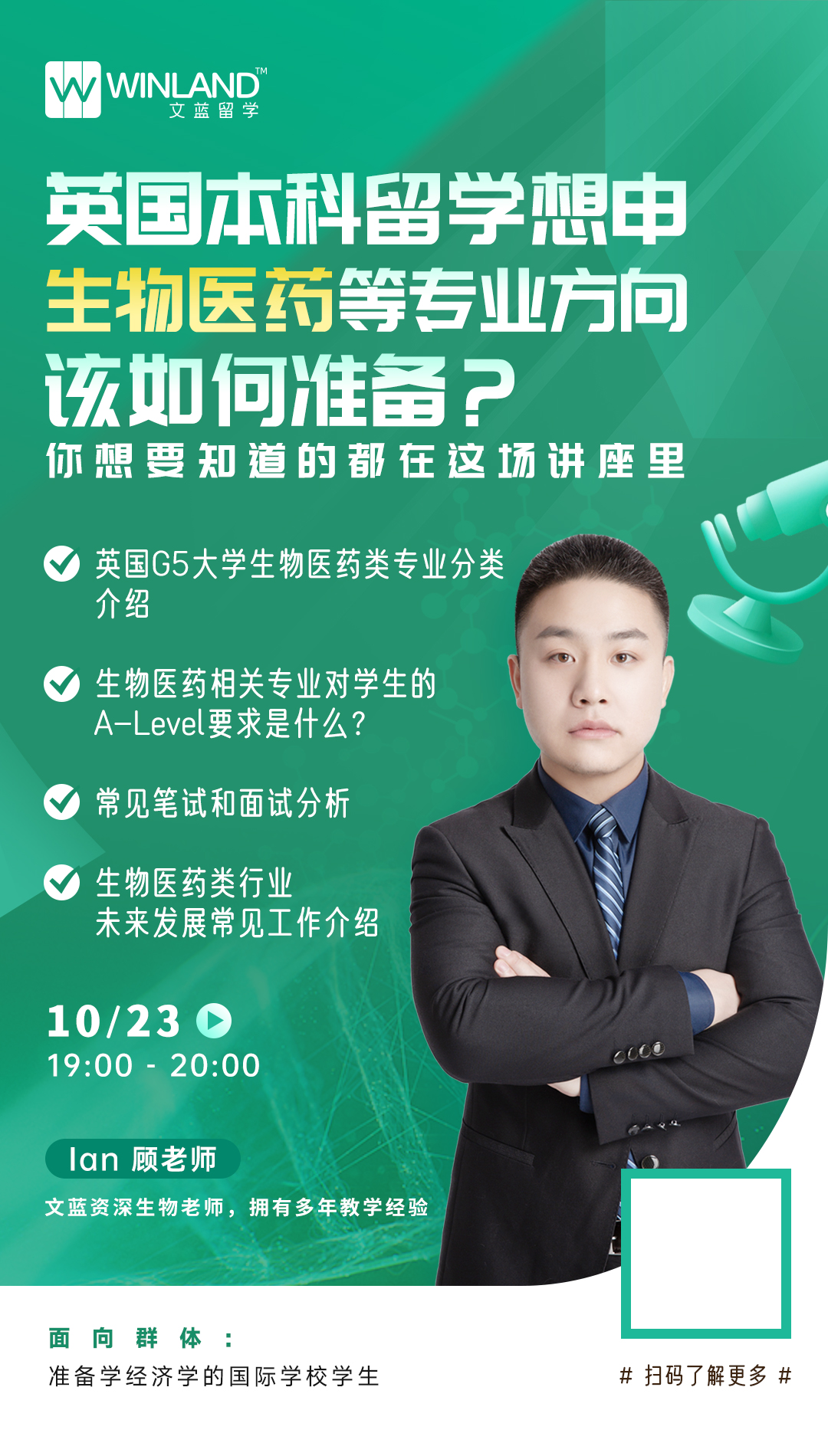 10.23英国本科留学想申生物医药等专业方向该如何准备? 你想要知道的都在这场讲座里