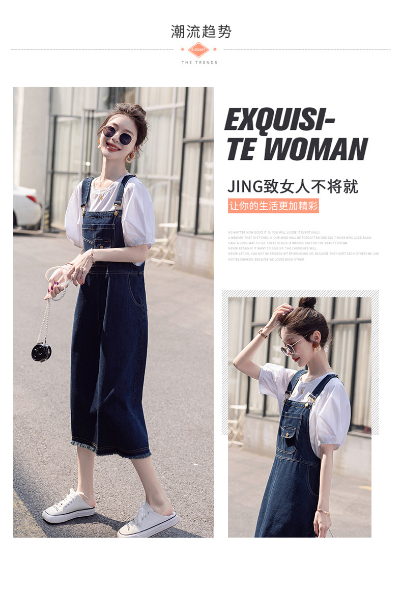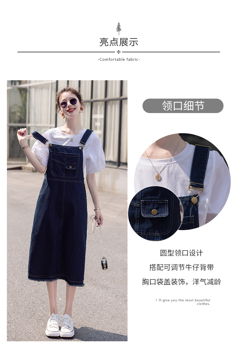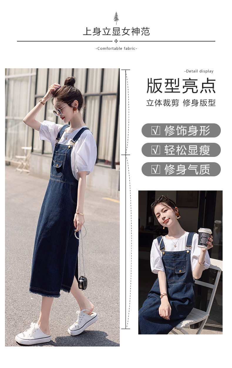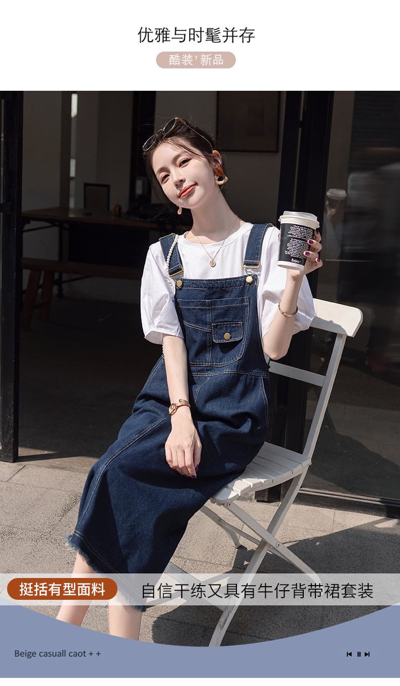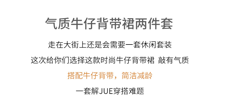 洋气时髦短袖两件套,牛仔背带裙套装HR-2802