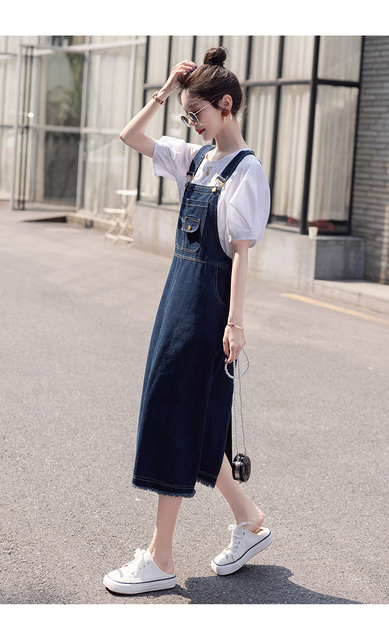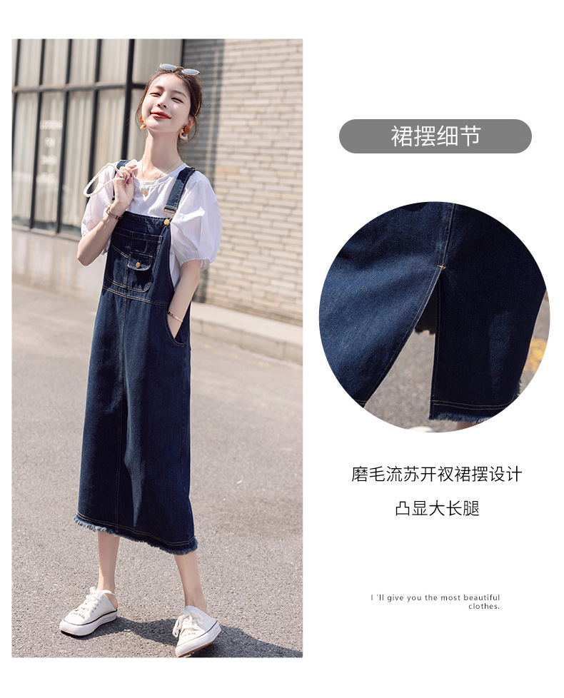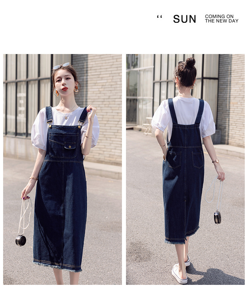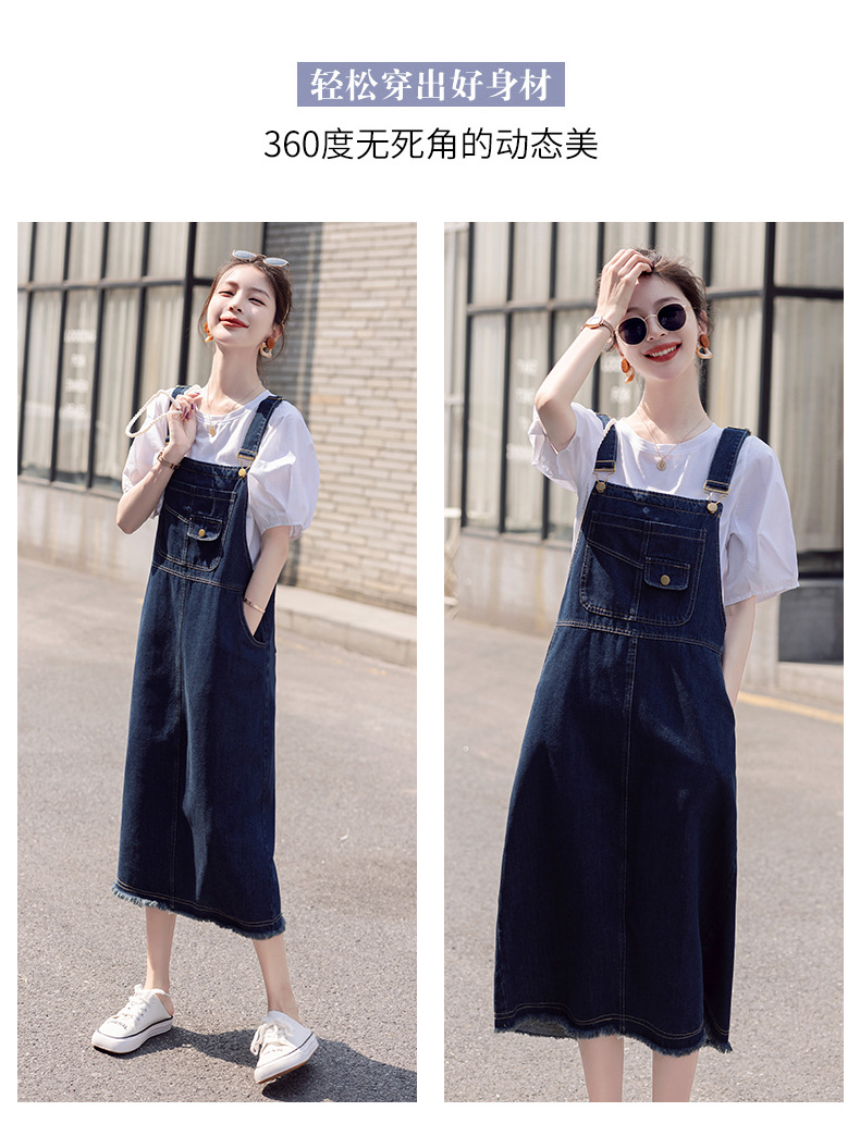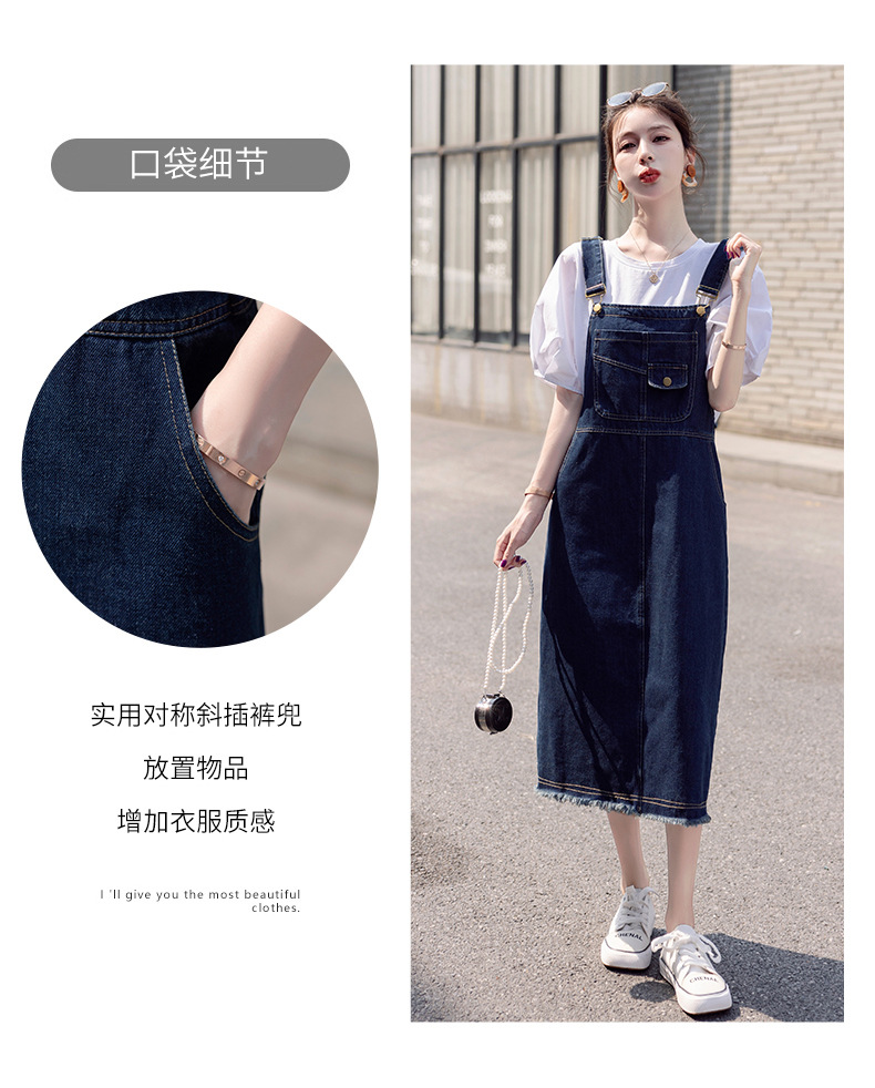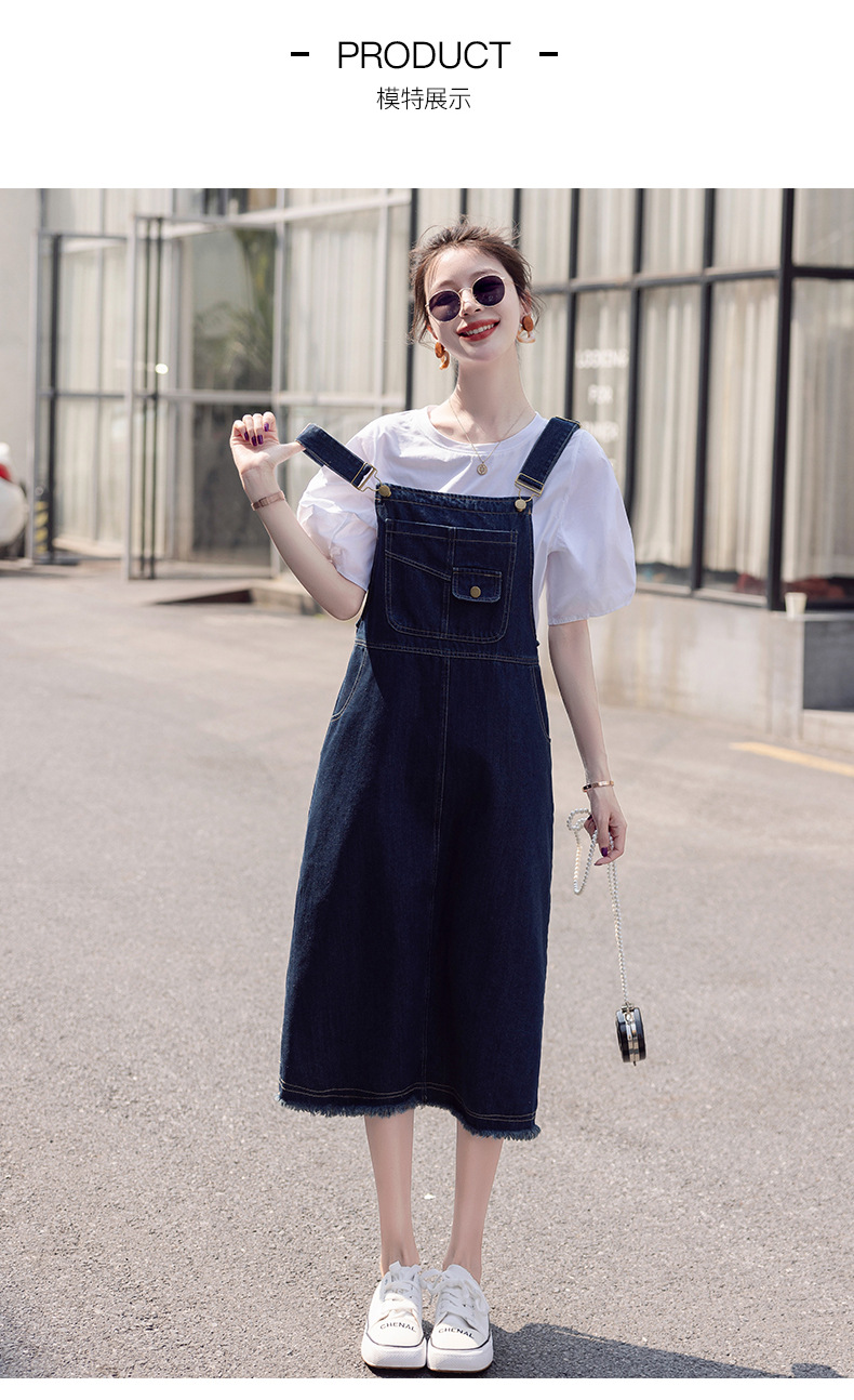 洋气时髦短袖两件套,牛仔背带裙套装HR-2802