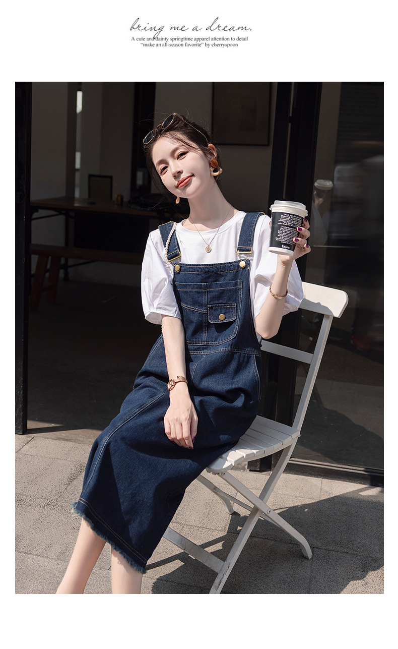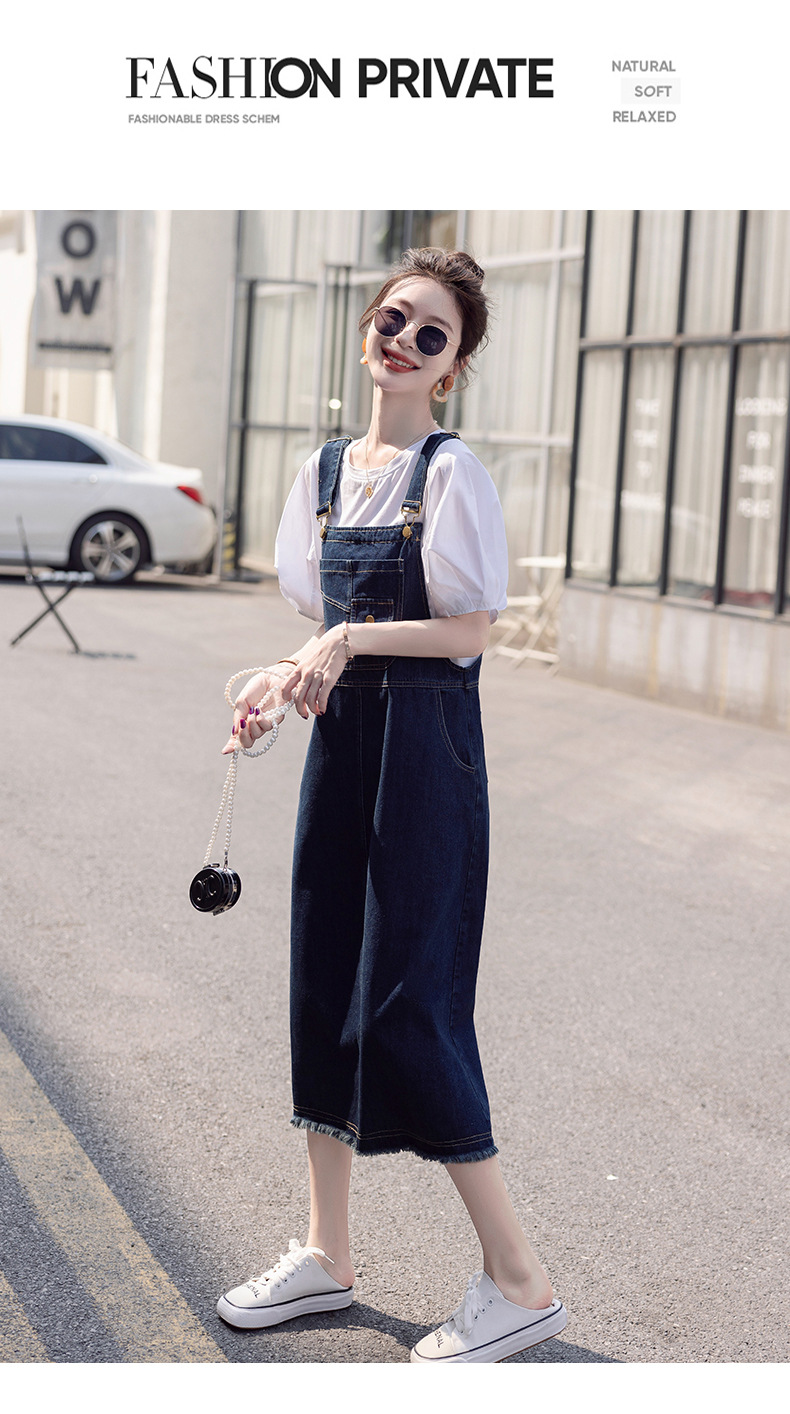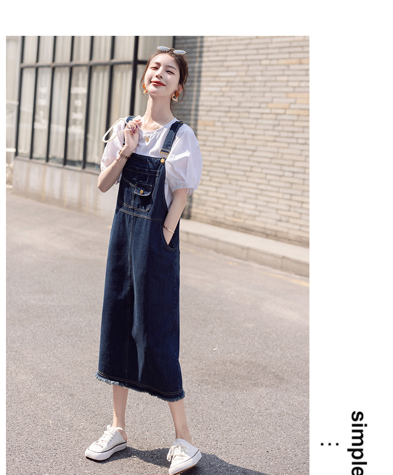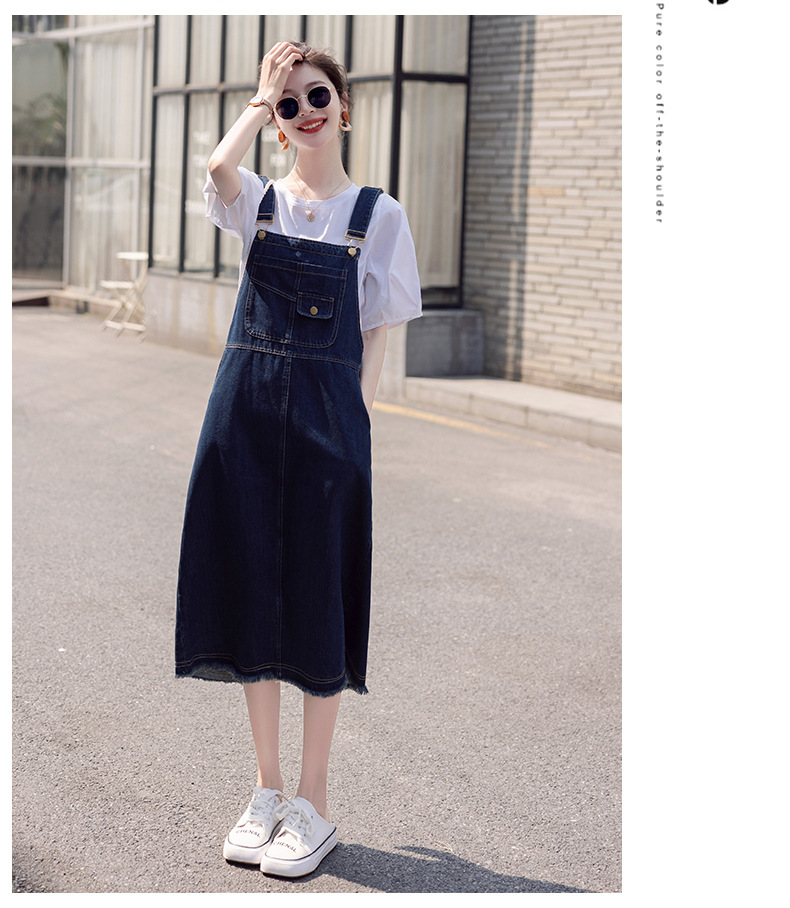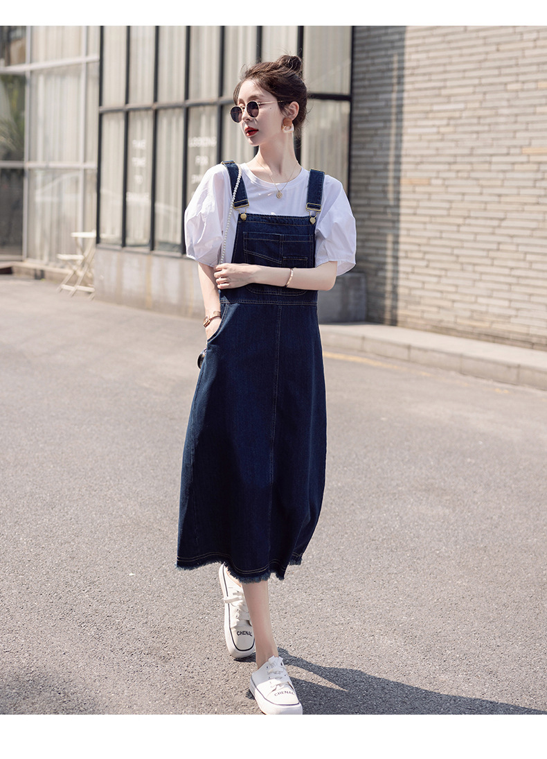 洋气时髦短袖两件套,牛仔背带裙套装HR-2802