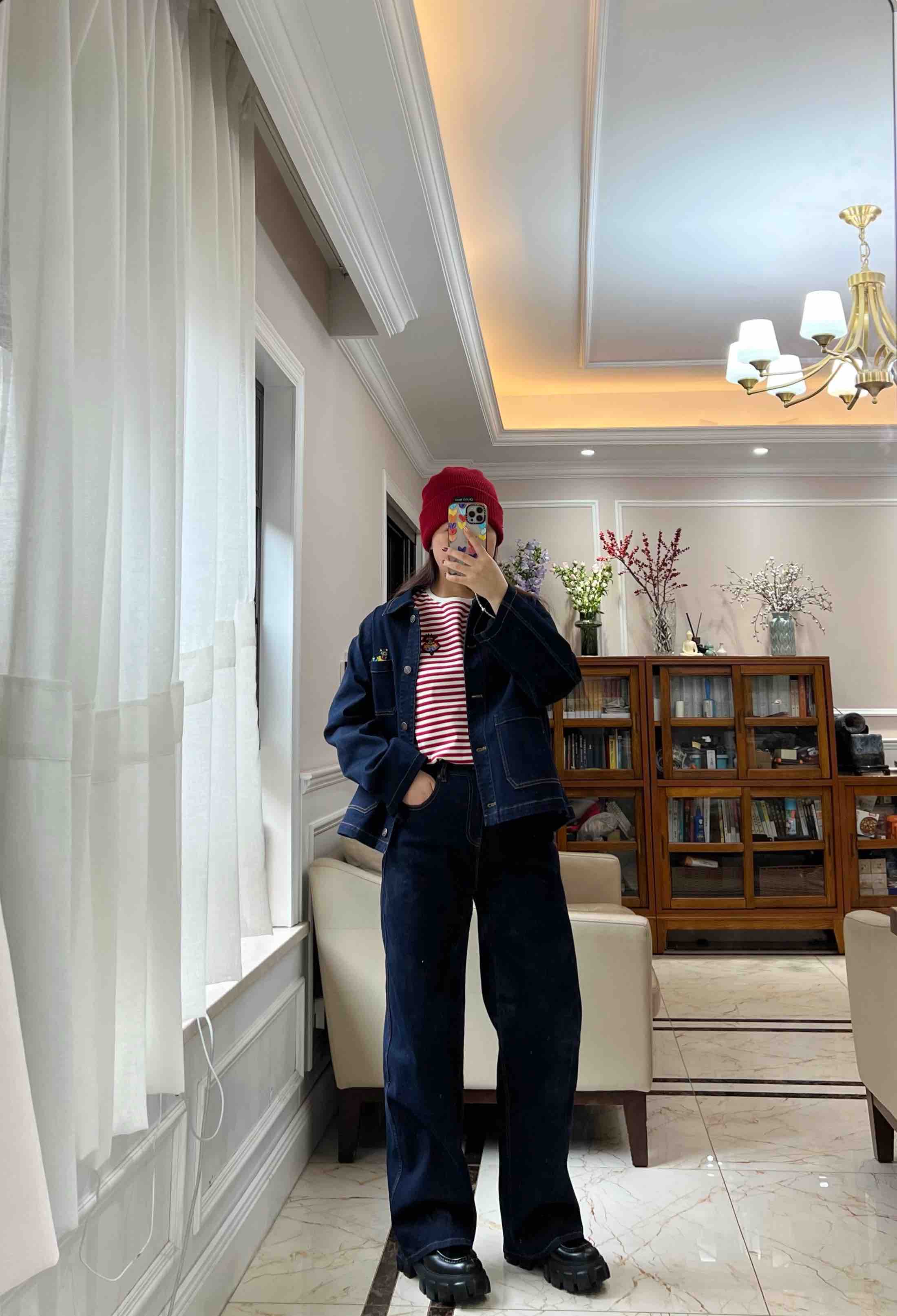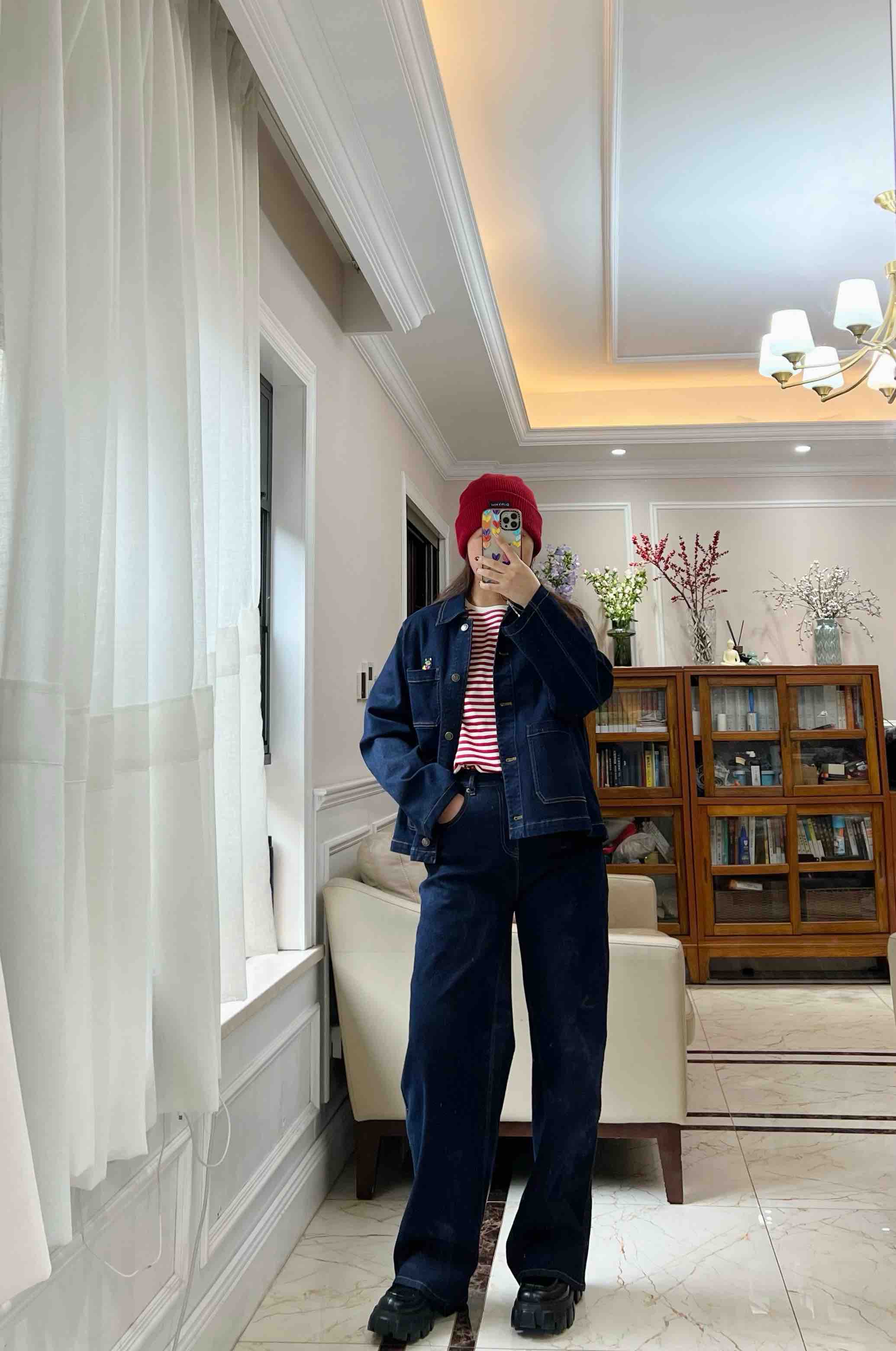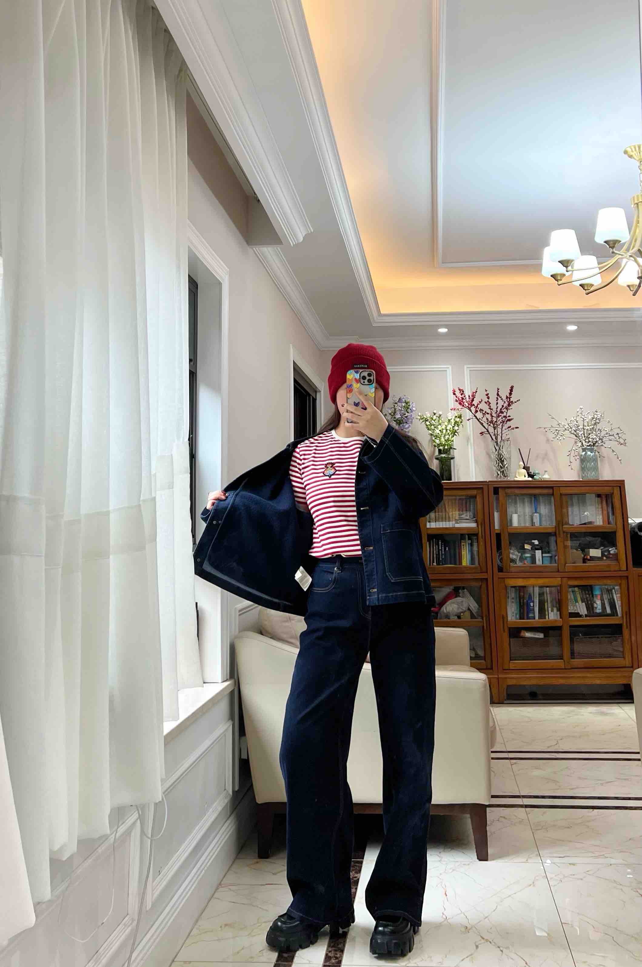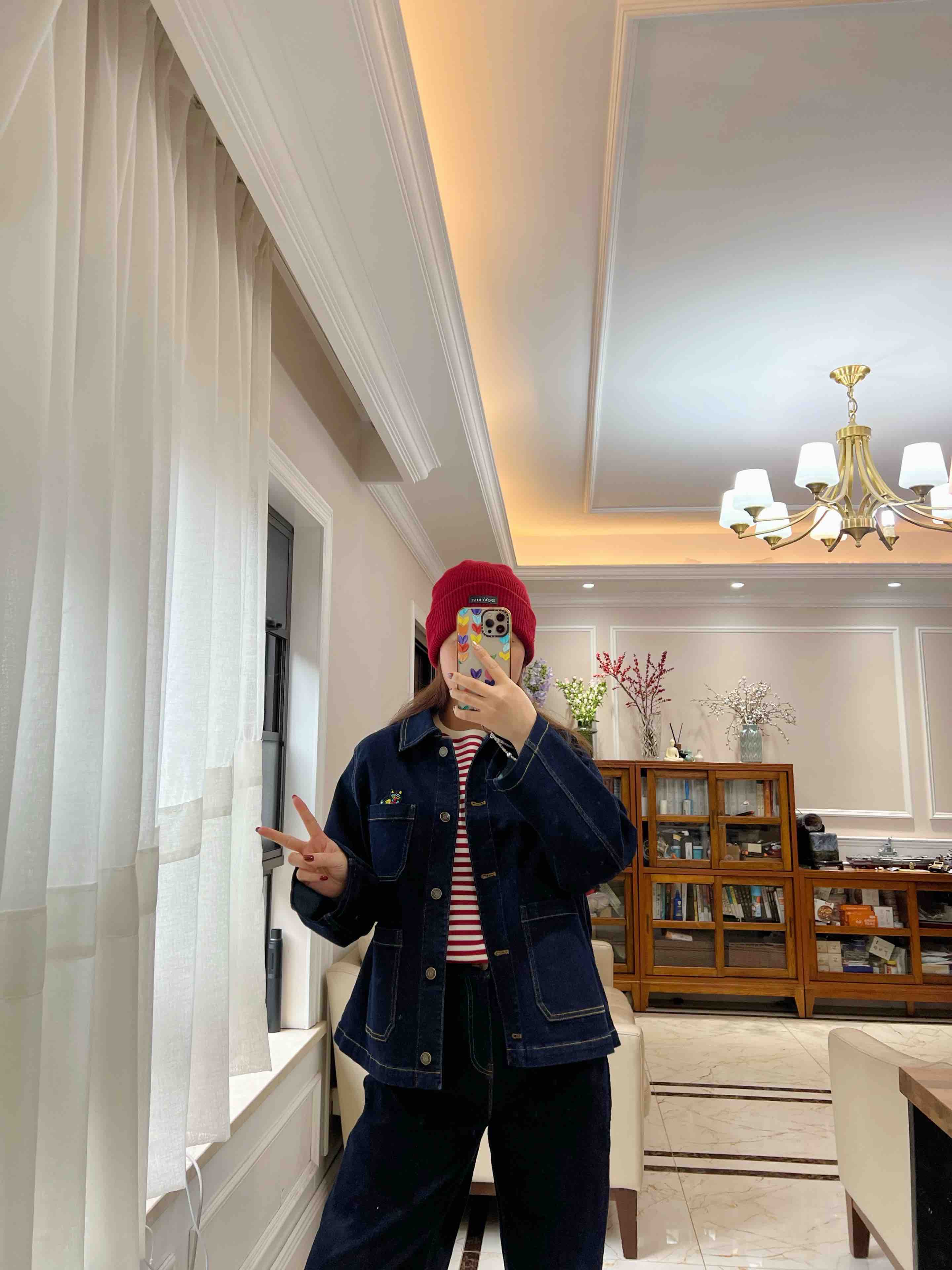 水柔棉针织面料,摸上去就是相当的丝光,柔滑,细腻,自带光泽,你们看这个做工,后领防水洗变形的贴布,条纹都是严格对齐,下摆的收针袖口的收针,非常的细致。招财猫,喵喵喵,就像小时候棉鞋上绣的图案了。