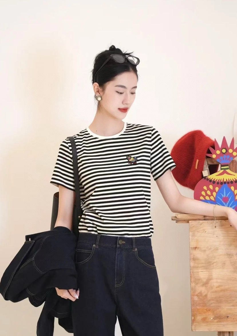 满分💯推荐, 条纹合体版型T恤,轻松舒适日常基础穿搭刚需。