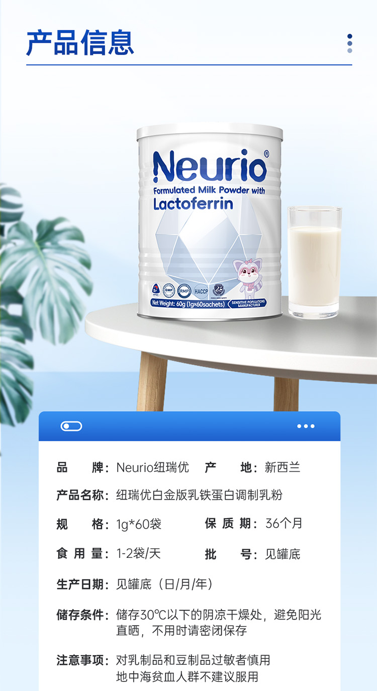 【大促专供】纽瑞优白金版乳铁蛋白调制乳粉