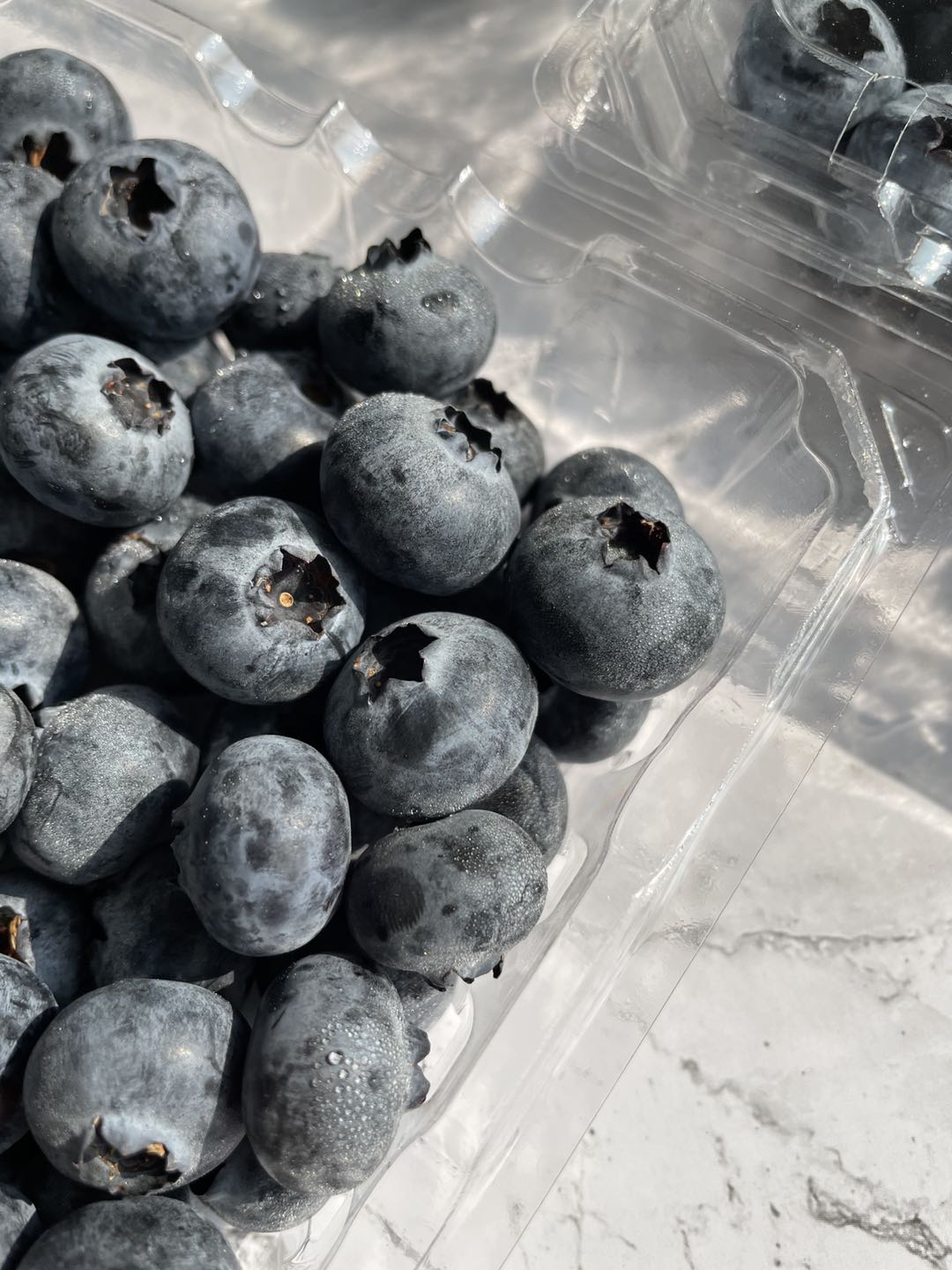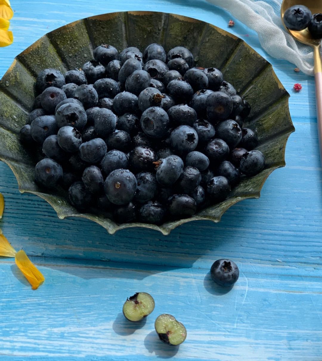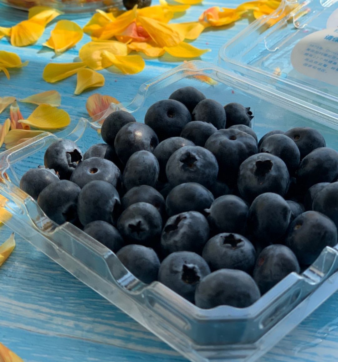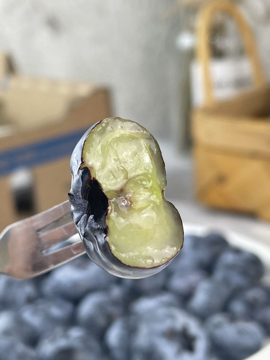 蓝莓饱满多汁,被白色果粉包裹,果肉细腻,口口爆浆。