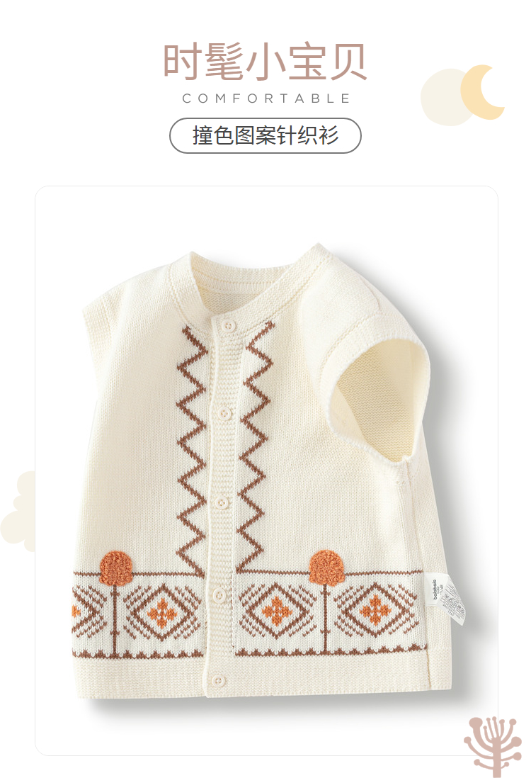 巴拉巴拉宝宝童装针织马甲婴儿男童坎肩背心撞色提花时尚气质潮流