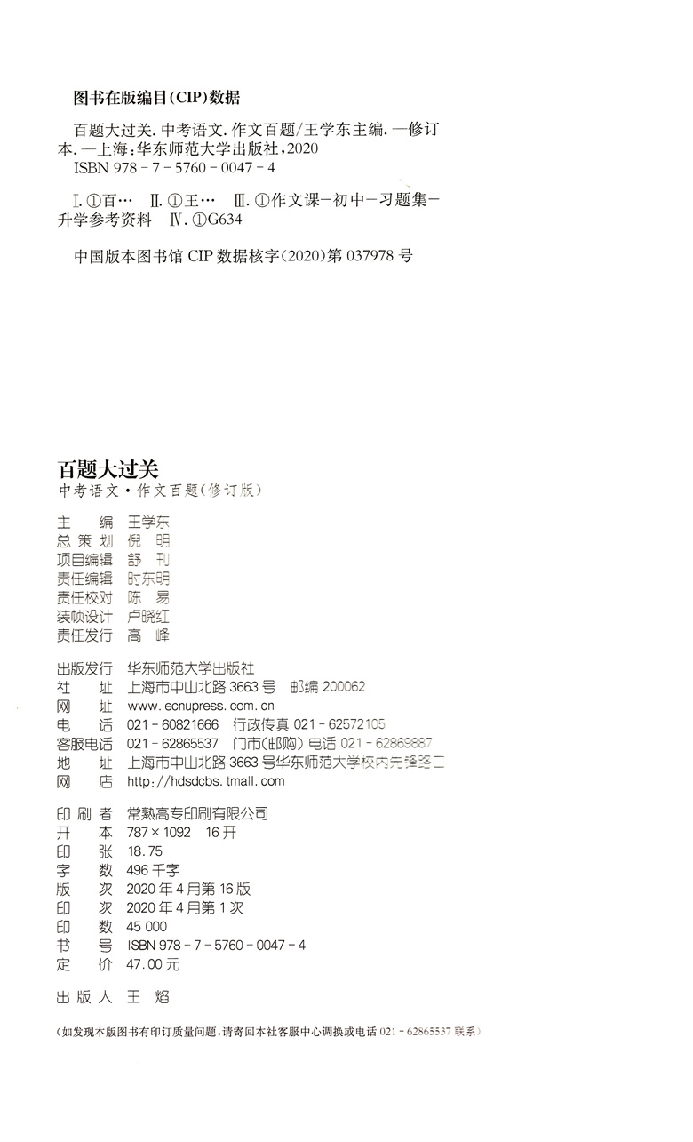 2021新版 百题大过关 中考语文作文百题 修订版 备考冲刺复习教辅图书中考语文语辅导资料
