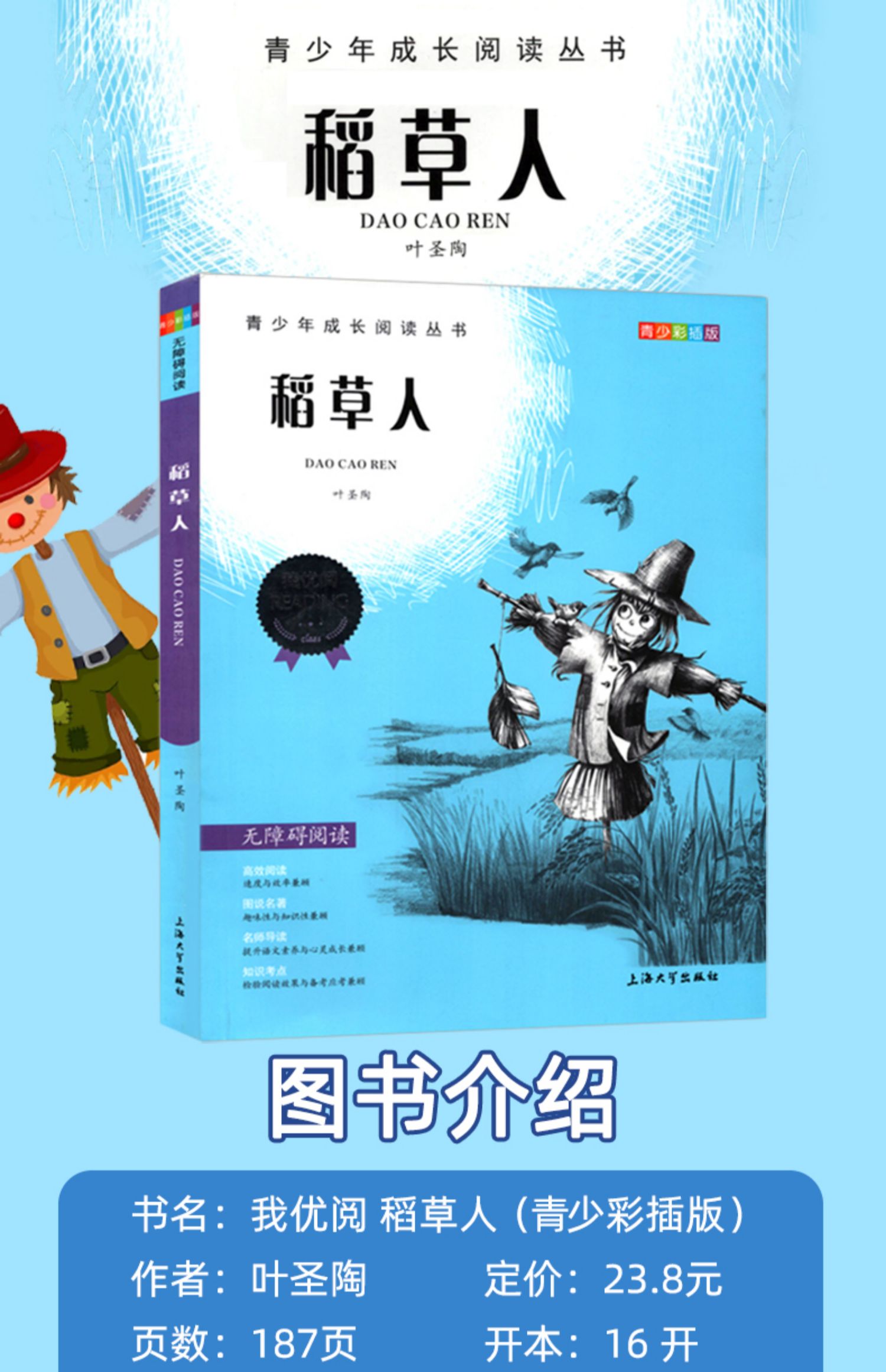 稻草人书叶圣陶正版三年级课外阅读书籍人教通用我优阅青少彩插版儿童文学童话故事书小学生四五六年级语文无障碍推荐经典名著丛书