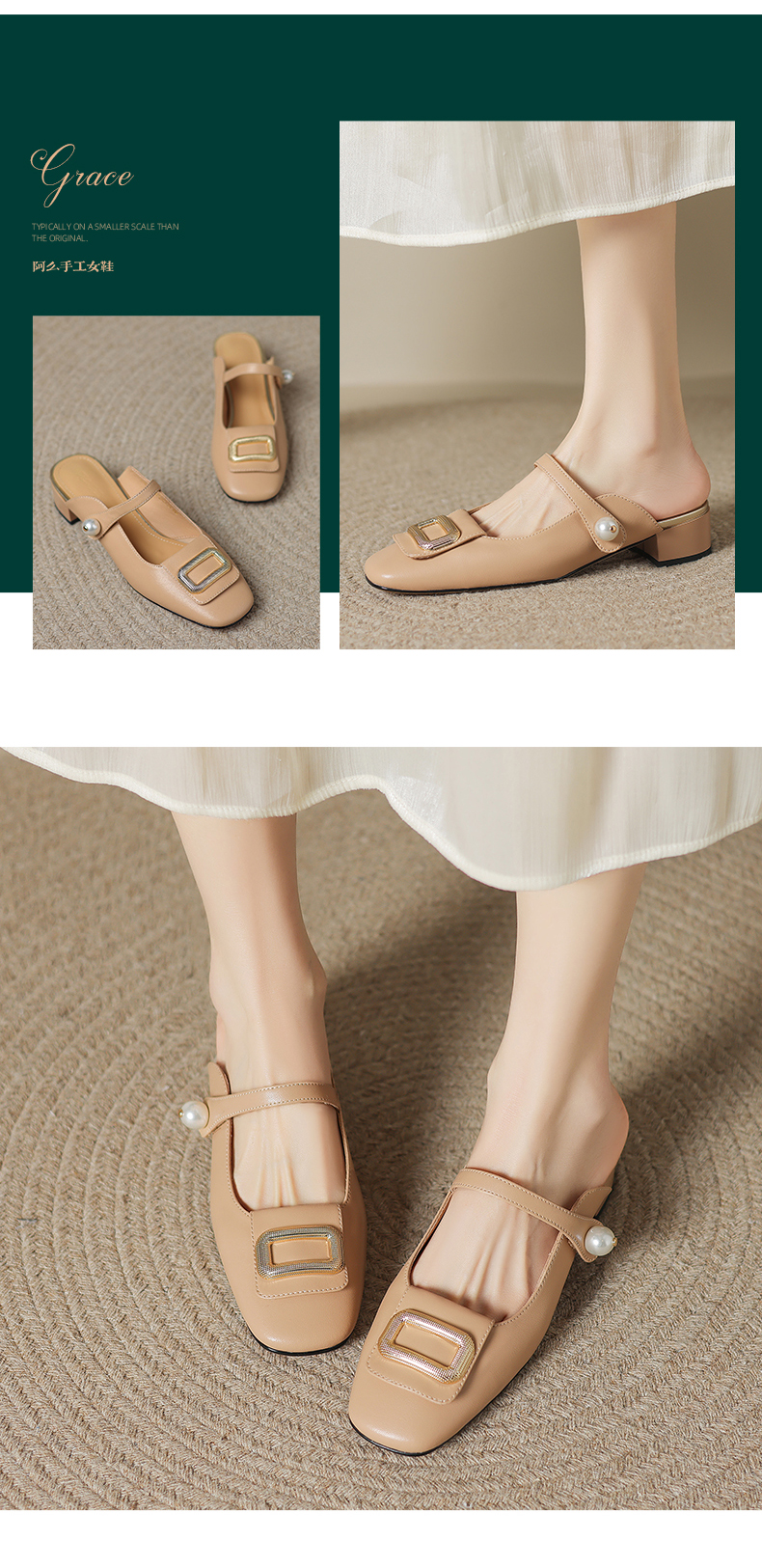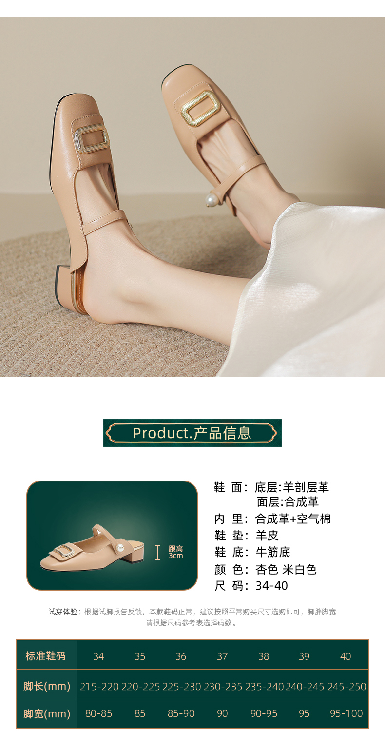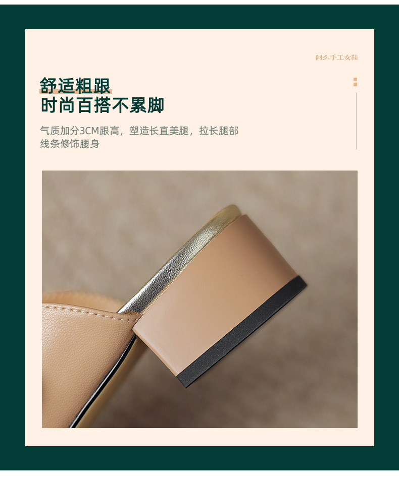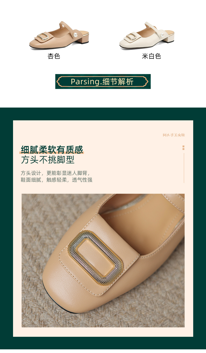 阿么手工女鞋真皮穆勒鞋时尚百搭2025新款气质包头拖粗跟外穿3CM