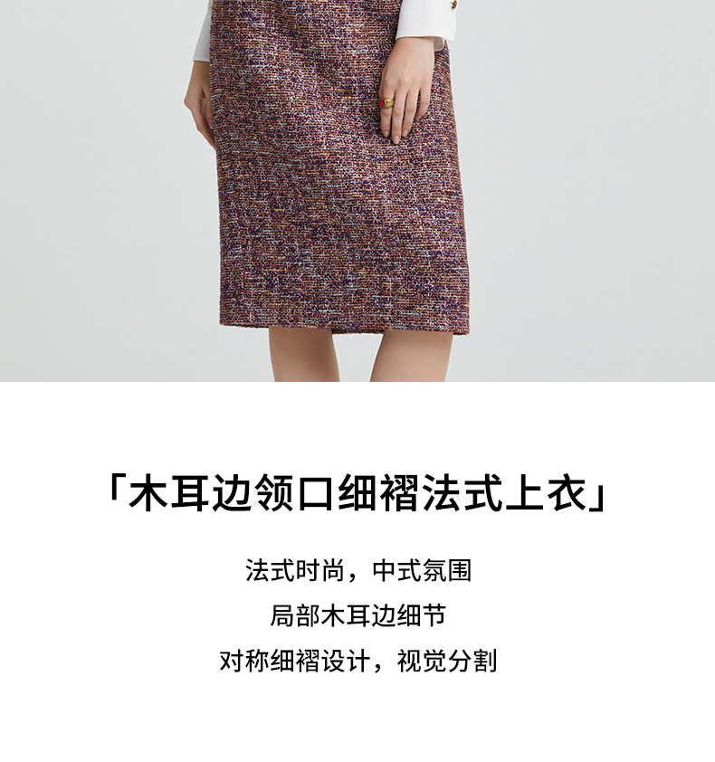 成熟、稳重、高贵典雅、大方得体 融合东方文化的含蓄和法国的浪漫 将创意的艺术性与消费需求相结合 为自信女性塑造高品质场合服装