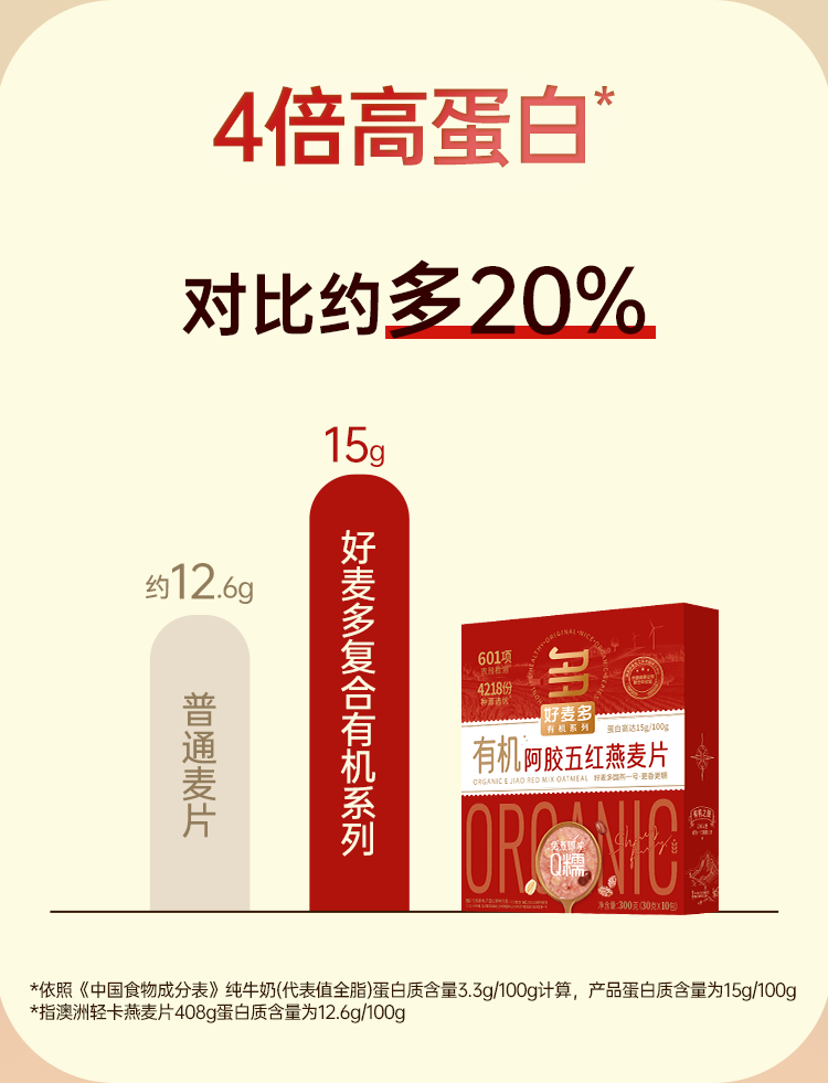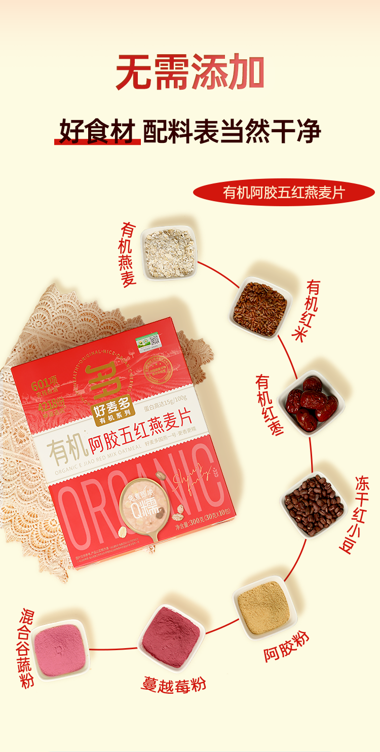 【有机阿胶五红燕麦片】 农科院推荐 营养早餐 免煮即冲 300g(30g*10包)赠麸皮小袋lc