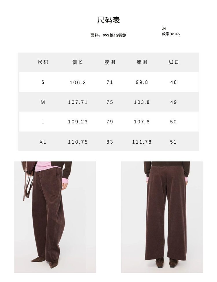 JNBY【浓郁深巧】复古灯芯绒直筒裤